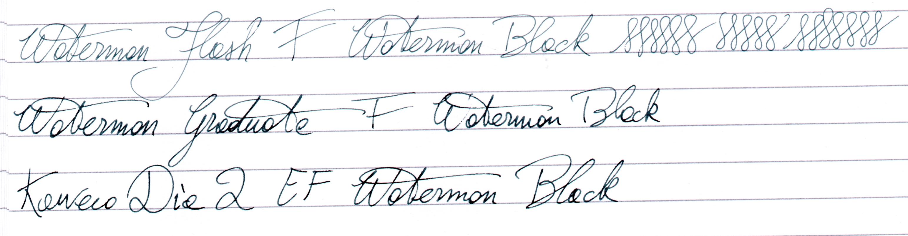 Muovendolo sul foglio, il pennino restituisce un feedback sia uditivo che tattile molto, molto marcato, per me piacevole, probabilmente accentuato dallo scarsissimo flusso della penna. Sebbene il flusso stitico non ha nessuna falsa partenza o salto nel tratto anche accelerando nella scrittura.