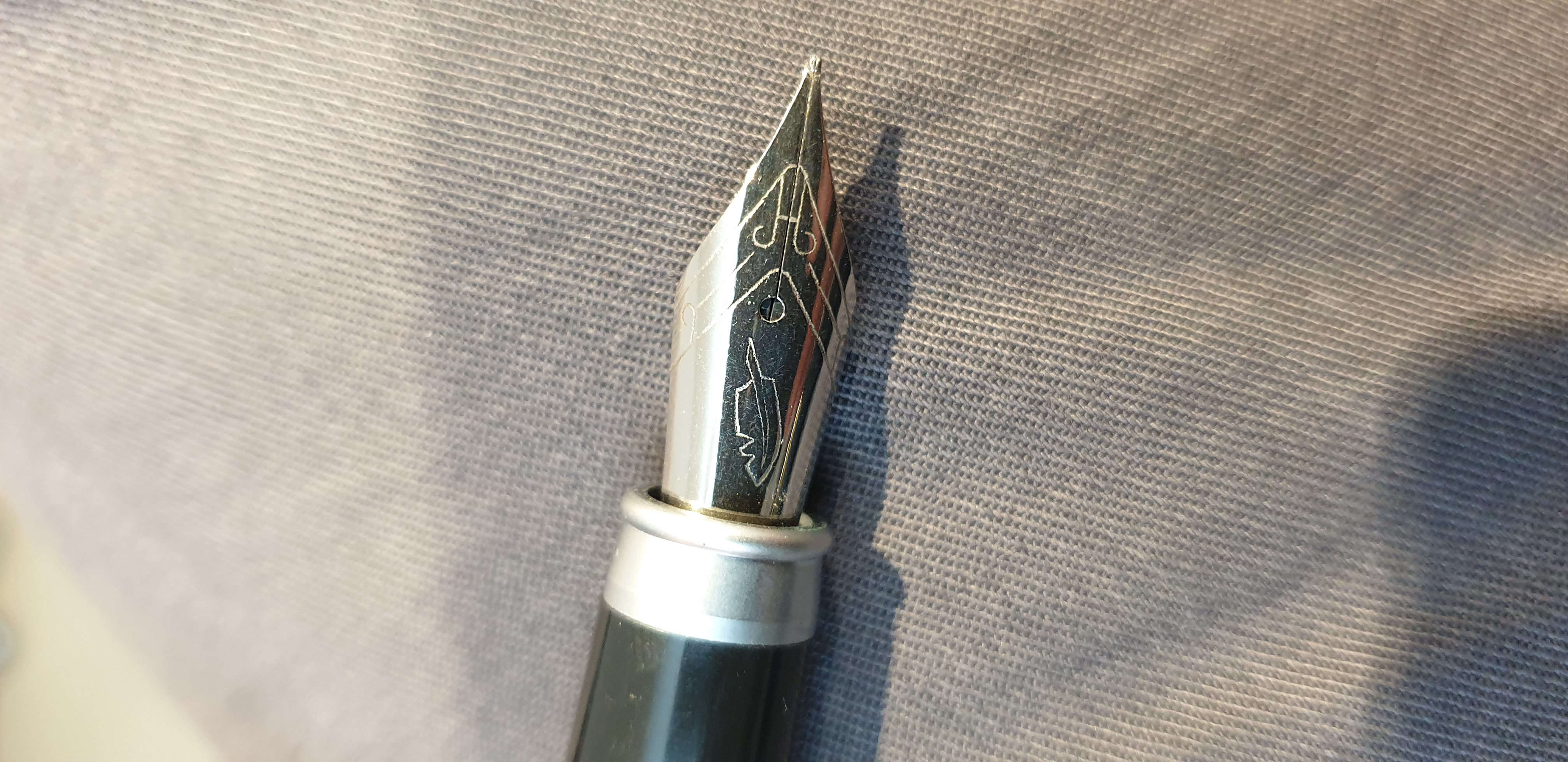 Oggi ho preso per 5€ ad un mercatino una penna senza alcun marchio tranne che sul pennino, che allego.