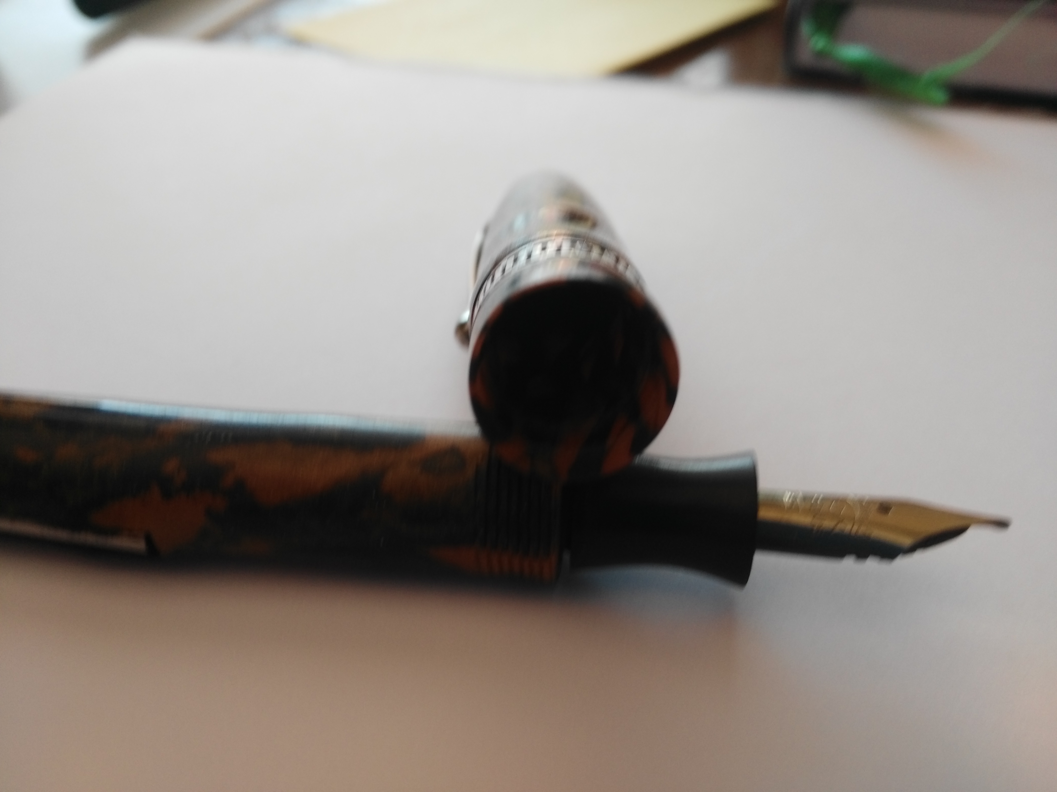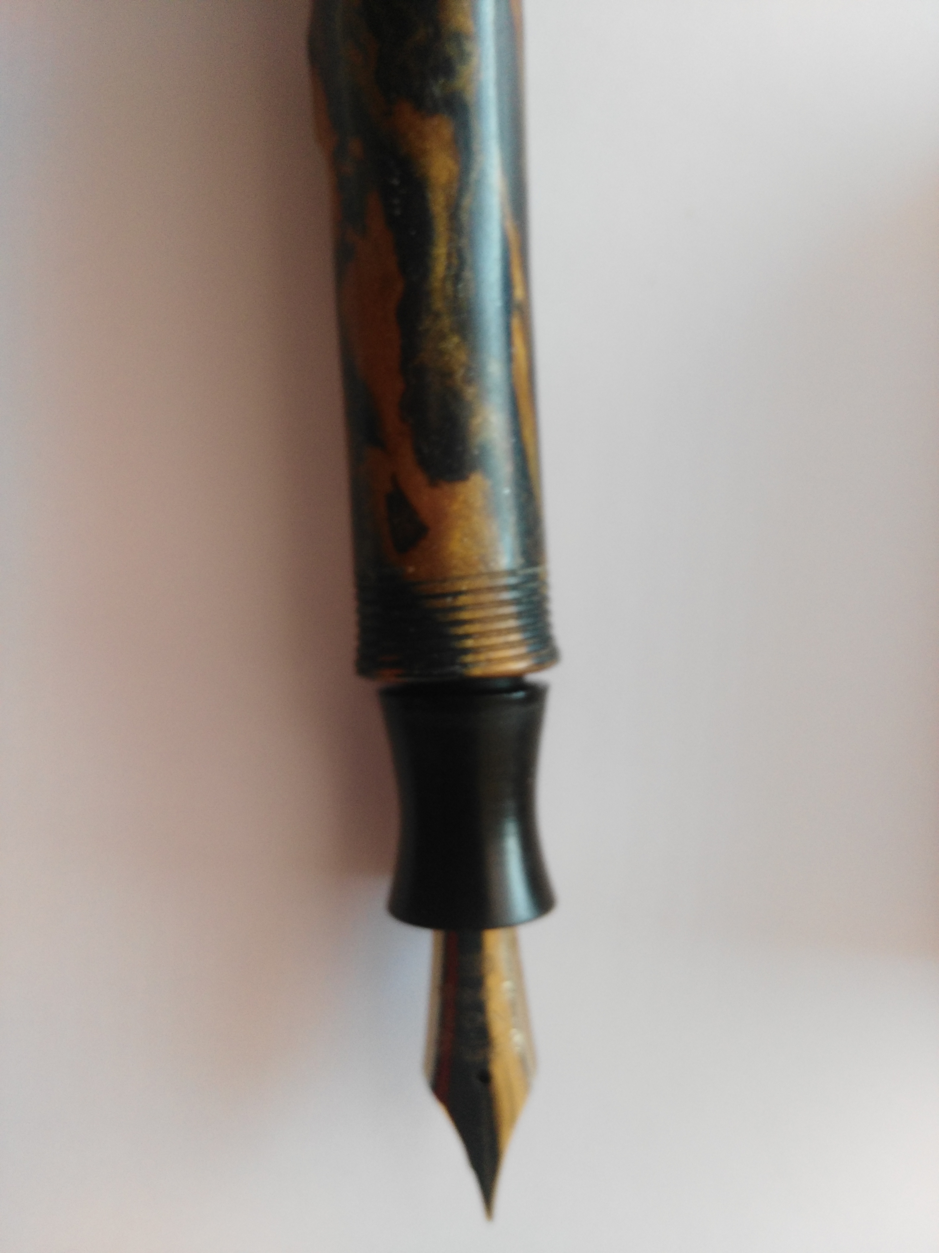 Secondo me il problema si è verificato perché la penna non è in celluloide, bensì in galalite, che è un materiale ottenuto dall'indurimento dalla caseina del latte.