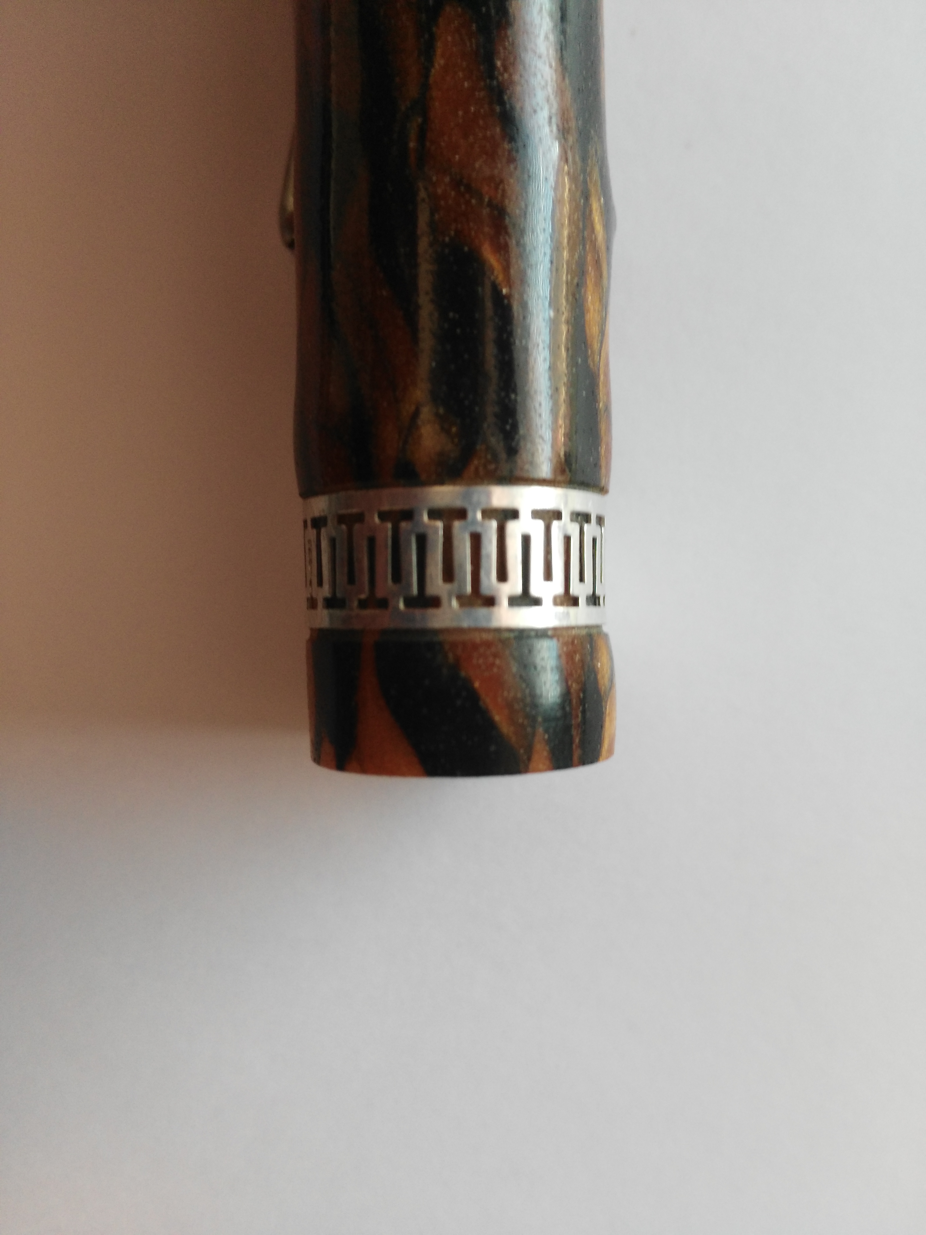 Idem per la sezione: qui il corpo si era allargato a tal punto che l'impanatura della sezione non si avvitava più (spero che le foto riescano, seppure in maniera assai imperfetta, a rendere l'idea di quello che sto dicendo). Non mi era mai capitato con la celluloide; sapevo della galatite, caseina et similia, ma non mi sembra questo il caso (o sbaglio?).