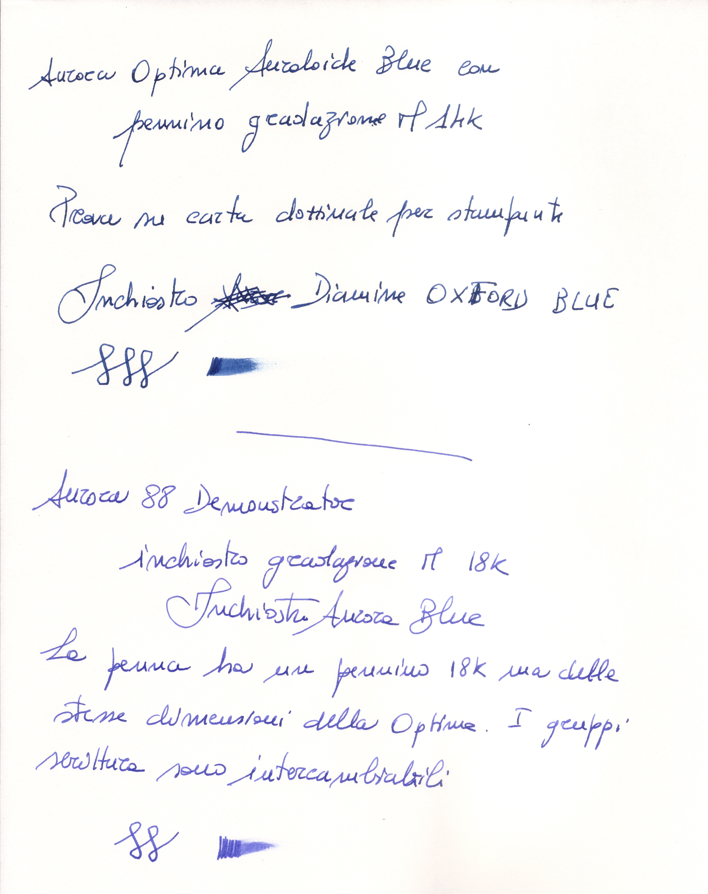 https://drive.google.com/file/d/1UjLqyz ... p=drivesdkfrancoiacc ha scritto: ↑mercoledì 10 aprile 2019, 15:39 Dalle foto direi che la penna non và benissimo, mi sembra di notare anche un flusso non omogeno, a tratti mi sembra più abbondante a tratti meno, nessuna delle mie Aurora scrive così. Io la caricherei con il nero Aurora prima di portarla indietro, così almeno si rende meglio conto del problema.![]()