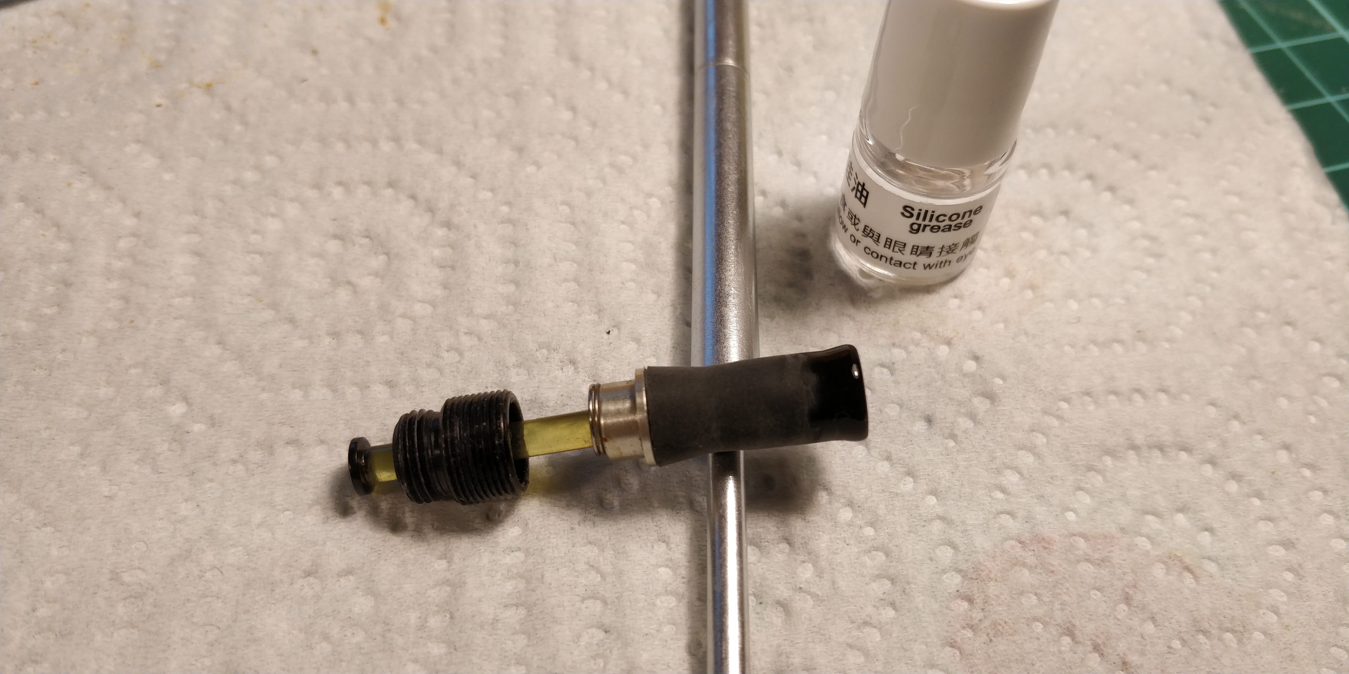 Messa in posizione e cosparso il labbro inferiore di grasso siliconico, in modo da farlo scorrere nel fusto senza problemi durante il rimontaggio (utile il grasso liquido delle penne twsbi)