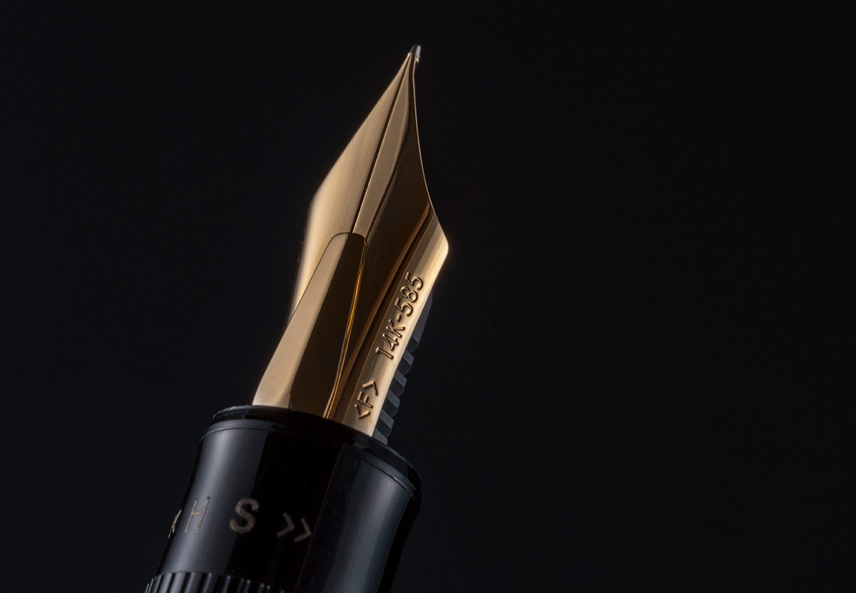 Altra parte della penna che ha attirato la mia curiosità fotografica è il pennino; non presenta la solita linea classica, la mancanza del foro di sfiato e l’aletta superiore sovrapposta ai rebbi, mi ricordano le modanature presenti sulle carrozzerie di alcune vecchie auto.