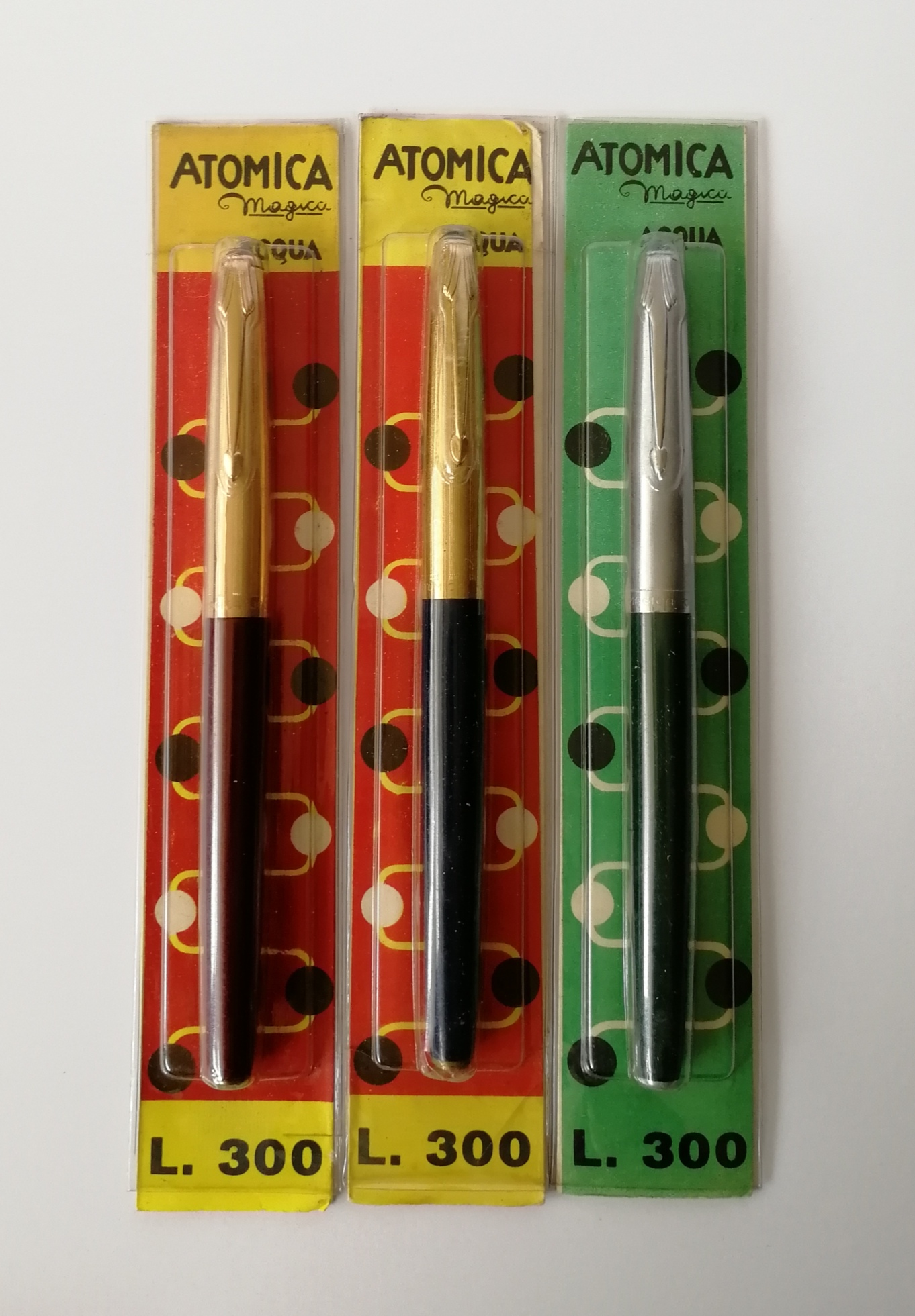 ho acquistato da un mercatino di antiquariato delle penne: una "Montegrappa" di cui non riesco ad individuare il modello e tre "Atomica Magica 300" (con inchiostro solido solubile) di cui non riesco a trovare una descrizione. Non sono riuscito a trovare nulla su internet, quindi non so neanche dar loro un valore economico. Come ho già detto nella mia presentazione, sono un rivenditore di penne e ho la necessità di dare agli acquirenti una descrizione più dettagliata possibile di ogni prodotto. Spero che voi ne sappiate più di me :D Vi ringrazio in anticipo