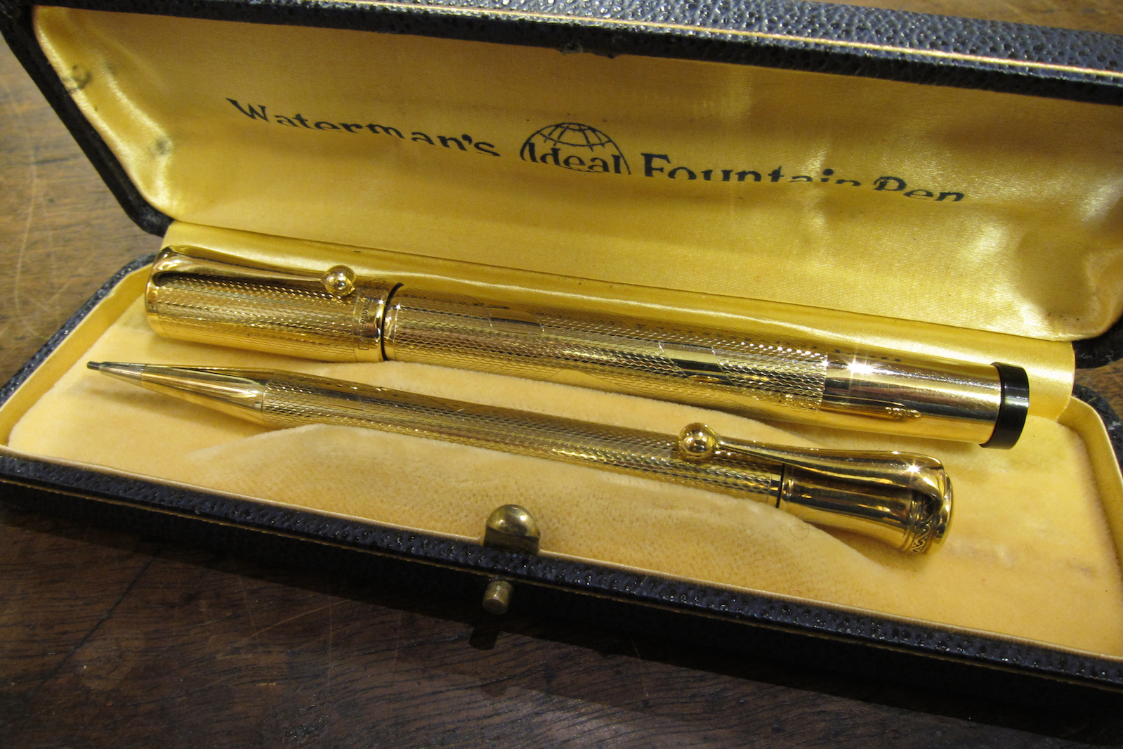 Buongiorno, vi presento questo bell' astuccio che è probabilmente rimasto chiuso dal giorno in cui è stato acquistato, probabilmente attorno agli anni venti del secolo scorso. Contiene una bellissima Waterman 42 stilografica e la matita. Sono perfetti, mai stati toccati o usati. Il pennino è un bel flessibile, mi piacciono molto i disegni sui fusti, il sughero è ancora perfetto. Aprire questo astuccio e avere il privilegio di vedere queste penne rimaste come nascoste dagli anni che passano è sempre una forte emozione.