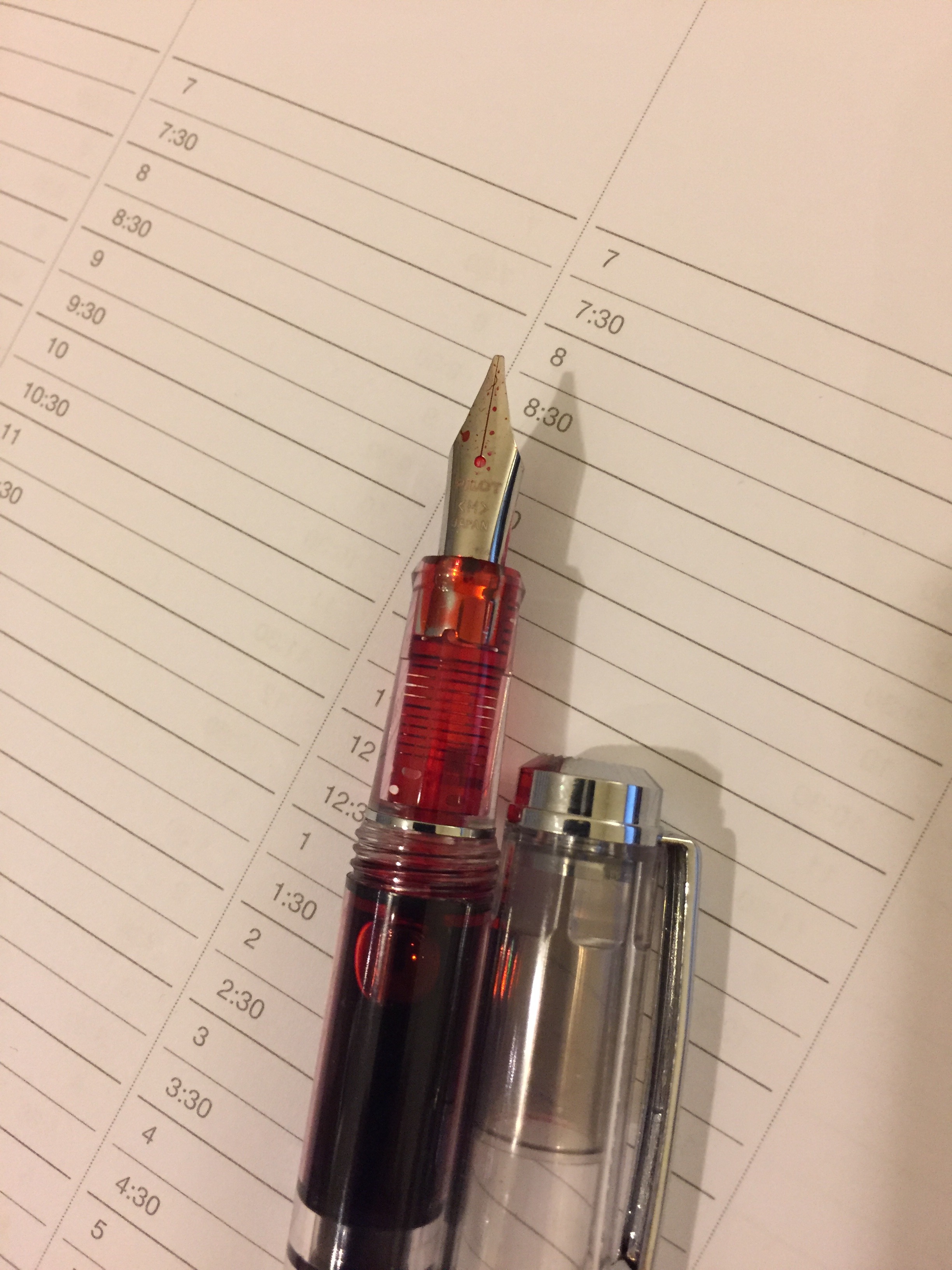 Finalmente ho avuto tempo di montare il pennino M della Pilot Plumix sulla WingSung 698: il pennino, uno stub da 0,58, calza perfettamente sull'alimentatore.