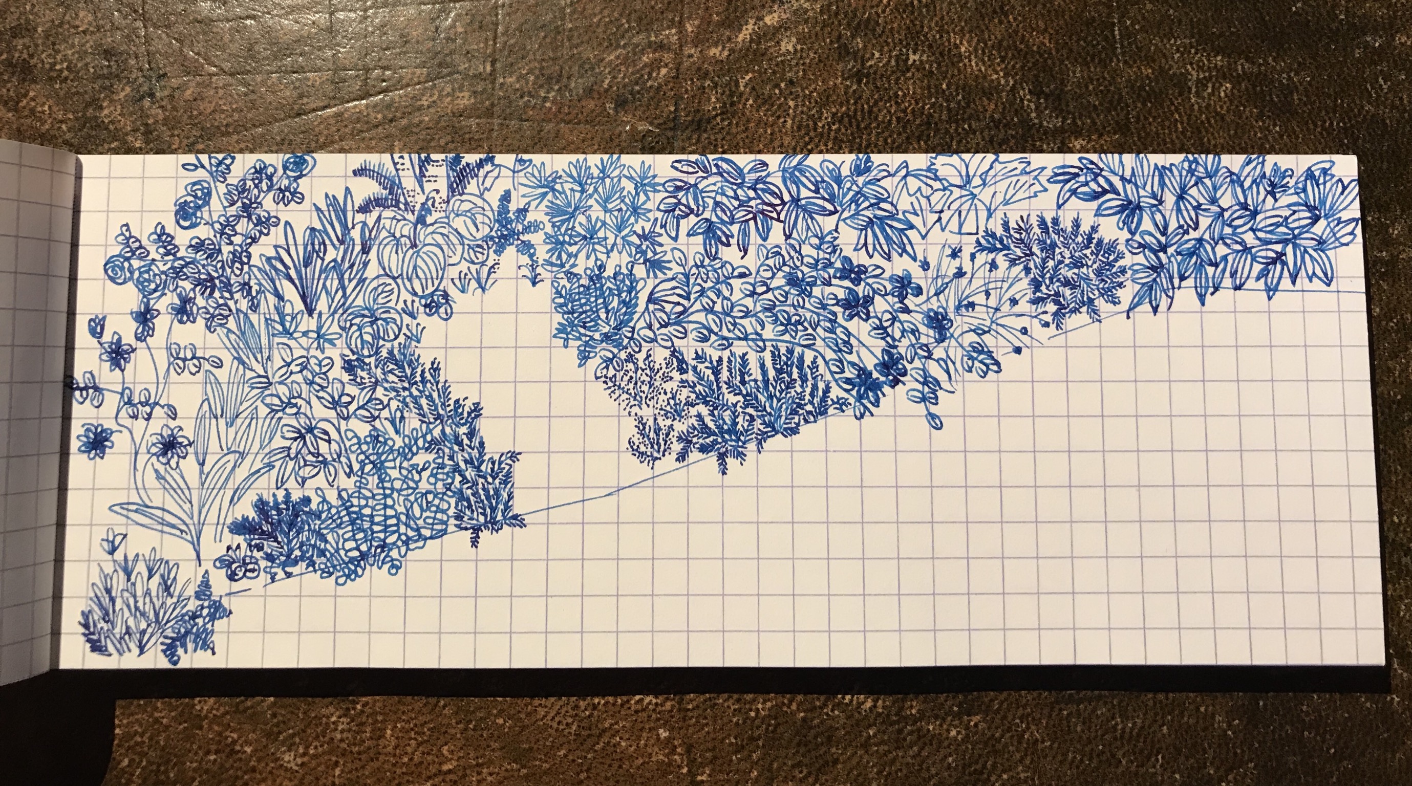 L’aiuola in blu è di inchiostro Pelikan Edelstein Topaz, mentre la fila di vasi in marrone bruciato purtroppo non ricordo