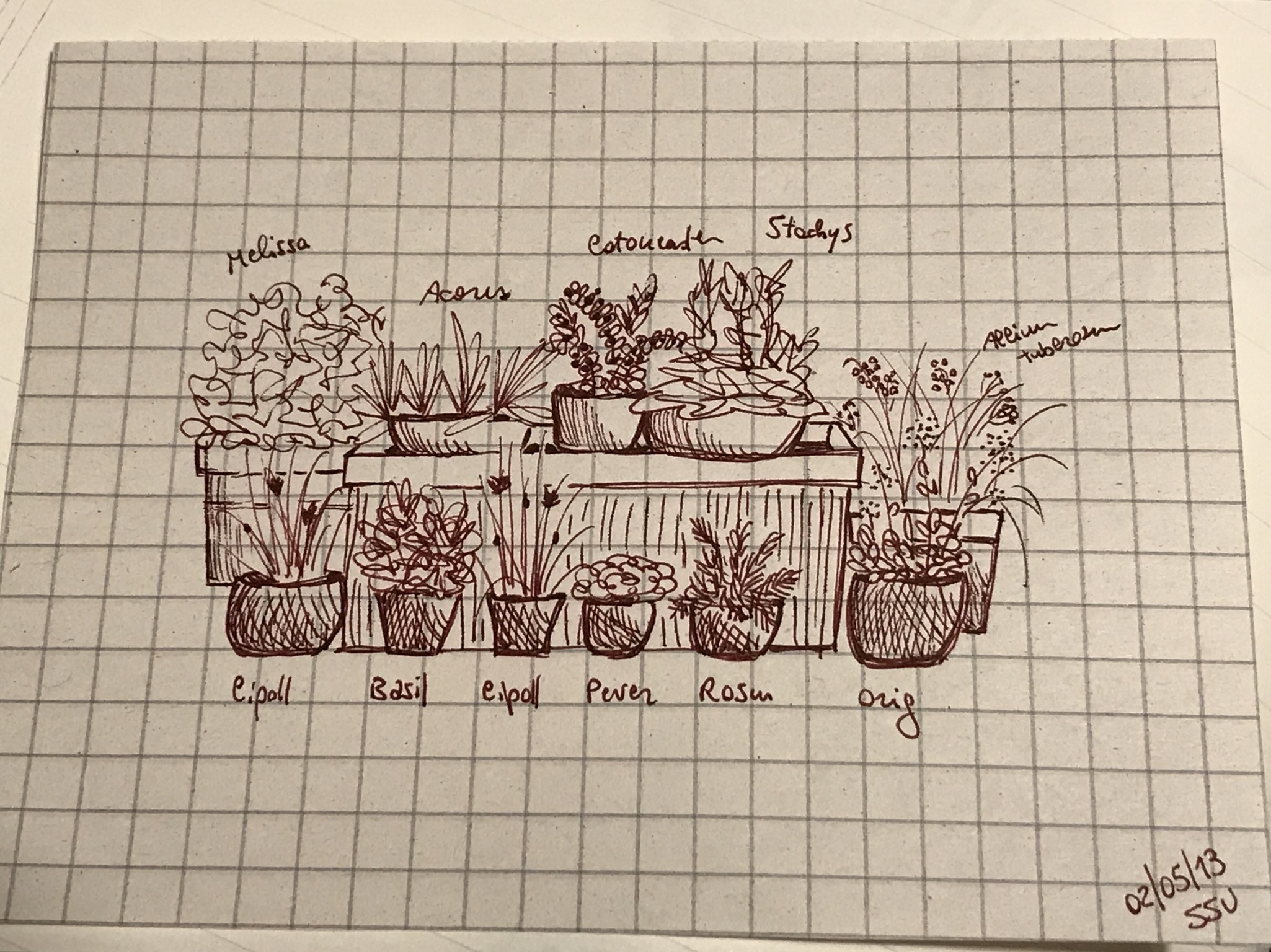 Sia quando scrivo che quando disegno spesso il soggetto è il mio giardino. Le penne mi aiutano a progettare ed inventare.. Vi allego un paio di fotine