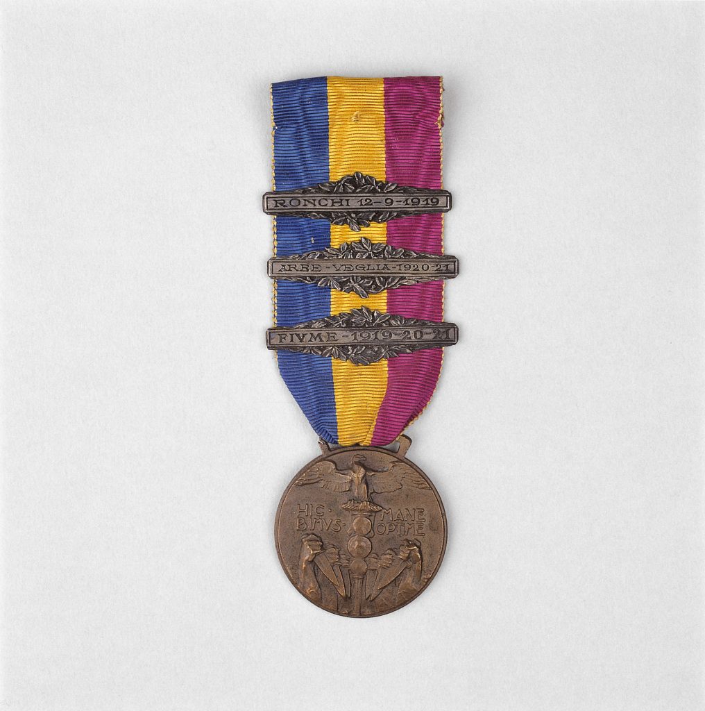 Veniva concessa ai Legionari che avevano partecipato alle vicende fiumane tra il 1919 ed il 1921. Sul nastro potevano essere apposte delle barrette che indicavano la data o semplicemente gli anni di servizio. Disegno: De Carolis. Conio (probabile): Johnson, Milano