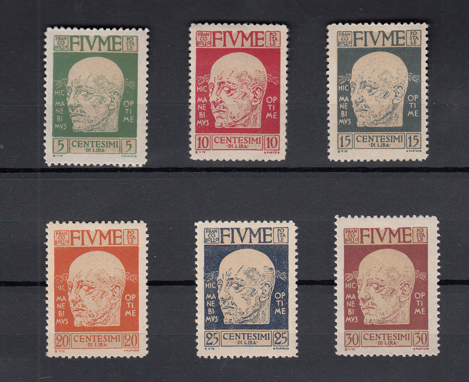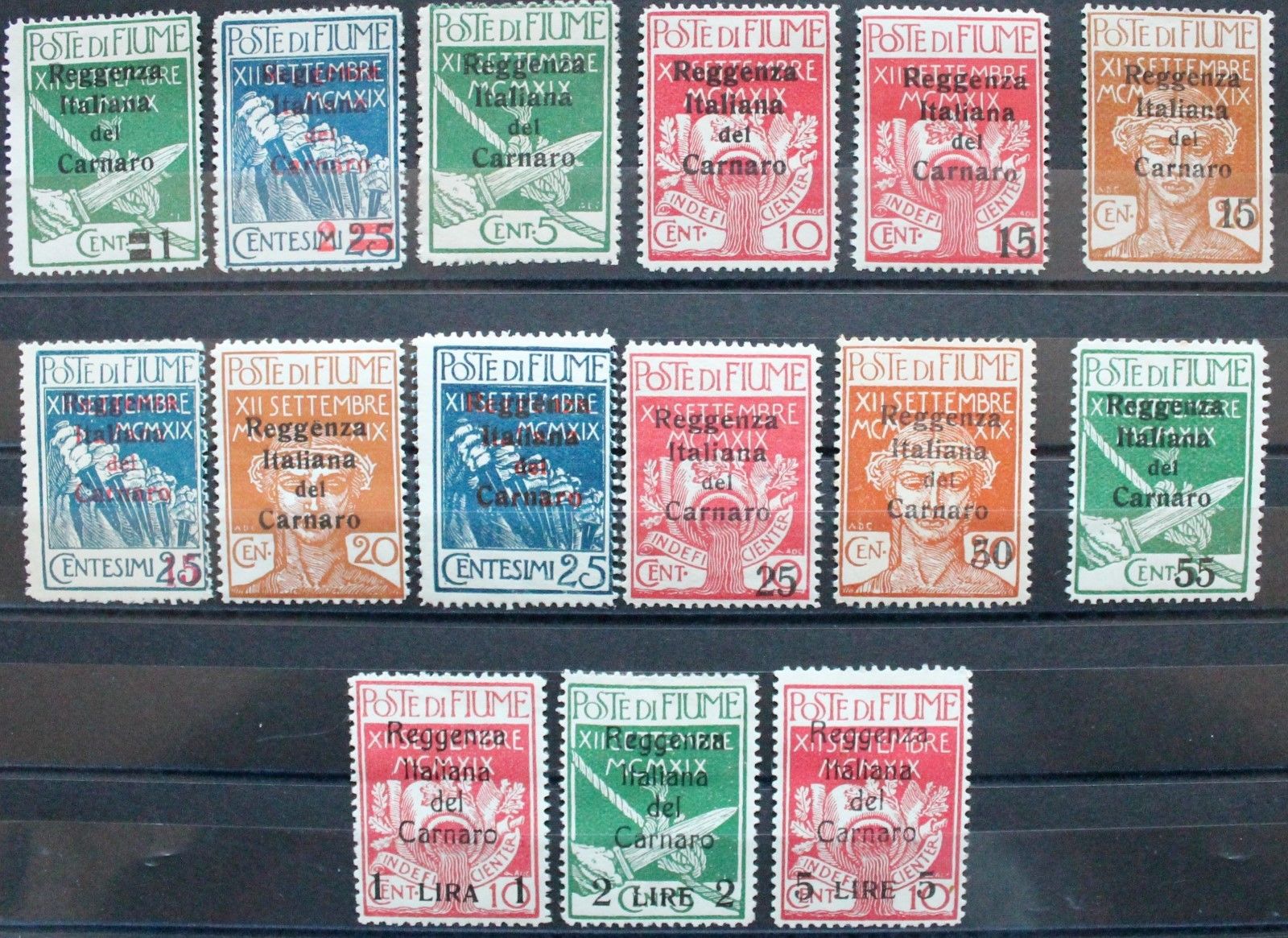 La stessa serie con la sovrastampa "Reggenza italiana del Carnaro"