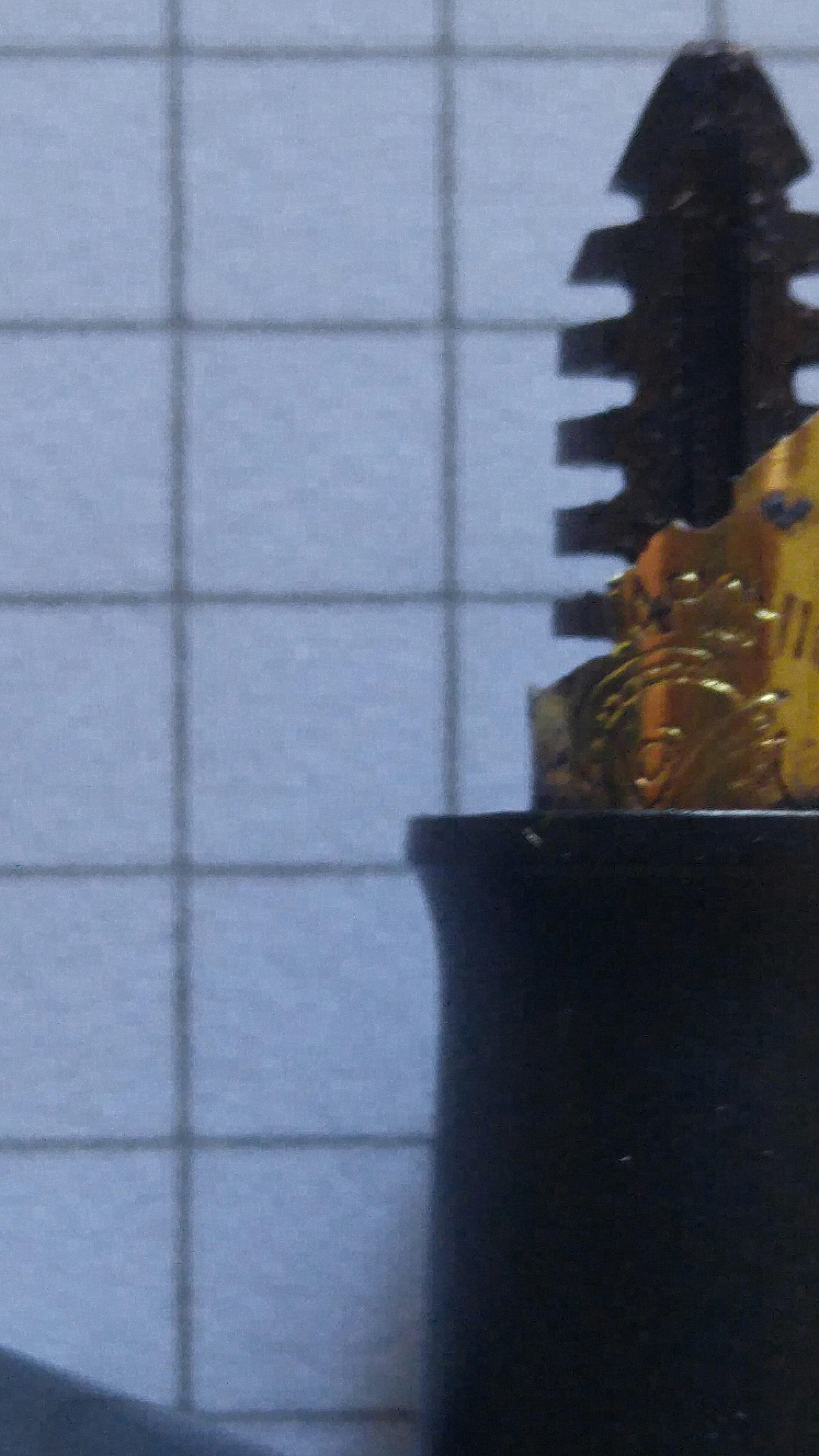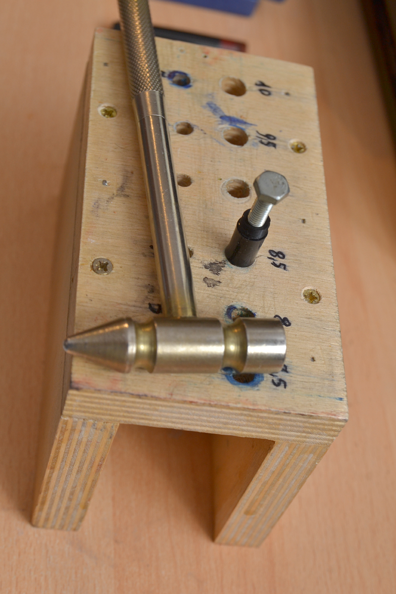 10 x 15 cm e fare dei fori col trapano (6-7-8-9 e 10 mm questo per iniziare, ma sarebbe meglio partendo sempre da 6 mm facendo un foro per ogni 1/2 misura fino a 10. Es 6-6.5-7-7.5-8-8.5....), sotto il legno quando esce il pennino per non piegarlo metti qualcosa per dare spazio, se vuoi fare il lavoro fatto bene ci incolli ai 4 angoli 4 tocchetti di legno o 4 gommini alti quelli che si avvitano sotto le sedie.