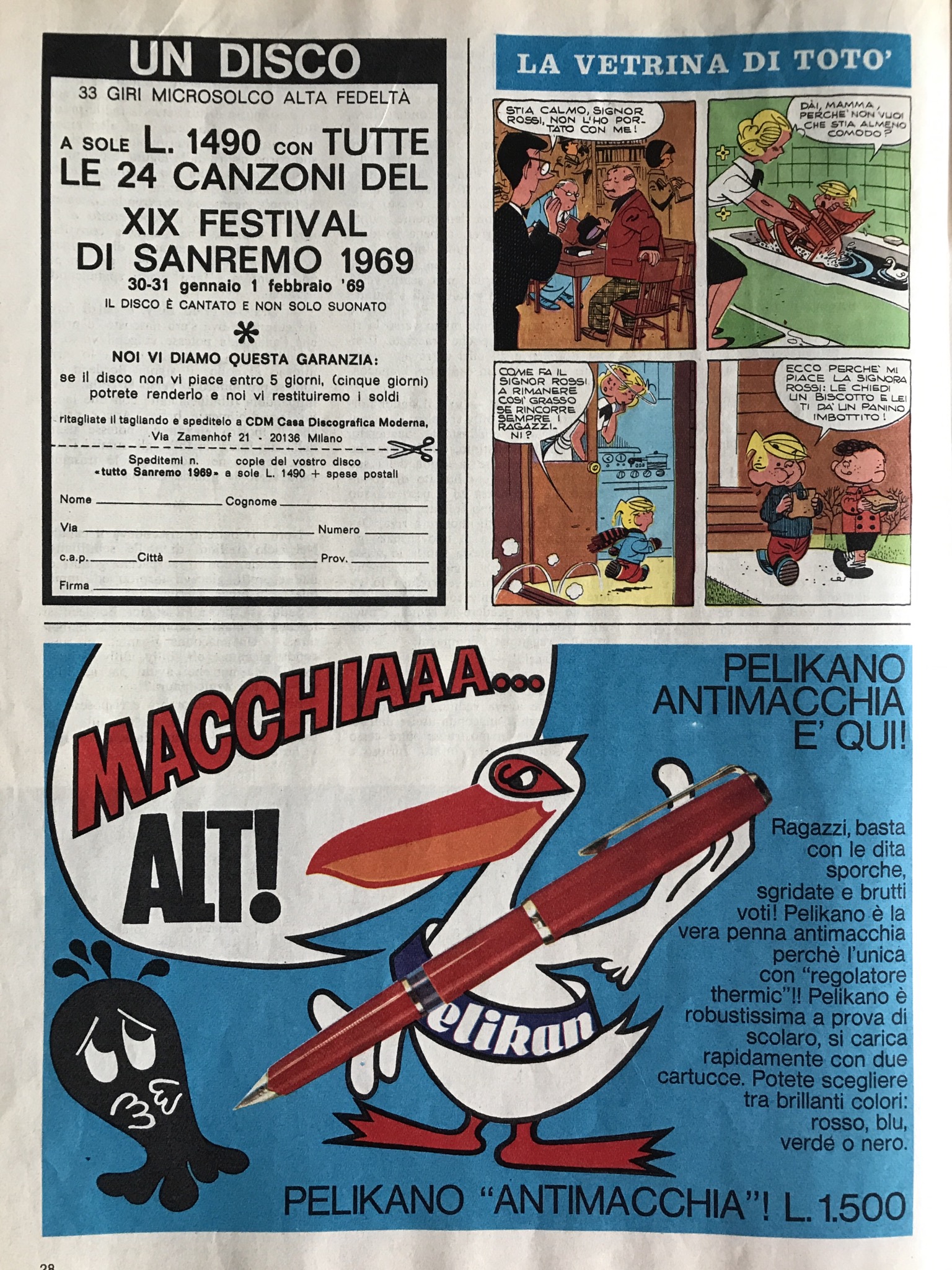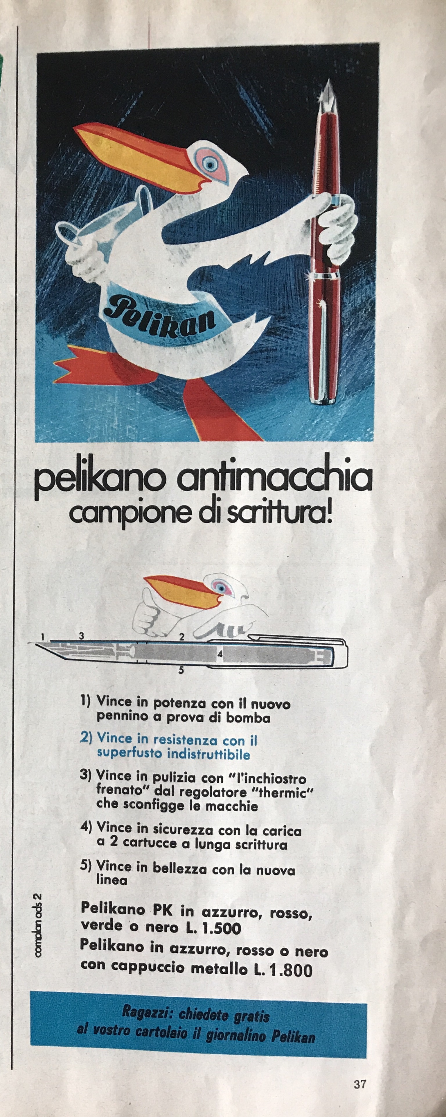 “Corriere dei piccoli”, febbraio e ottobre 1969: pubblicità delle Pelikano