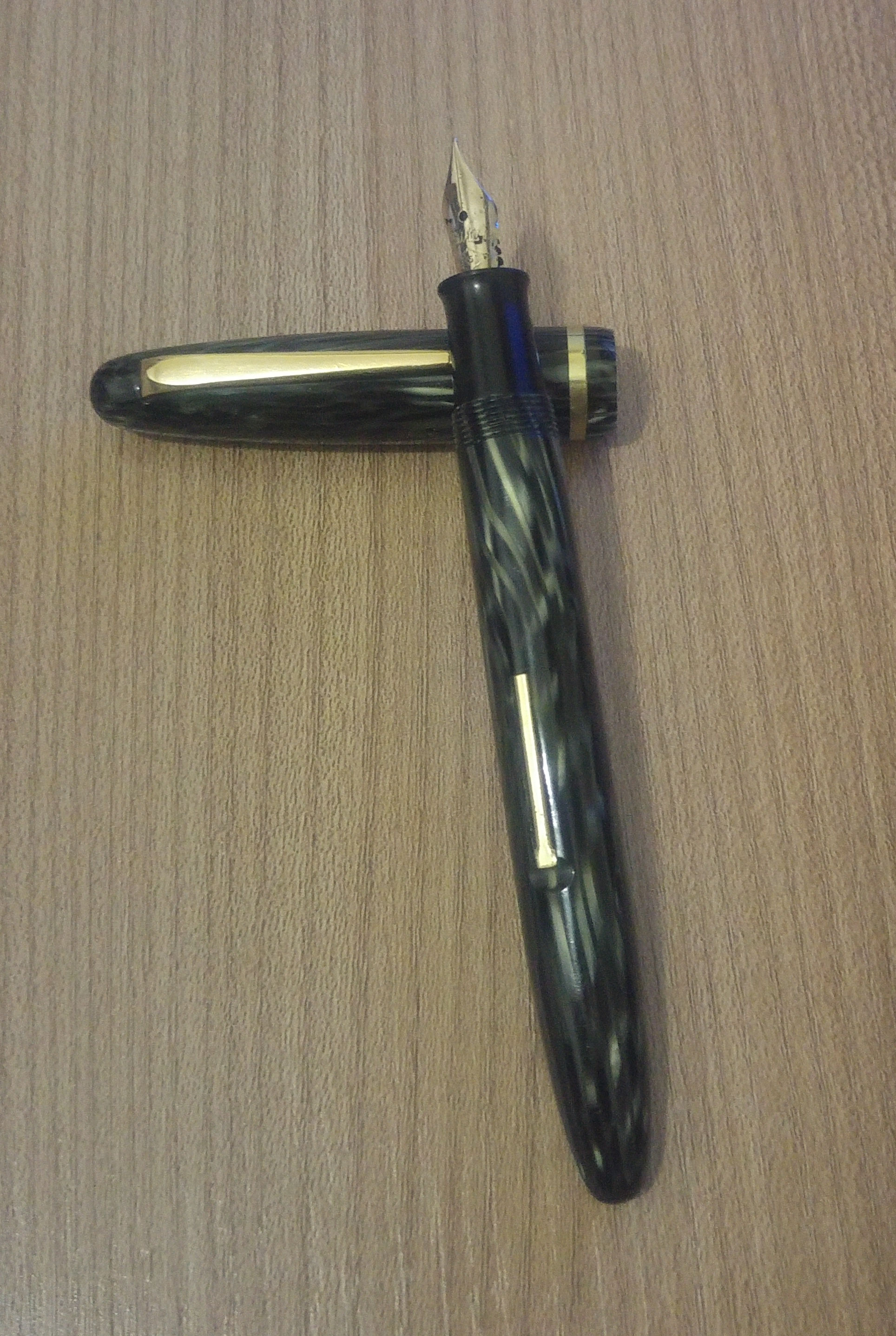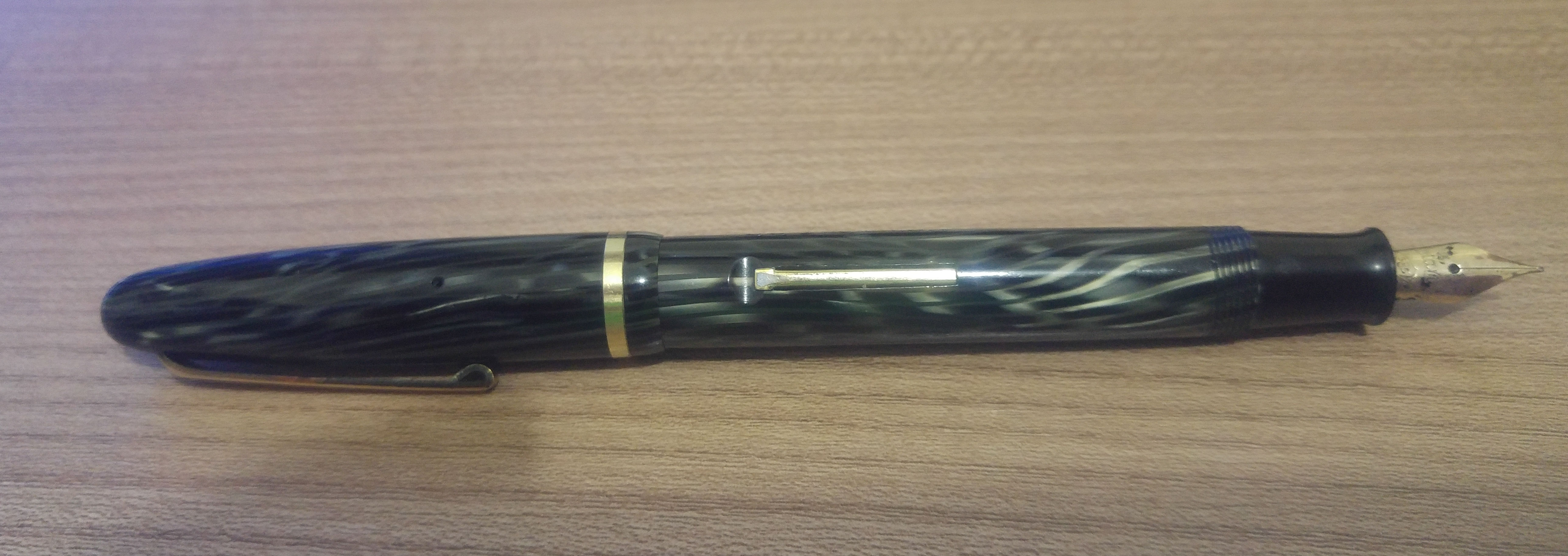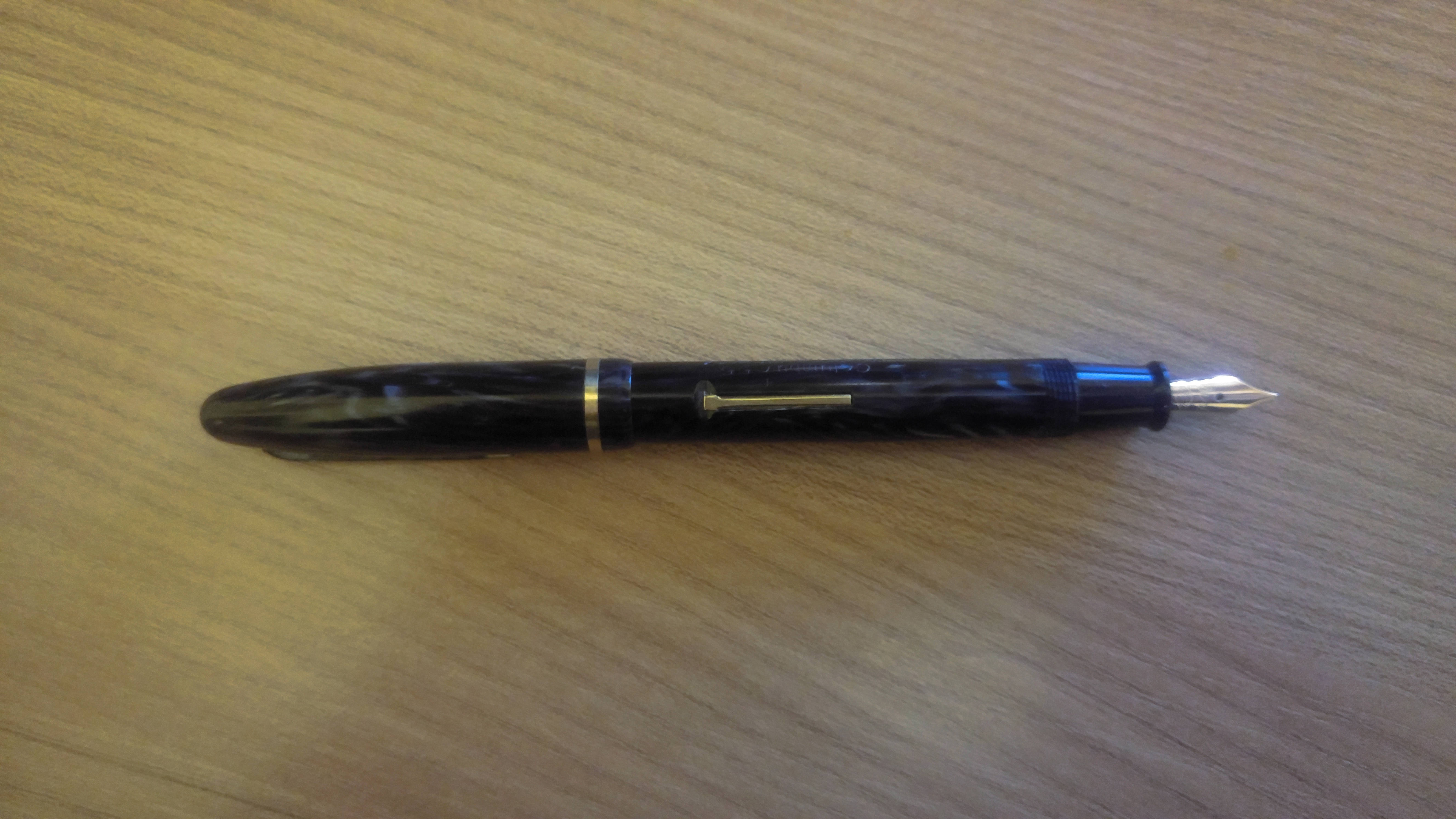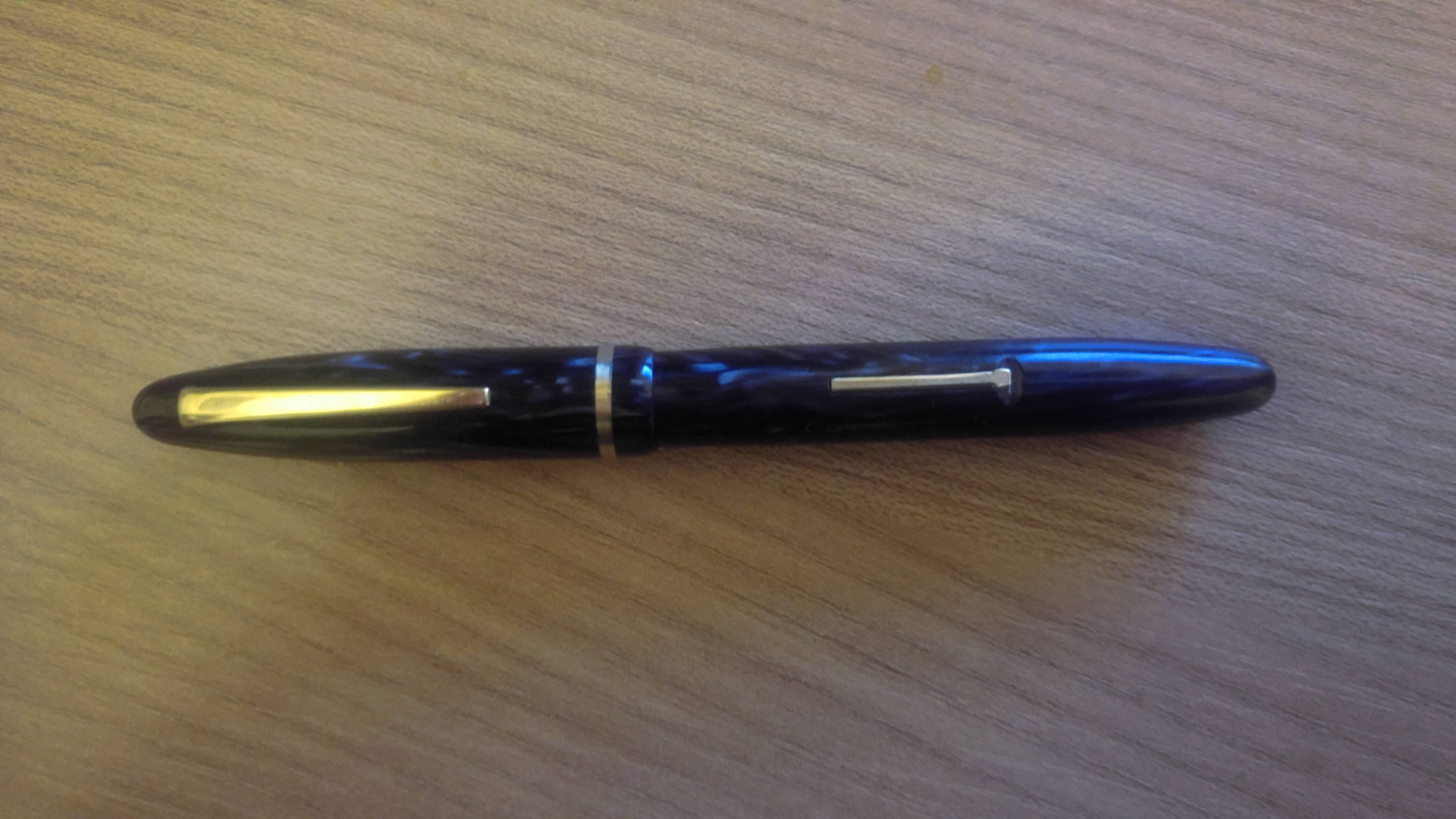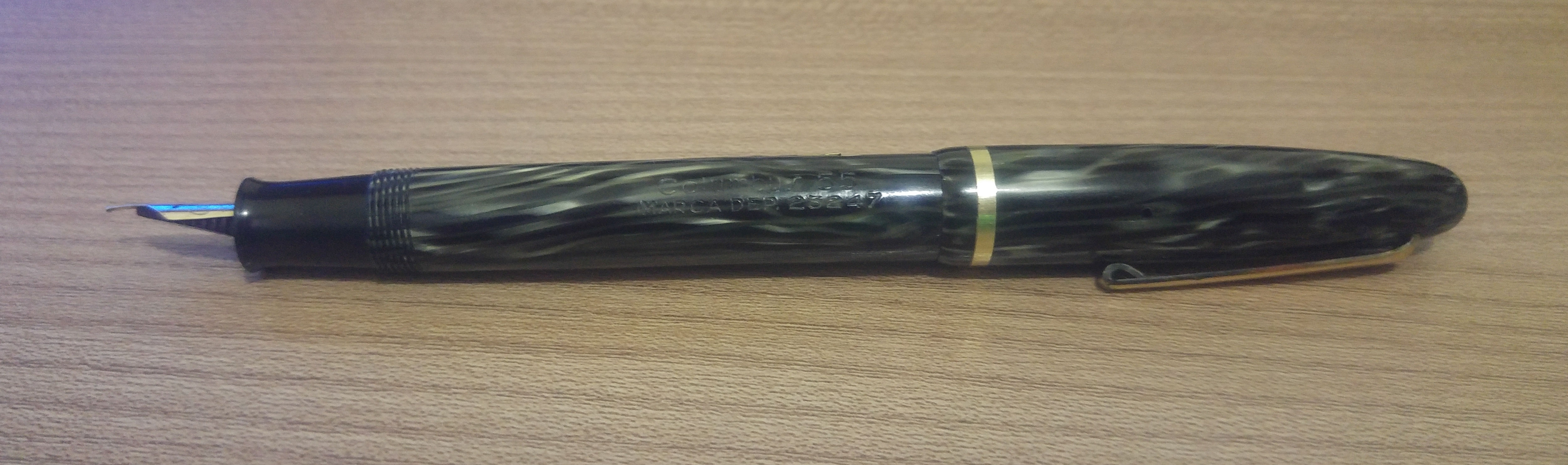 La Columbus 55 è una leggera penna in celluloide di medie dimensioni con ricarica a sacchetto e pennino in oro 14K semi-flessibile che dopo le cure di Massimo scrive alla grande. Ne ignoro l'anno di produzione, se qualcuno ha qualche informazione in più gliene sarei grato.
