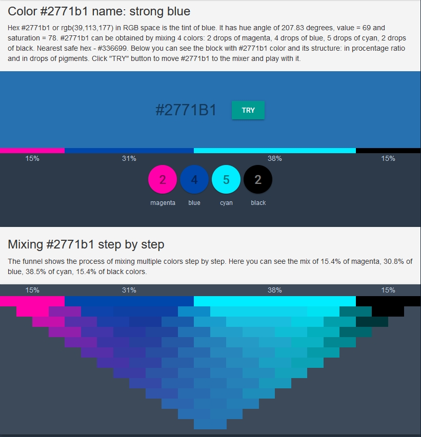 C'è anche una pagina in cui si può creare il proprio colore e restituisce in esadecimale la formula usata, è una specie di miscelatore virtuale.