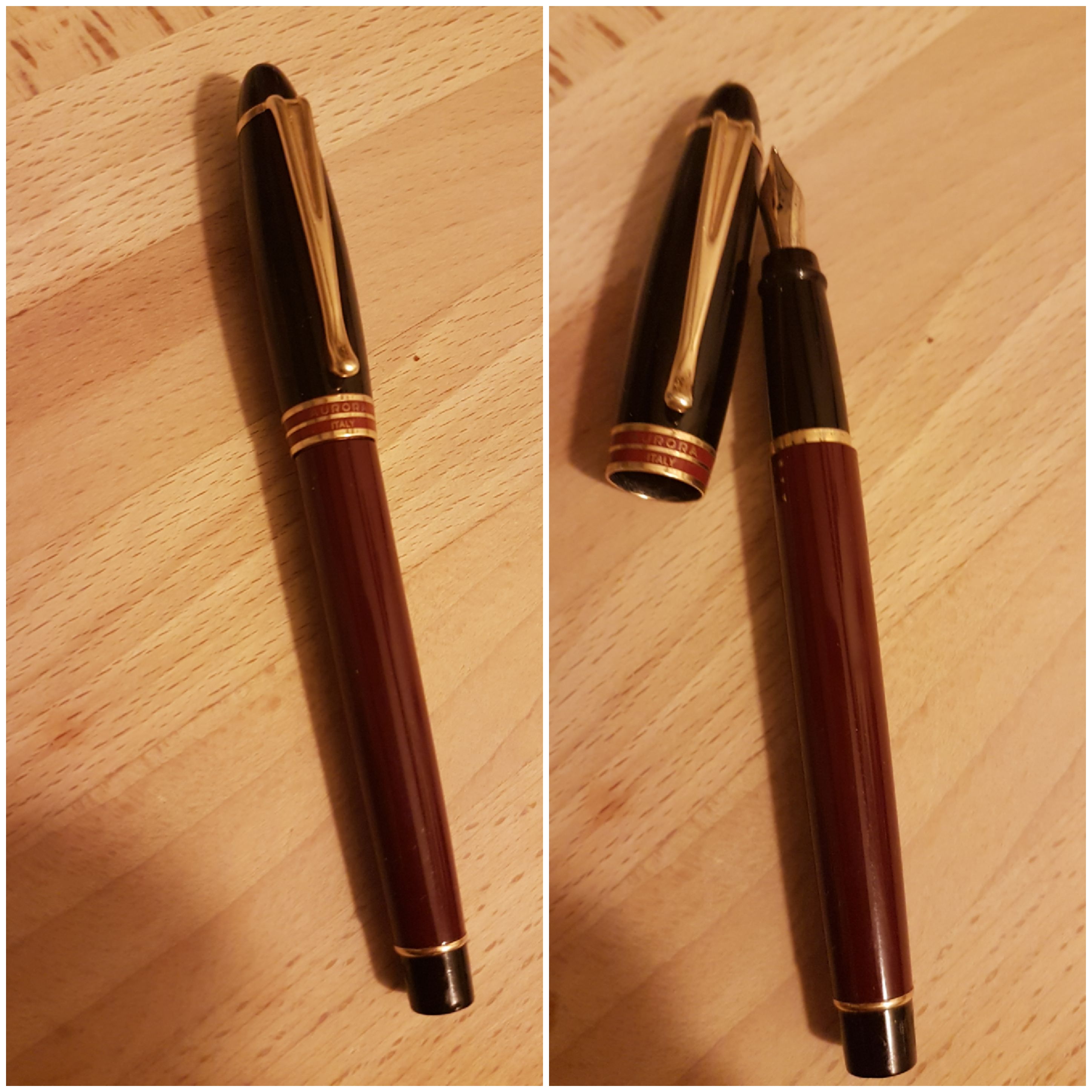 Bicolore non è male, anche perché le fasce del cappuccio riprendono il colore della penna, e sezione e finto fondello riprendono quello del cappuccio. C'è comunque una sorta di simmetria. Ho una Y identica a questa bordeaux, e ho sbeccato il bordo filettato del fusto, facendolo cadere pulendolo