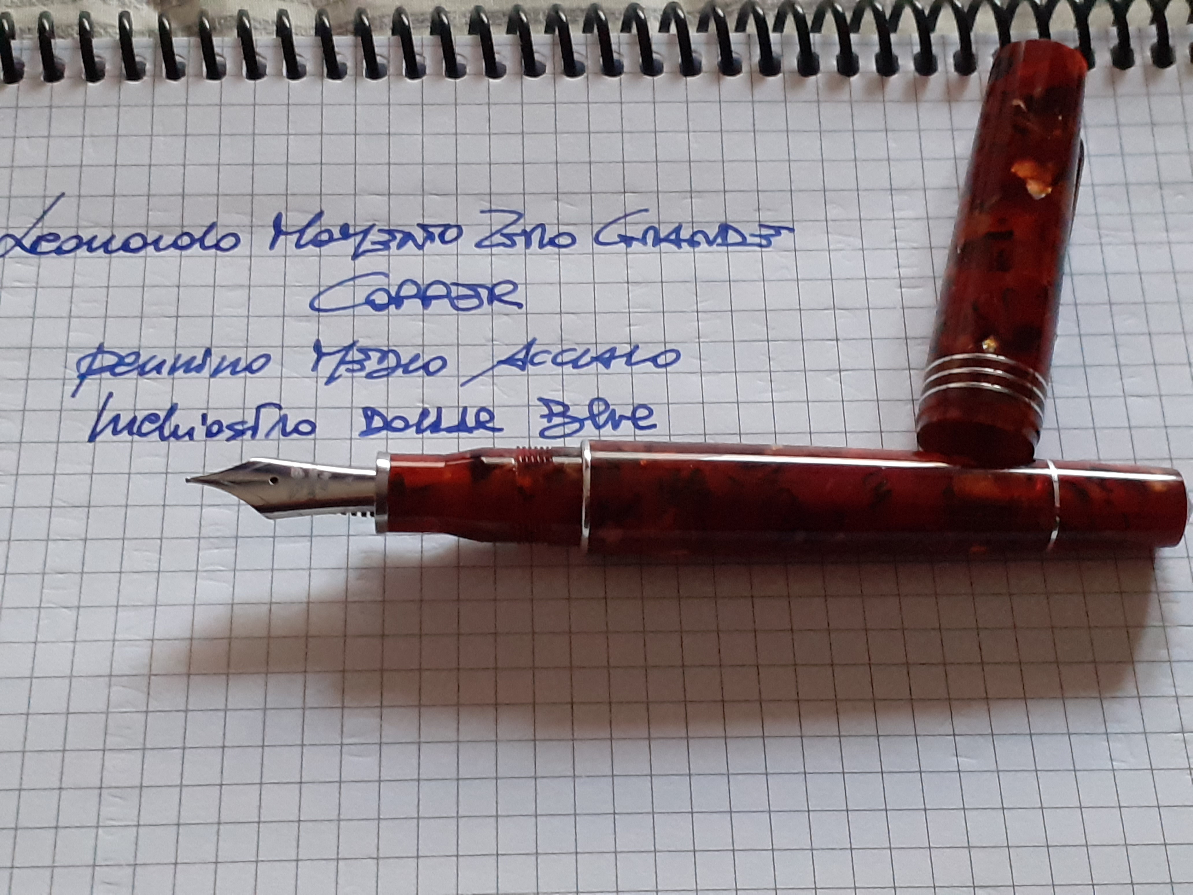 Per la Leonardo invece ho un'opinione abbastanza precisa: hanno una livrea magnifica, io ho la Momento zero Hawaii, con pennino stub 1.5. E' una penna splendida esteticamente, con converter a vite e fondello che si svita per caricare la penna come se fosse a pistone (come fosse la copertura della dolce vita pistone, per intenderci). Unico neo, l'alimentatore in plastica non sta dietro del tutto al pennino stub dopo la prima pagina e mezzo, ma magari l'inconveniente è dovuto al fatto che erano le prime due cartucce e con ancora un po' di rodaggio potrebbe andare meglio. Essendo un pennino stub non la uso tantissimo, e vorrei comprarne un'altra con pennino fine o extrafine. La versione grande mi attira molto in certe colorazioni (tipo arlecchino), o magari in qualche versione limitata. La grande ha il vantaggio dell'alimentatore in ebanite, migliore di quello in plastica, e soprattutto il fatto che può montare pennino musicale o flessibile. Peccato che il pennino in oro speciale faccia lievitare di molto il prezzo. Questo è il principale fattore che mi sta facendo desistere dal nuovo acquisto, oltre al fatto che sto comprando tante penne e le risorse sono, per definizione, limitate. Il converter incollato della grande inoltre è un alto motivo che non mi soddisfa del tutto: preferivo un converter normale, sincero, con la possibilità di montare anche eventualmente una cartuccia. Probabilmente in Leonardo sono srati fin troppo sinceri, il mondo è pieno di penne con converter nascosto che si spacciano a pistone per cui invece non ci facciamo troppi problemi.