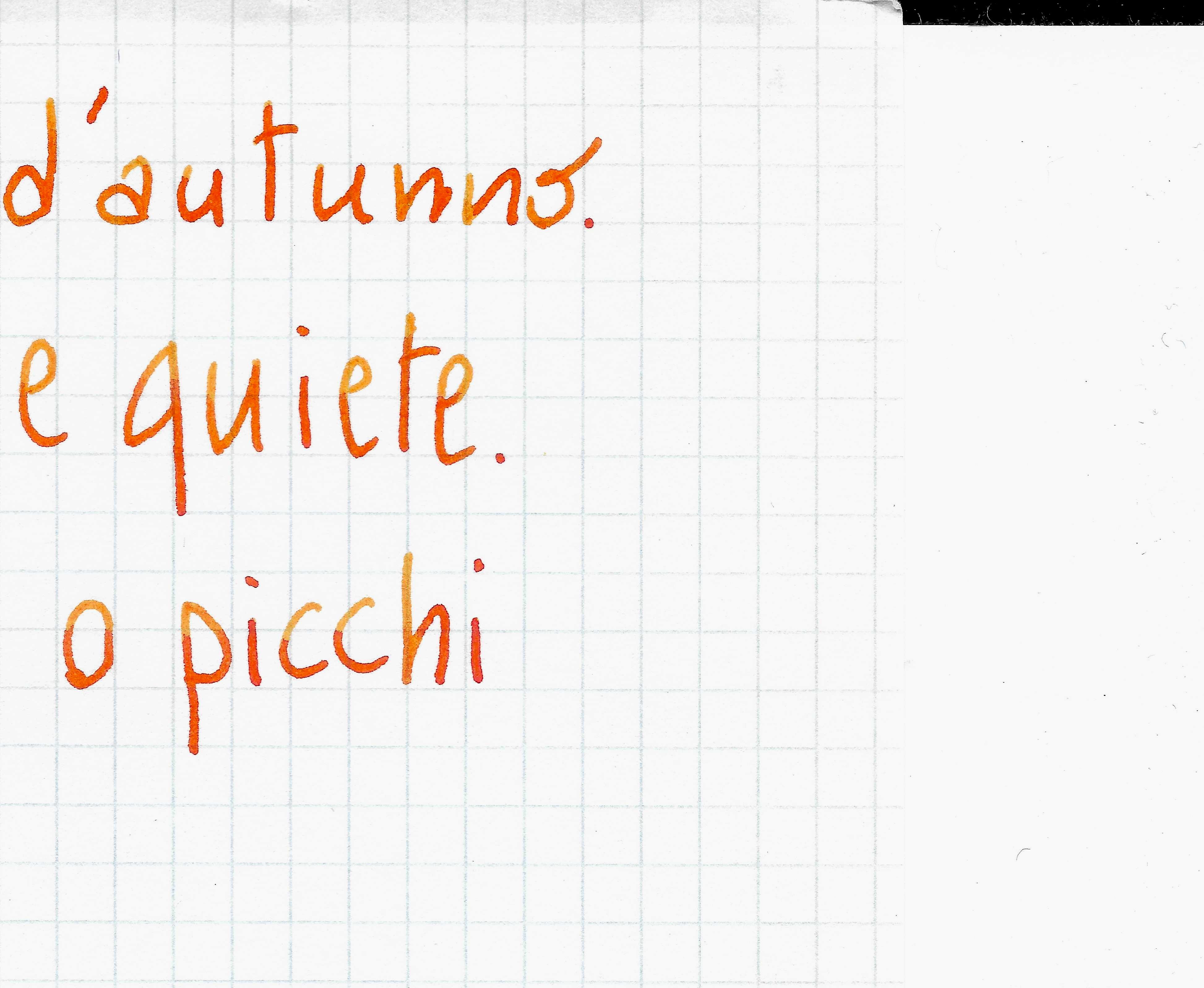 Per il momento, ho avuto poche esperienze con inchiostri Noodler's, ma so che molti amano e apprezzano l'Apache Sunset. Il fatto è che, quando l'ho visto "in azione" sulle penne di amici del CSM mi è parso molto molto saturo, e per questo con meno shading...