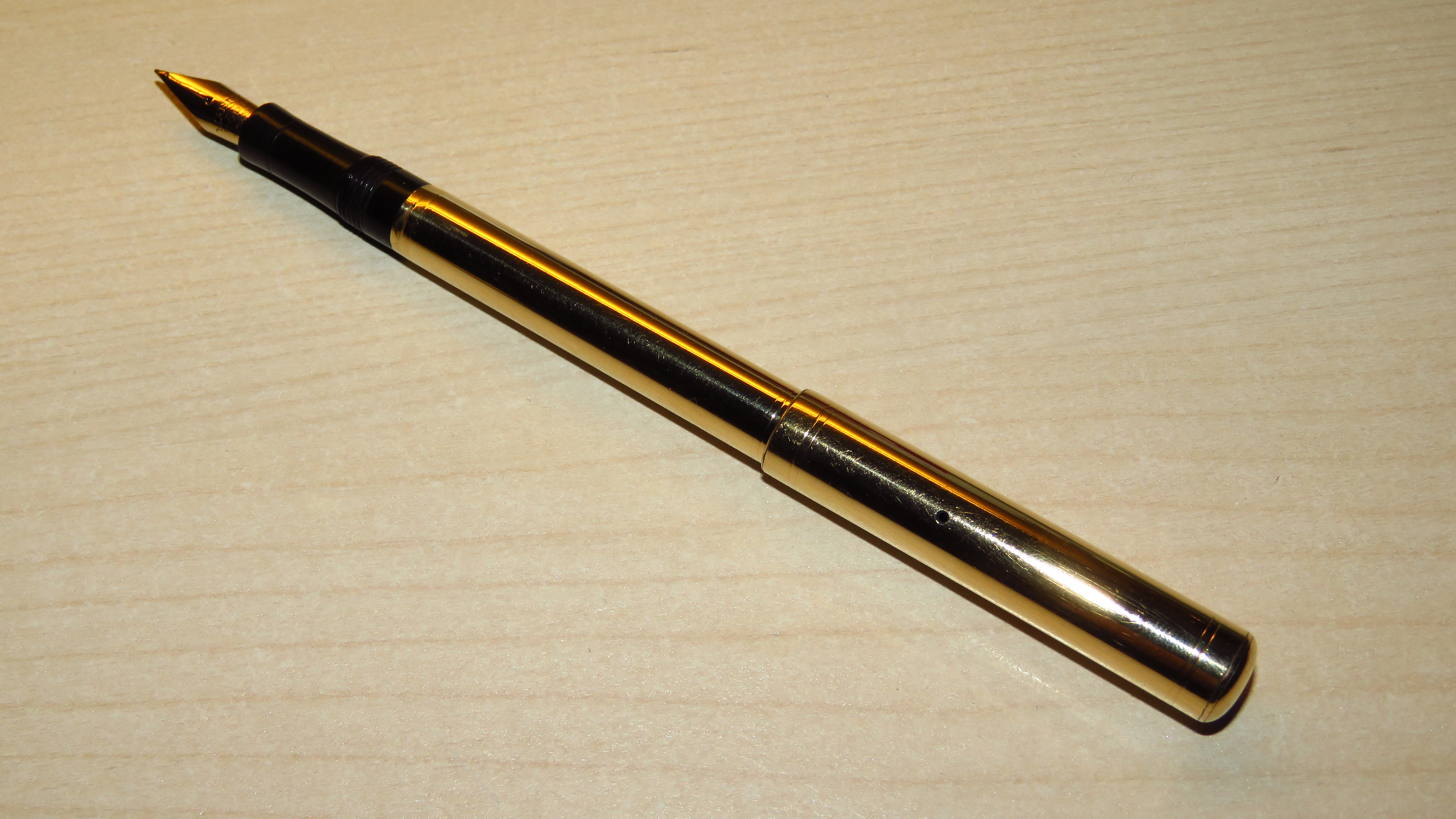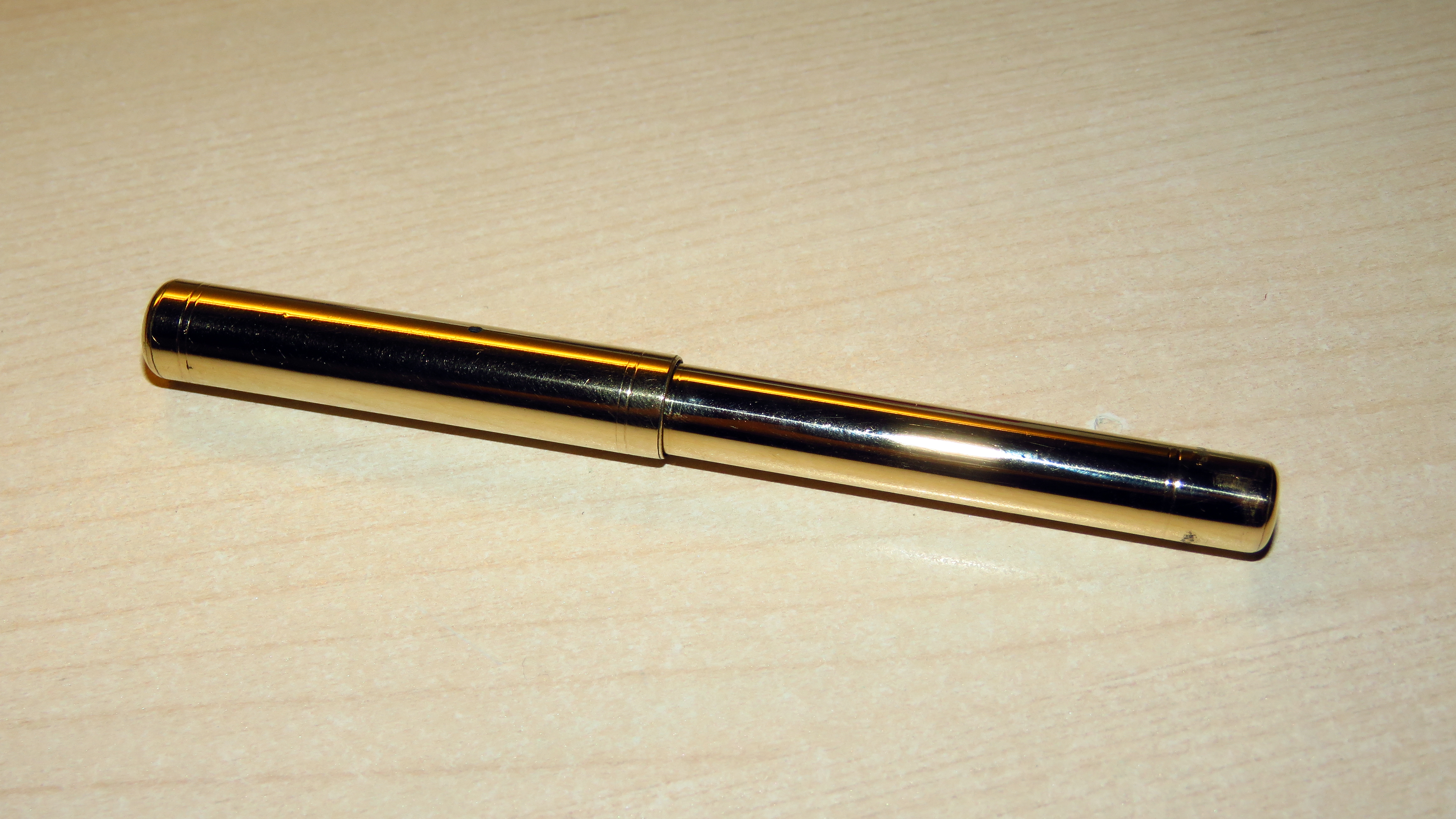 Si mostra con un rivestimento spoglio ma comunque elegante nella sua semplicità "gold filled" 9Ct ancora intatto e solo impercettibilmente graffiato in coda dove si calza il cappuccio (purtroppo si è obbligati a farlo, la penna è troppo corta).