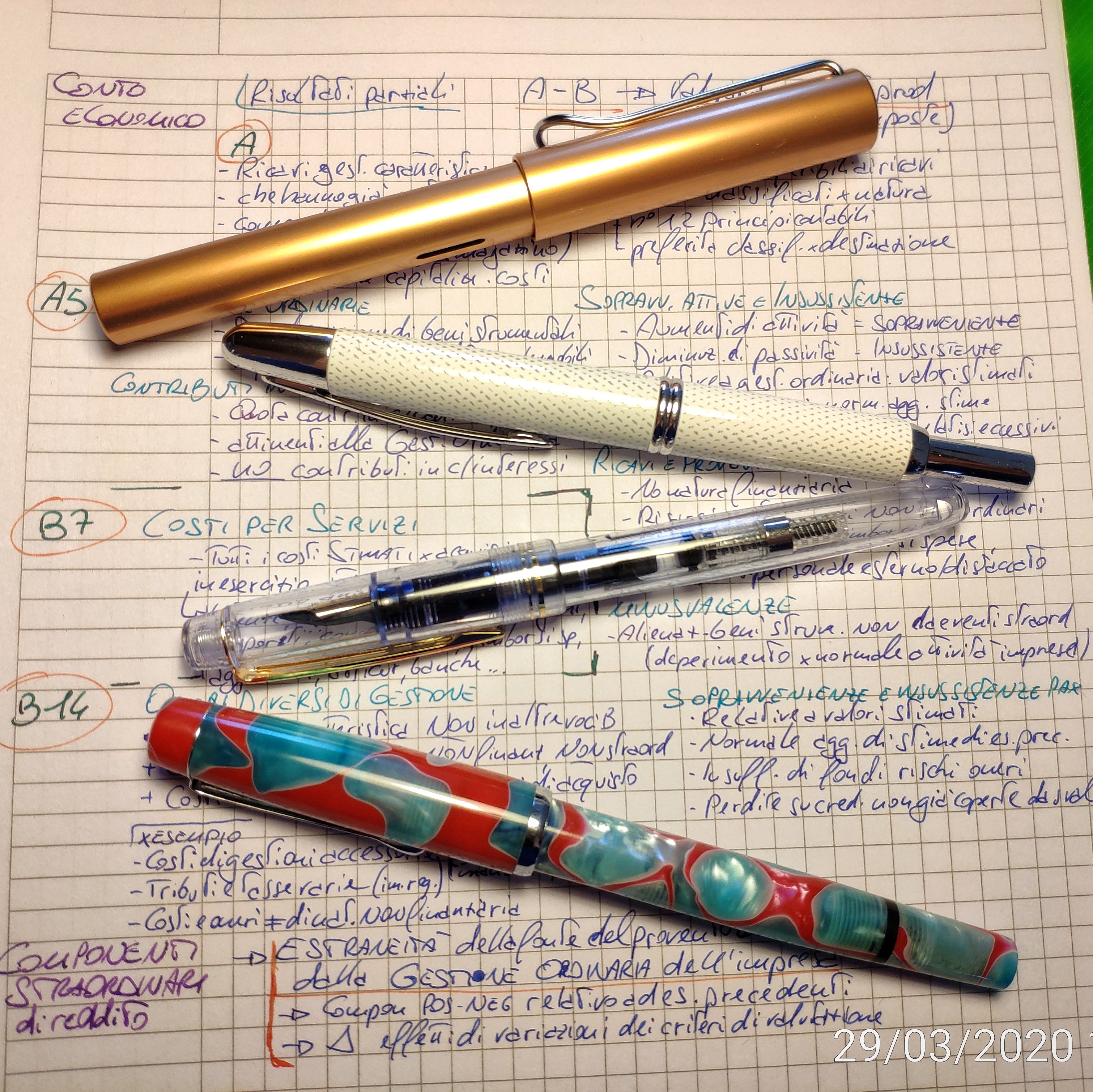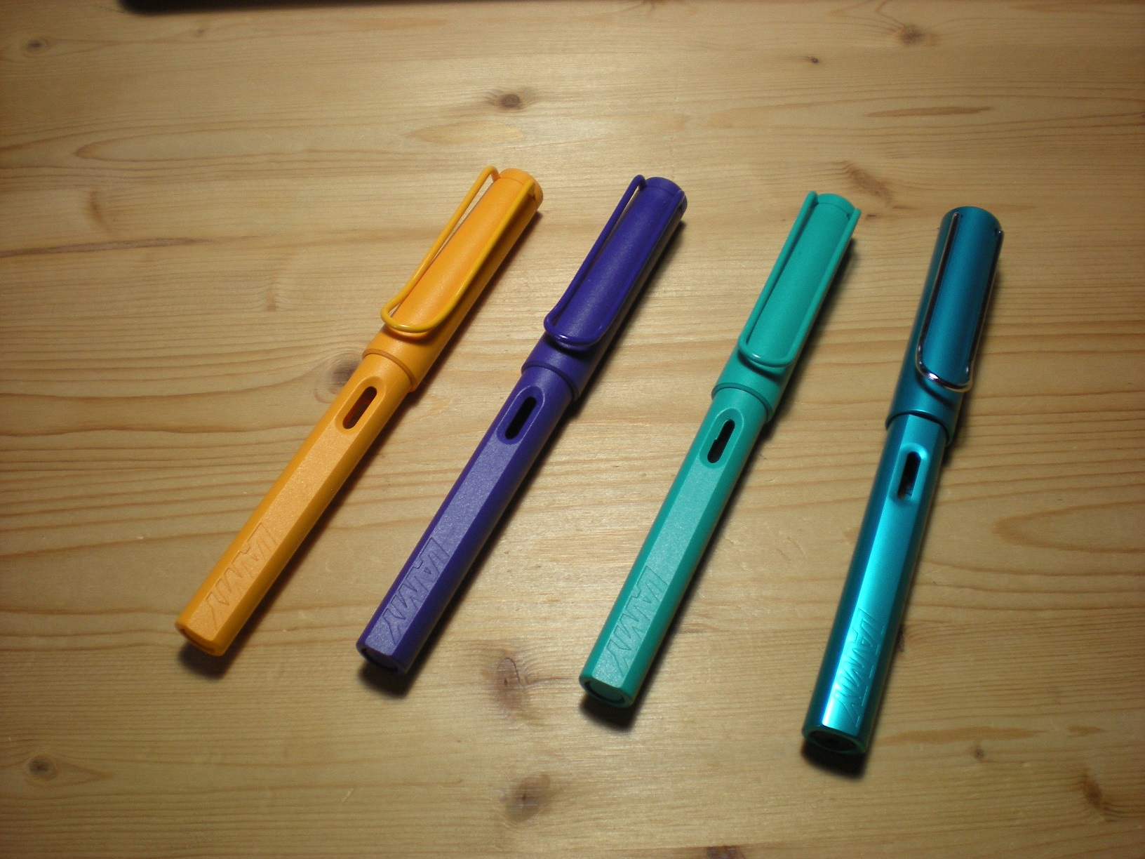 Sono le penne che attualmente uso in maniera principale, perché coniugano la buona scrittura del pennino F Lamy, al flusso regolare e saturo, senza inceppamenti o false partenze, al buon converter Z24, al grip che rende la presa confortevole (tutt'altra pasta rispetto la presa della Safari che per me risulta una penitenza), al confort del legno, all'ottimo blu Lamy che è per me e tra i miglior inchiostri, sia come caratteristiche (scrive bene su ogni carta) che come timbro.