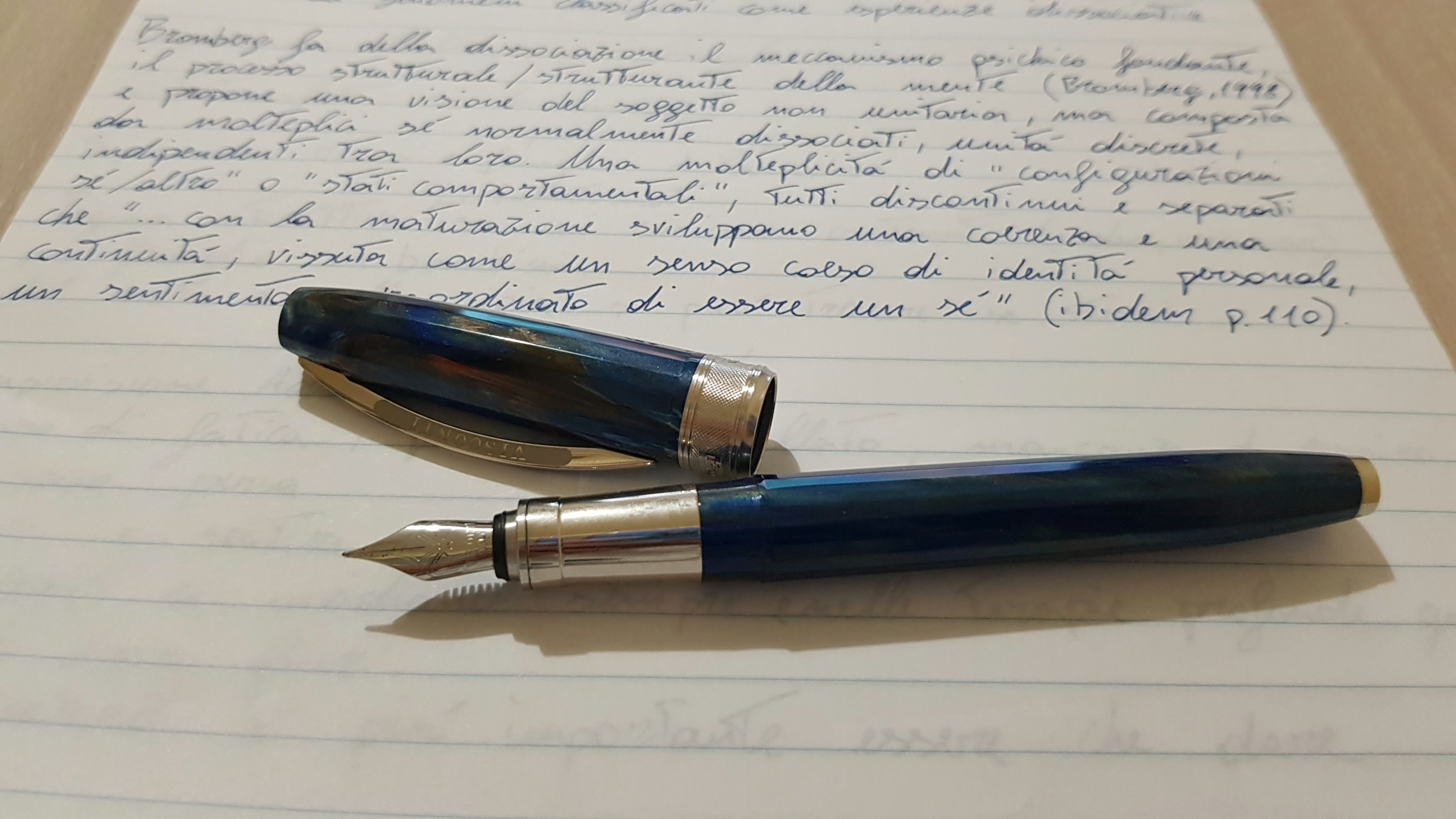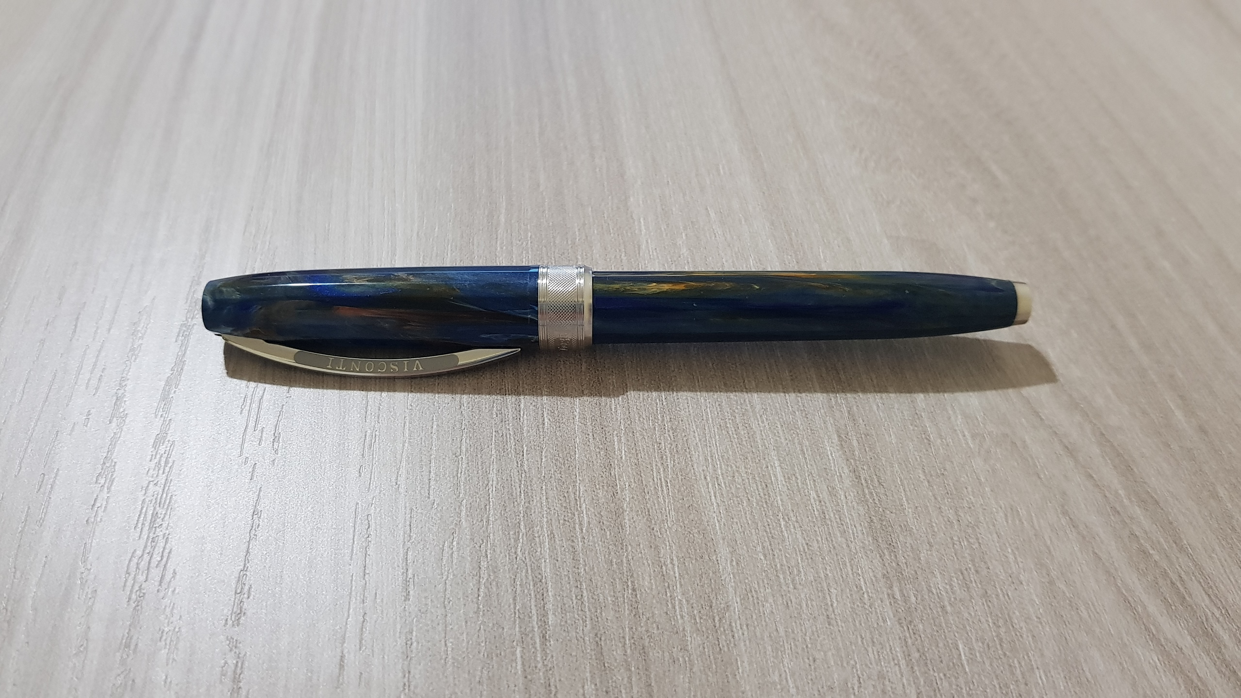 Vi presento la mia amatissima Visconti Van Gogh Starry Night. Attualmente è inchiostrata con il Diamine Denim che trovo stia molto bene con il blu del fusto e cappuccio.