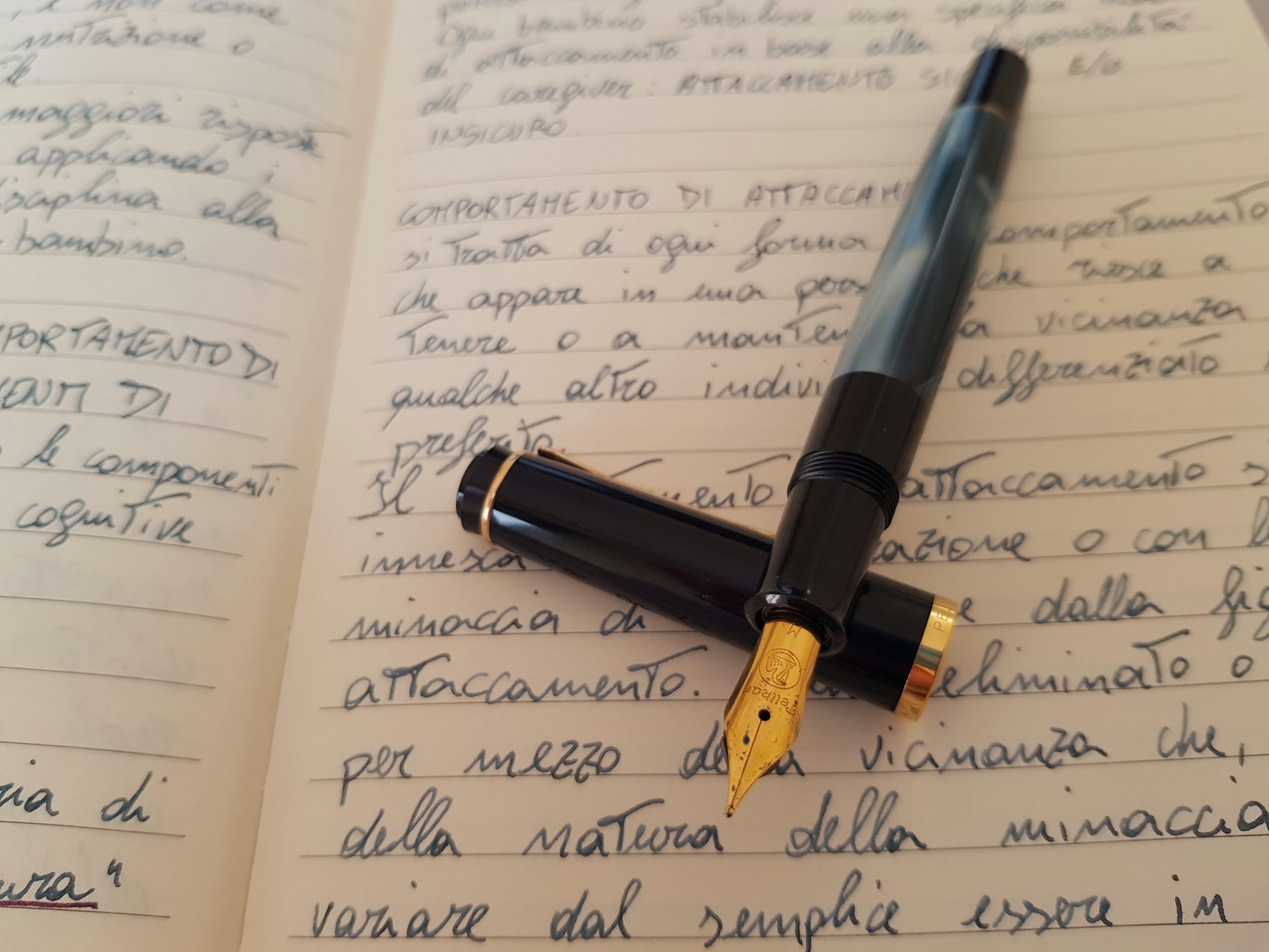 So che sono ben poca cosa rispetto certe meraviglie che state mostrando, ma ultimamente ho comprato e uso con soddisfazione la scolastica tedesca per eccellenza, la Lamy ABC, a cui ho sostituito il pennino originario A, con l'F, in un caso nero e in un caso argento. Sono caricate con il Blue Lamy e il Faber-Castell Pink, entrambi cancellabili (così da poter correggere in caso di errore).
