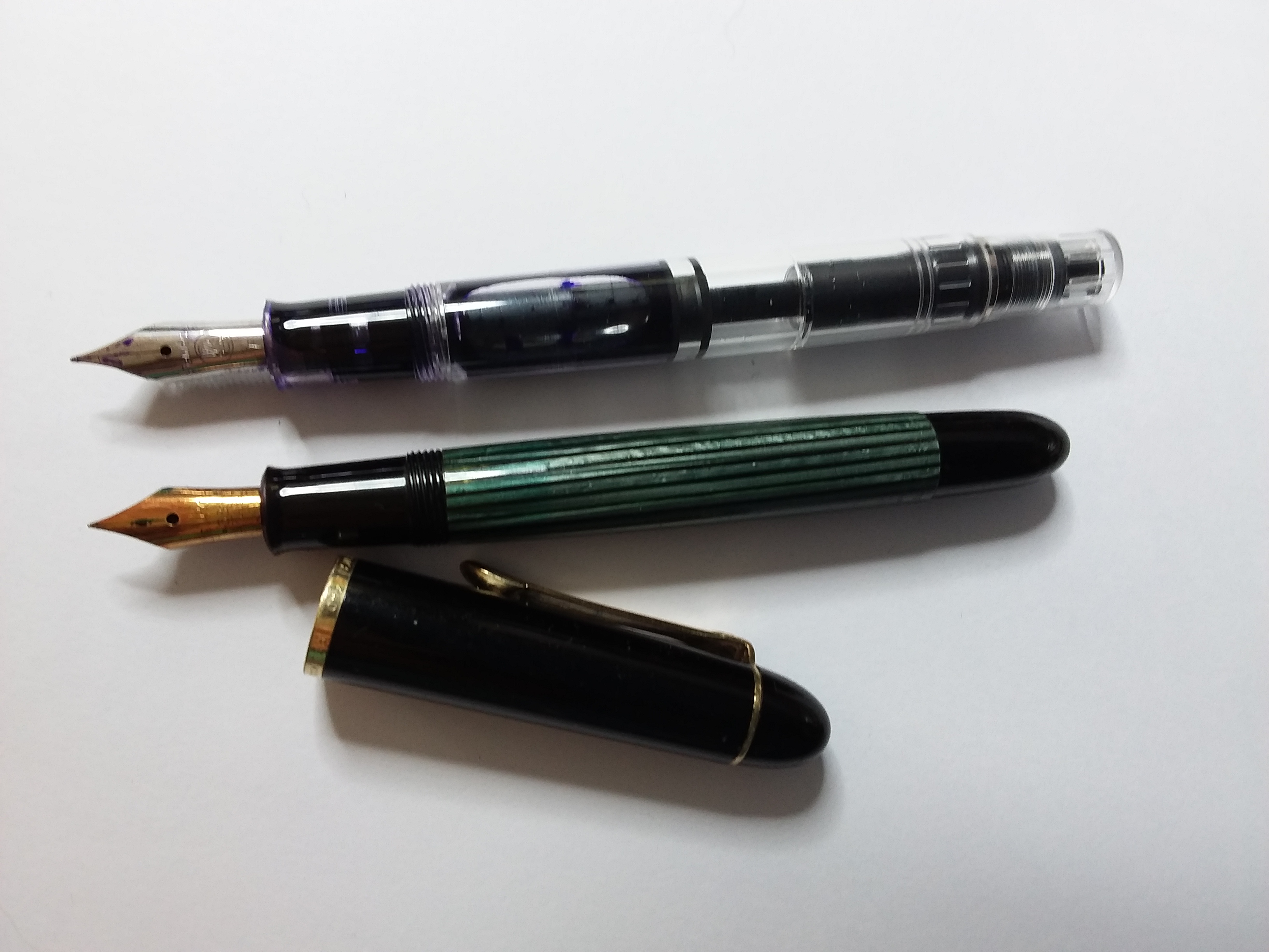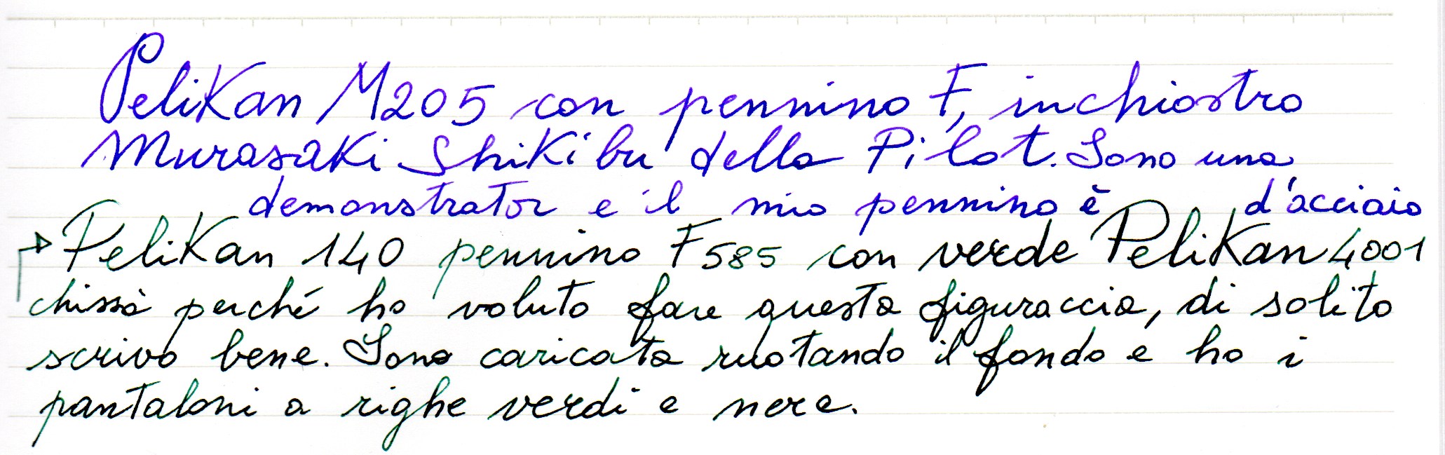 Dato che oggi ho lo scanner... carico e mi avete incuriosito con i vostri commenti sulla mia M205 con pennino F mi è venuta voglia di fare il confronto e metterlo a disposizione del Forum. Non è un confronto perfetto perché le due belle creaturine hanno un inchiostro diverso ma spero che sia di qualche utilità