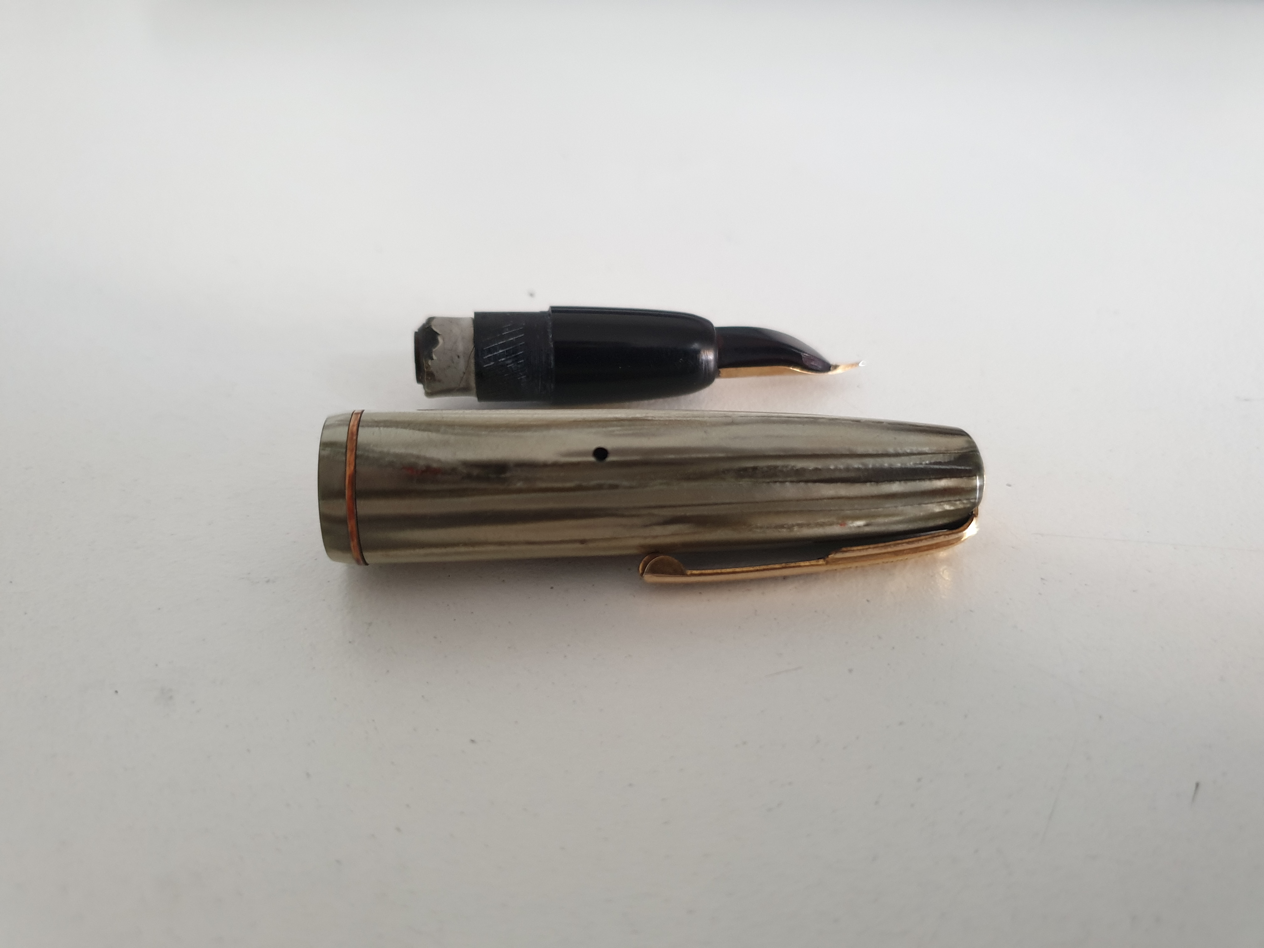 La penna mi pare in buone condizioni, la ho lasciata a bagno nell'acqua calda e l'inchiostro ormai secco sembra essere venuto via, inoltre il meccanismo a leva sembra anch'esso funzionare anche se vorrei smontarlo per pulirlo e accertarmene (se muovo la penna sento che fa un suono tipo tik-tak avanti indietro ma potrebbe essere che non è fermato dalla sacca dell'inchiostro) il problema principale appunto è che non ha la sacca dell'inchiostro e non so dove procurarmene una, consigli ? inoltre ci sono altri problemi minori per cui accetto suggerimenti se avete da dire: