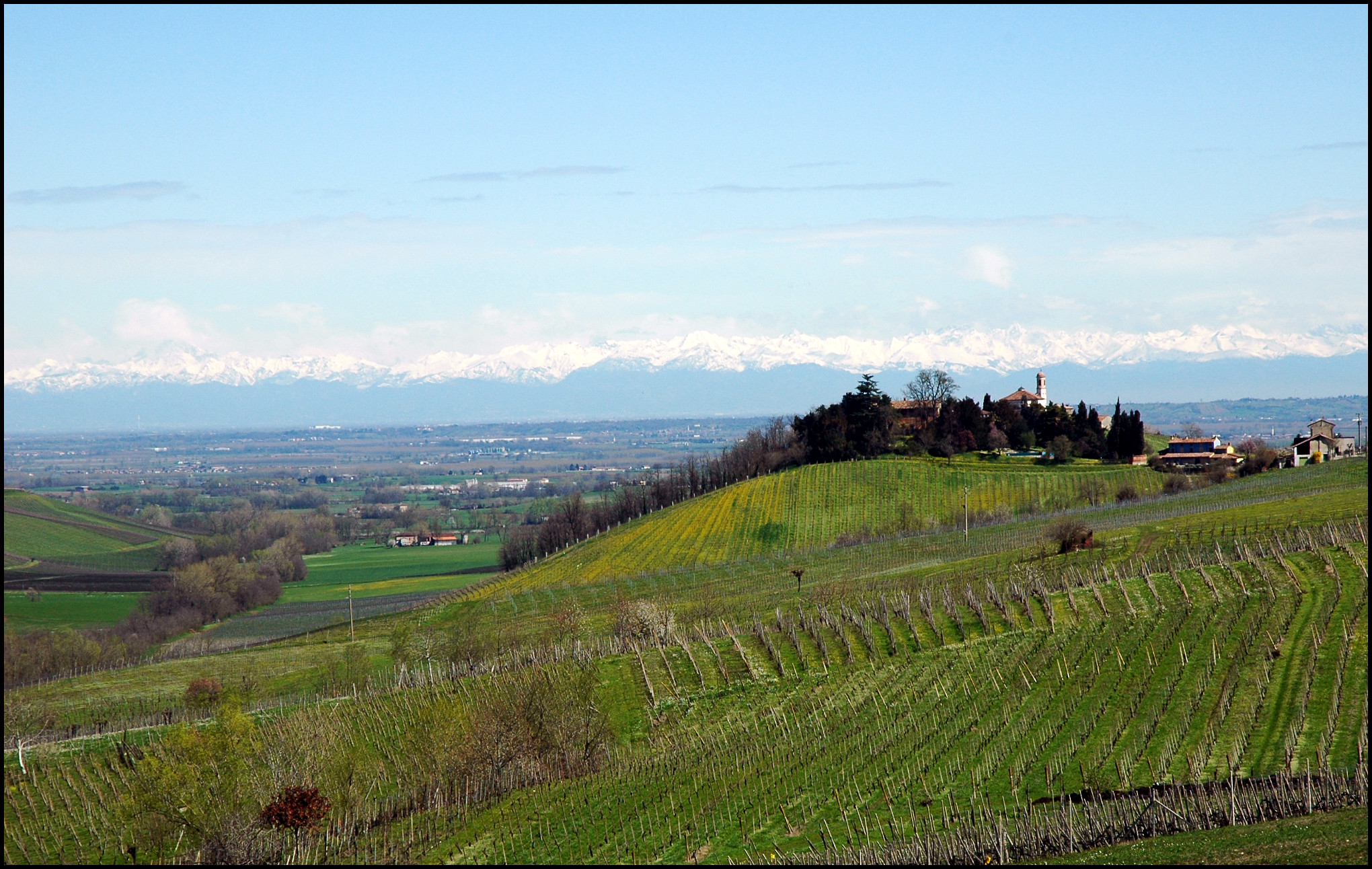 Si vedono le Alpi, e, quando è sereno, fino Bergamo e Brescia. Appunto.