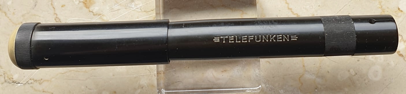 Generosa FABULA (prod. Mont Blanc) di cm 14, gadget TELEFUNKEN, con una linguetta mai vista. Sarei curioso anche di sapere il motivo di quel taglio alla base. Azzardo sia per aggancio ad un supporto/appoggio da tavolo.
