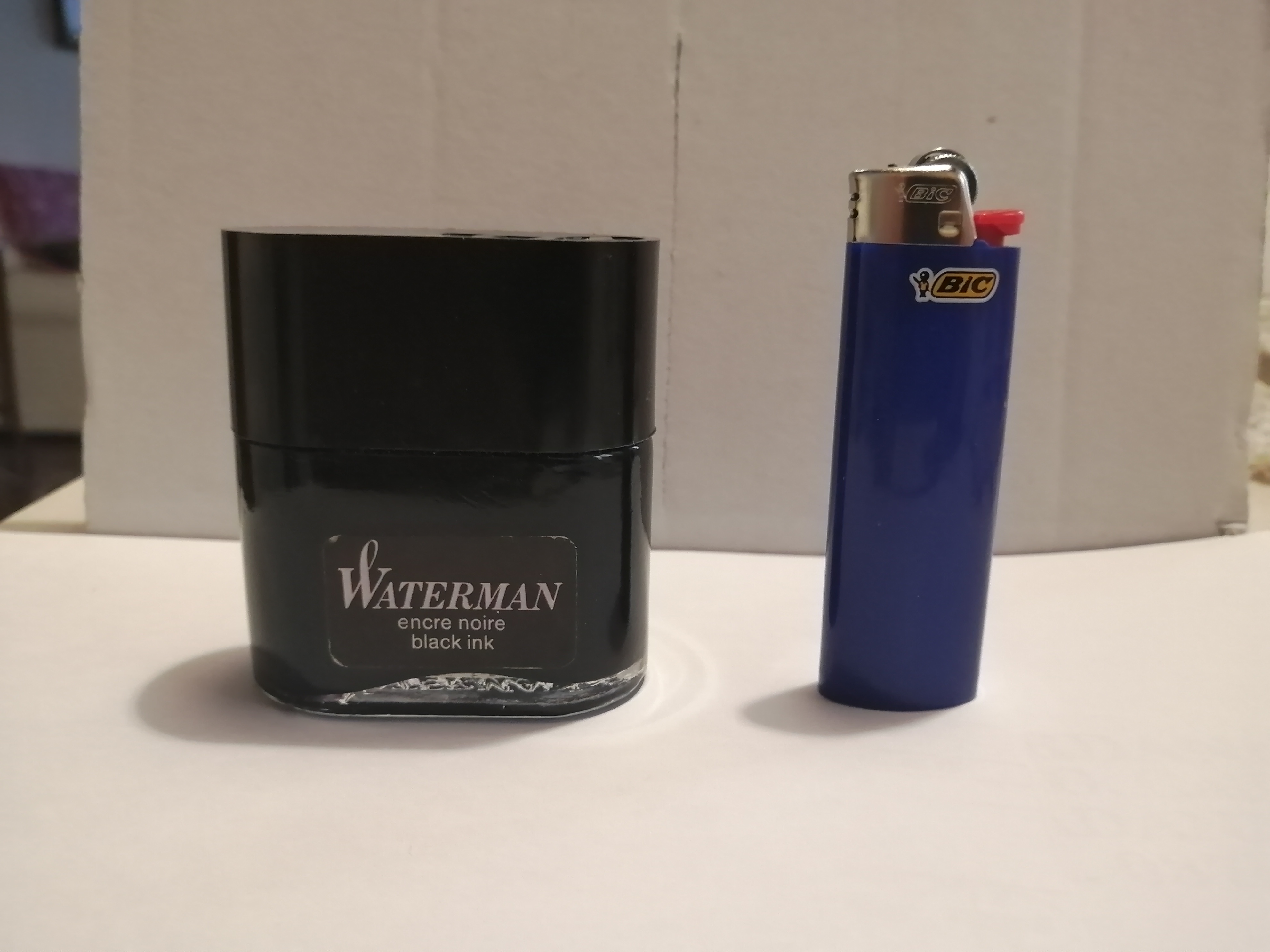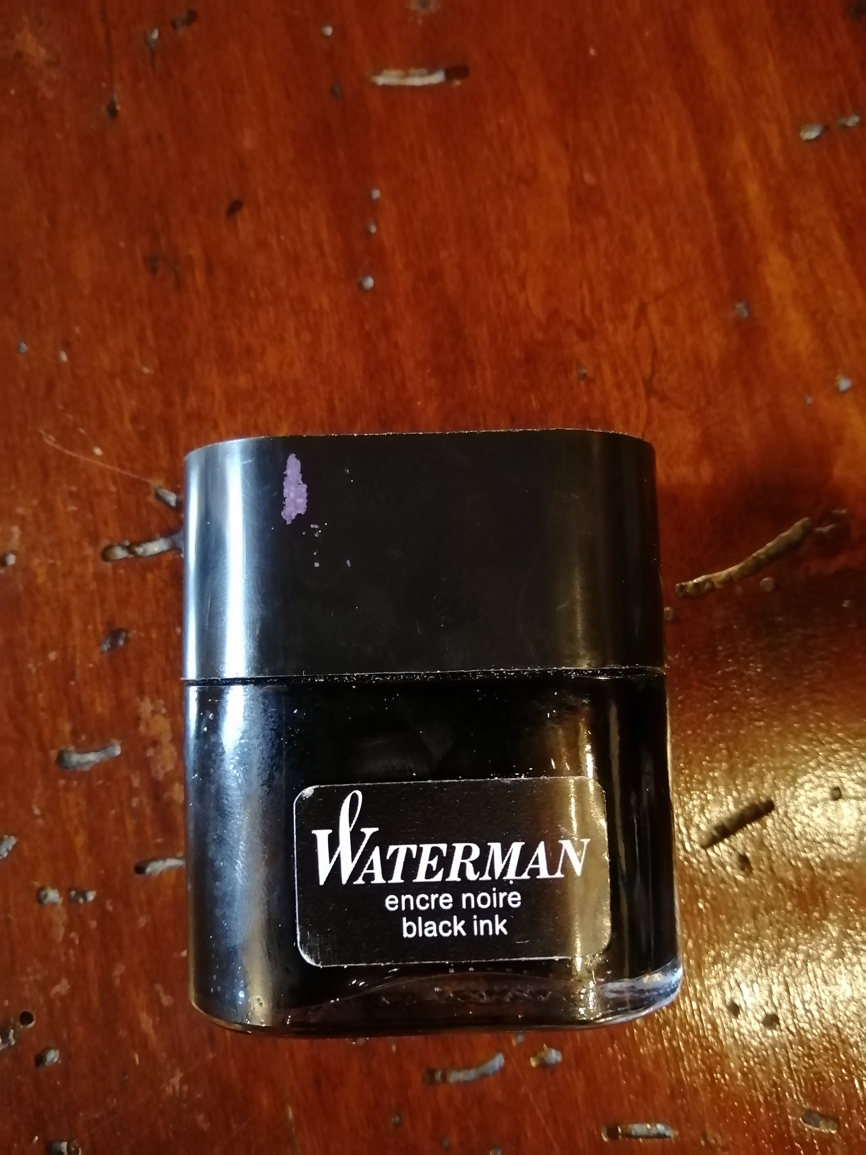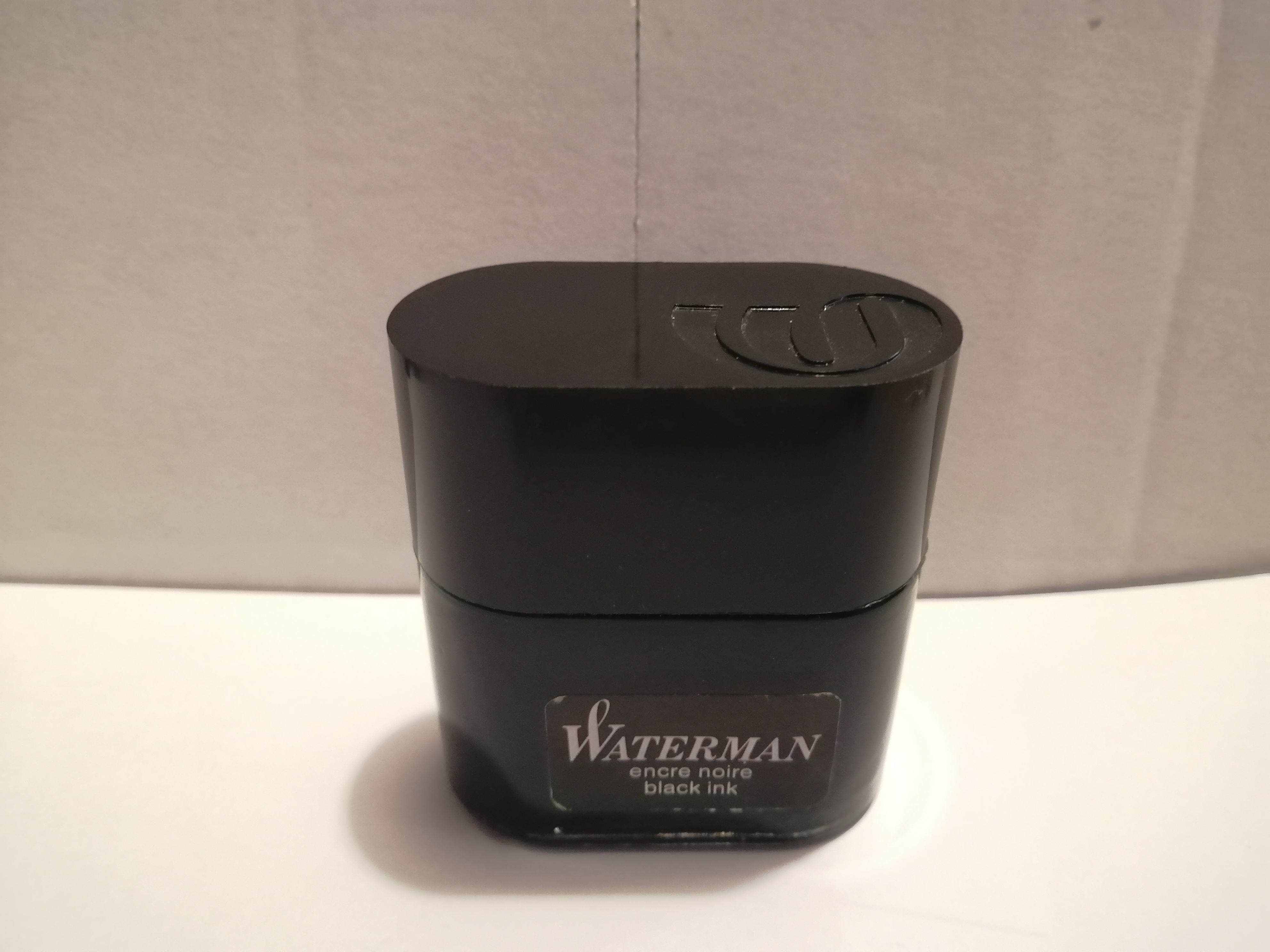 In effetti non ne avevo mai visto uno così prima! Non so se il livello dell'inchiostro sia quello corretto. Mettendo la boccetta in orizzontale il livello dell'inchiostro arriva al pari dell'etichetta (foto). Il colore dell'inchiostro in controluce ha marcate sfumature blu.