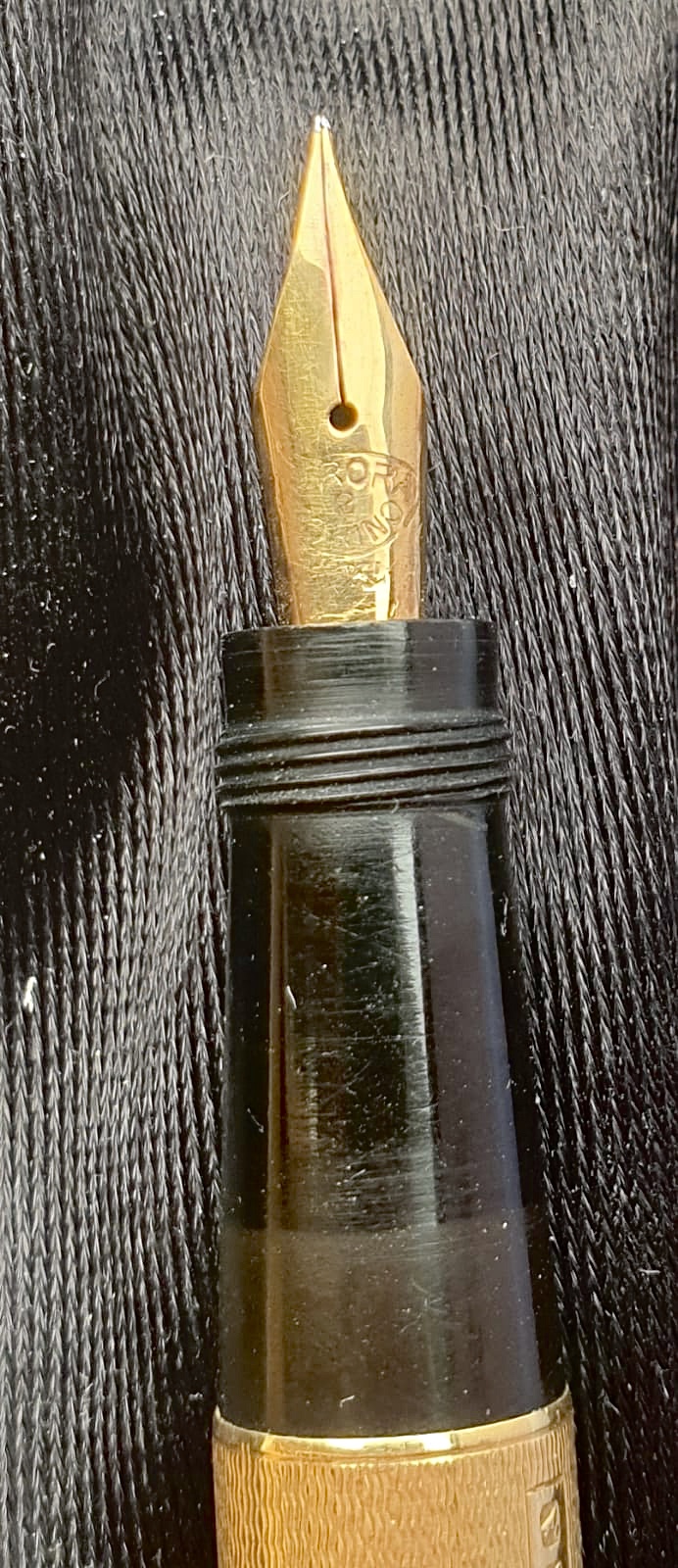 Aurora RA3 in oro 18 k. Pennino n 2. A quei tempi (fine anni ‘30) la penna italiana di gran lunga più costosa.