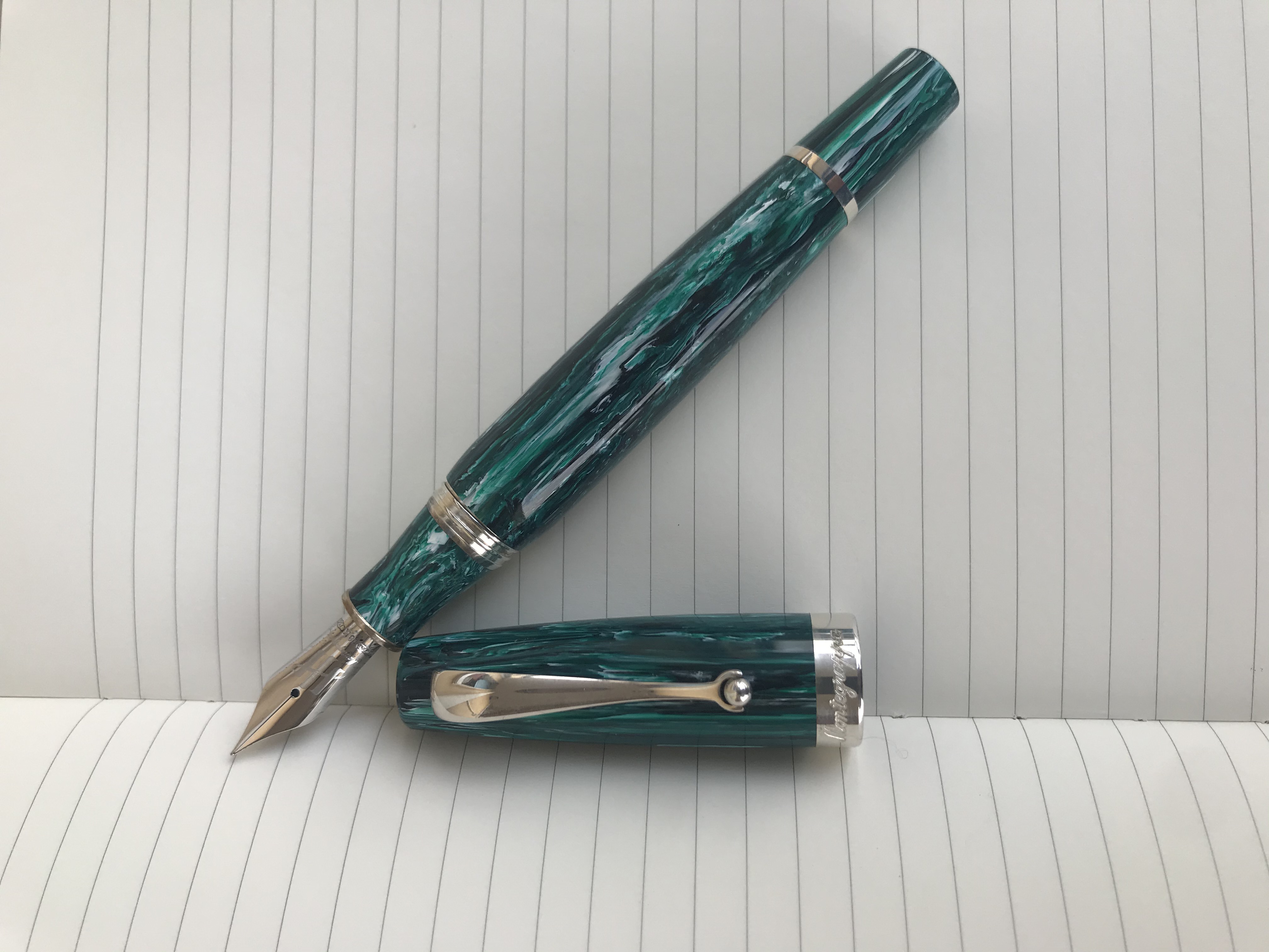 Complimenti, davvero una gran bella penna. Una delle cose che mi piace della Mia è la sezione che è dello stesso materiale del fusto piuttosto che in argento come le sue cugine strette Miya.