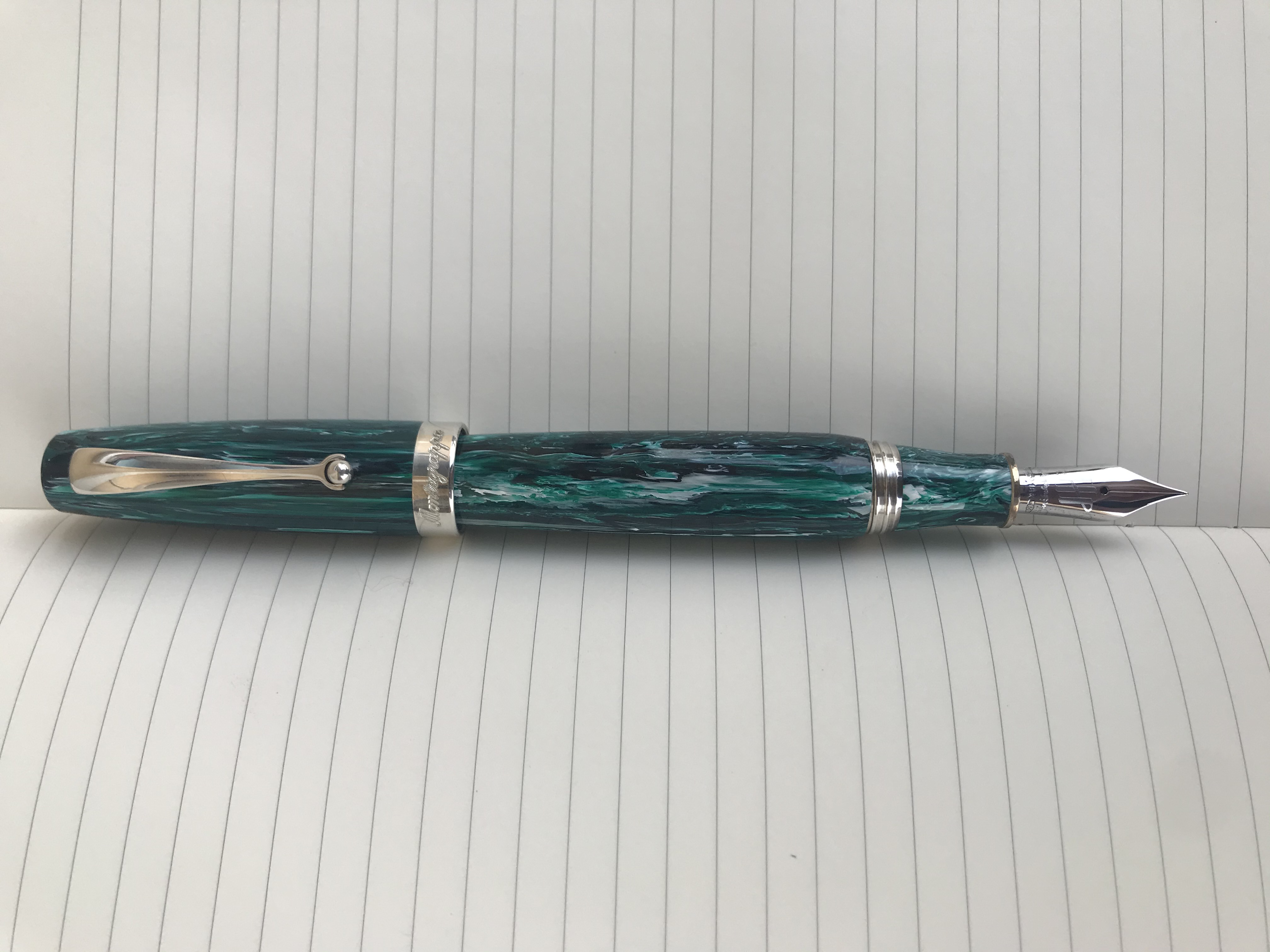Avrei voluto un pennino F ma purtroppo erano rimasti solo EF ed M e l’indecisione è stata grande, scottato dall’esperienza con il pennino F della Stipula un EF mi metteva qualche apprensione temendo potesse grattare. La disponibilità a sostituirmi eventualmente la misura del pennino mi ha deciso a tentare.