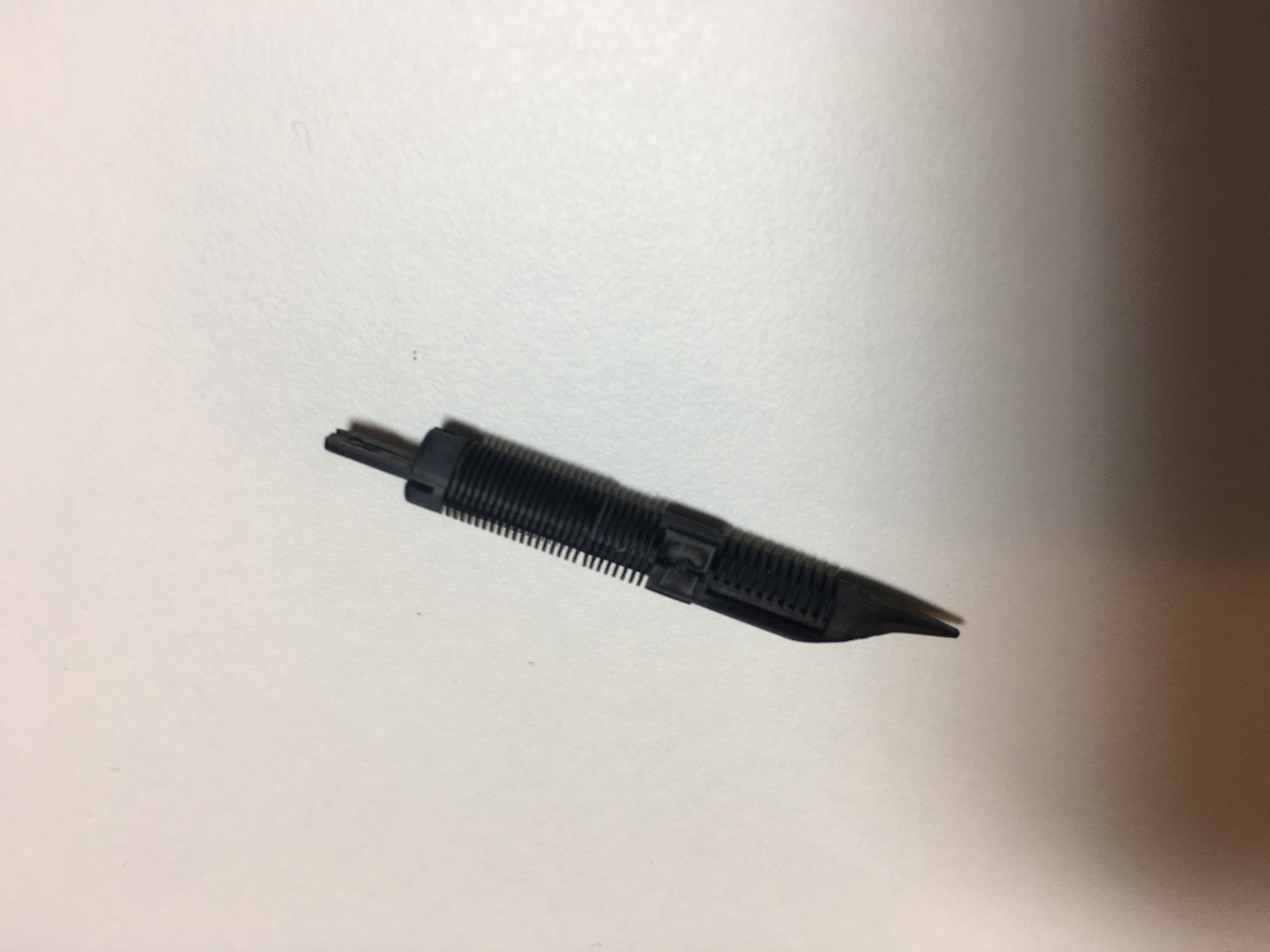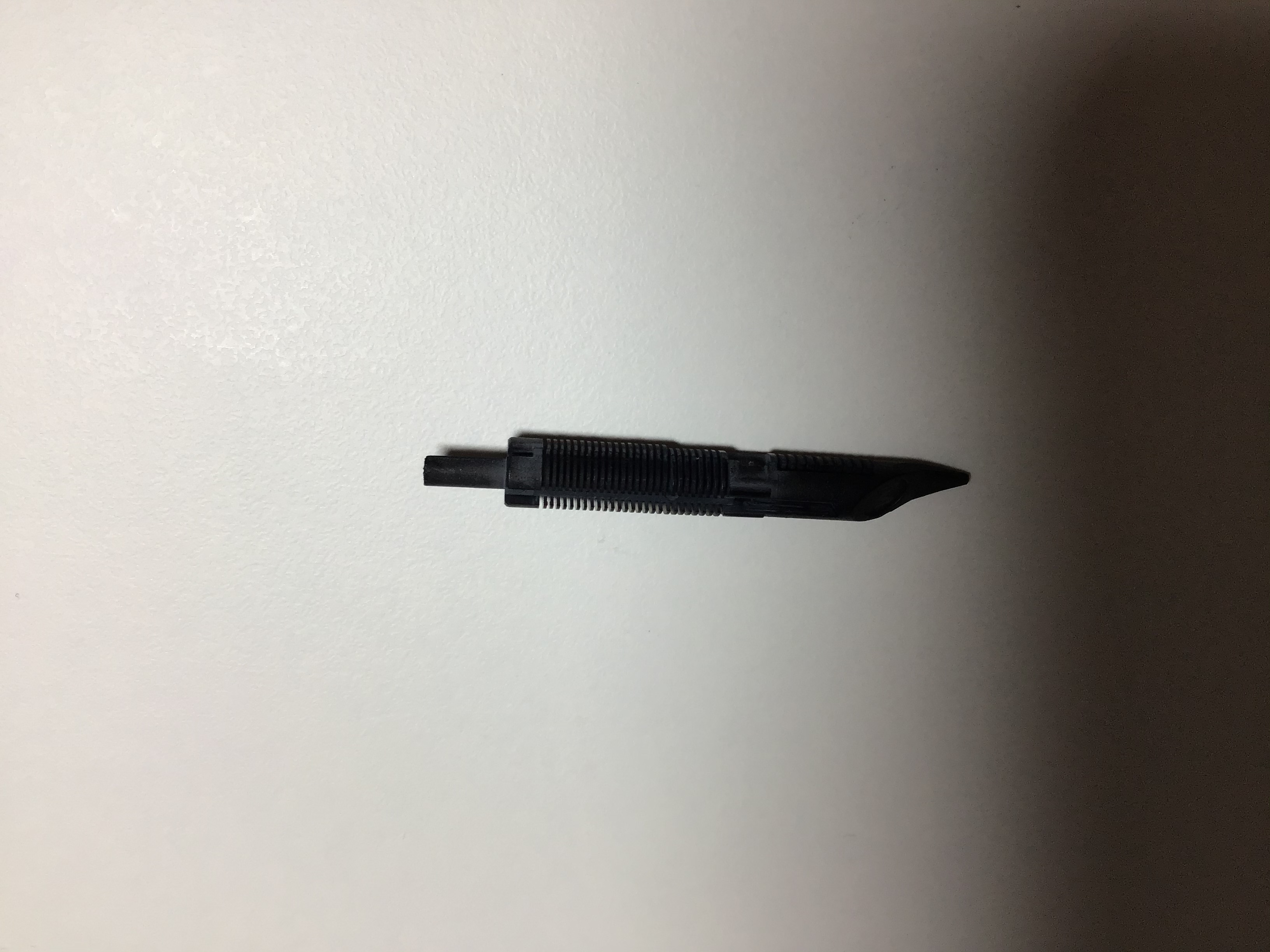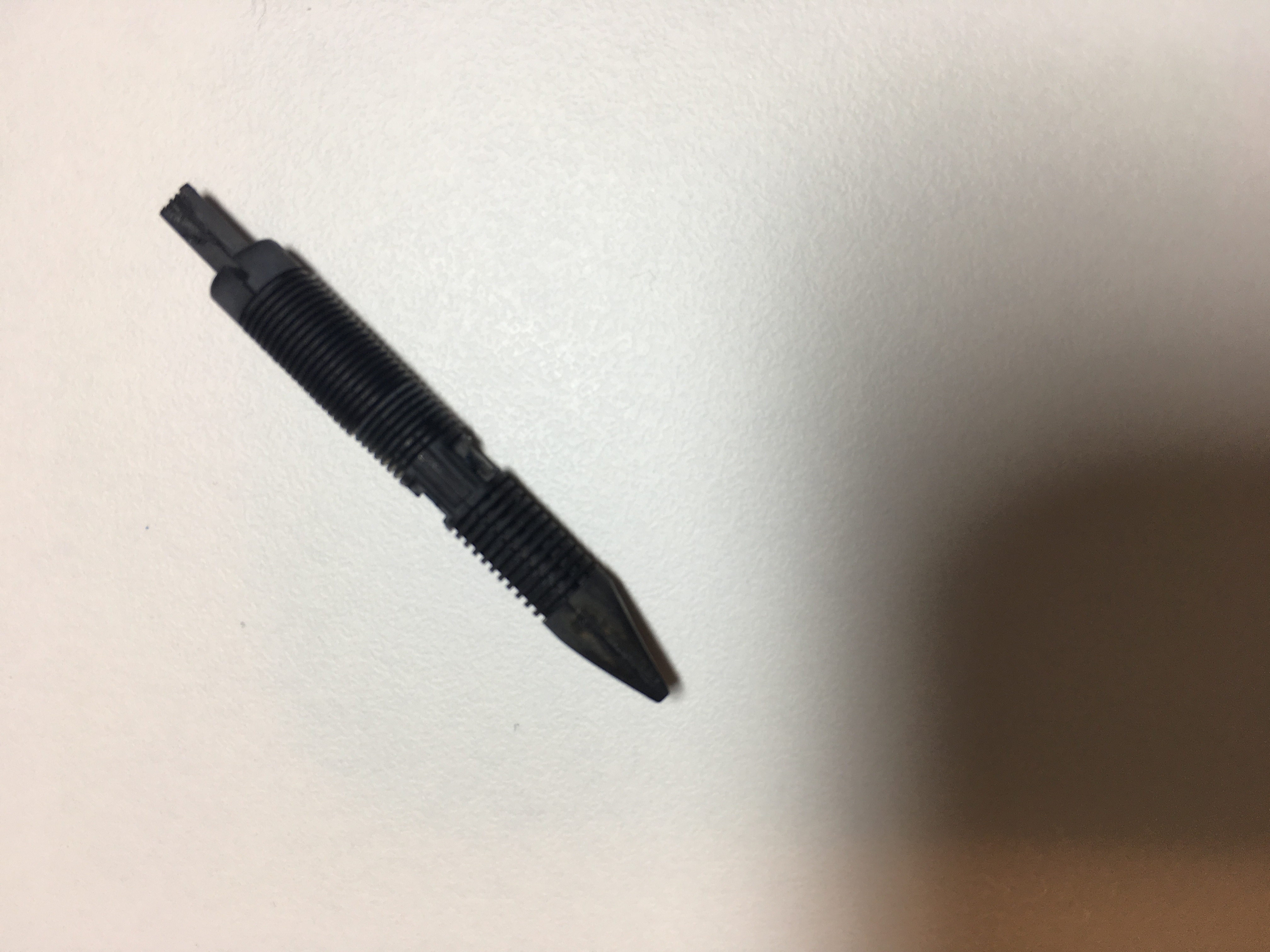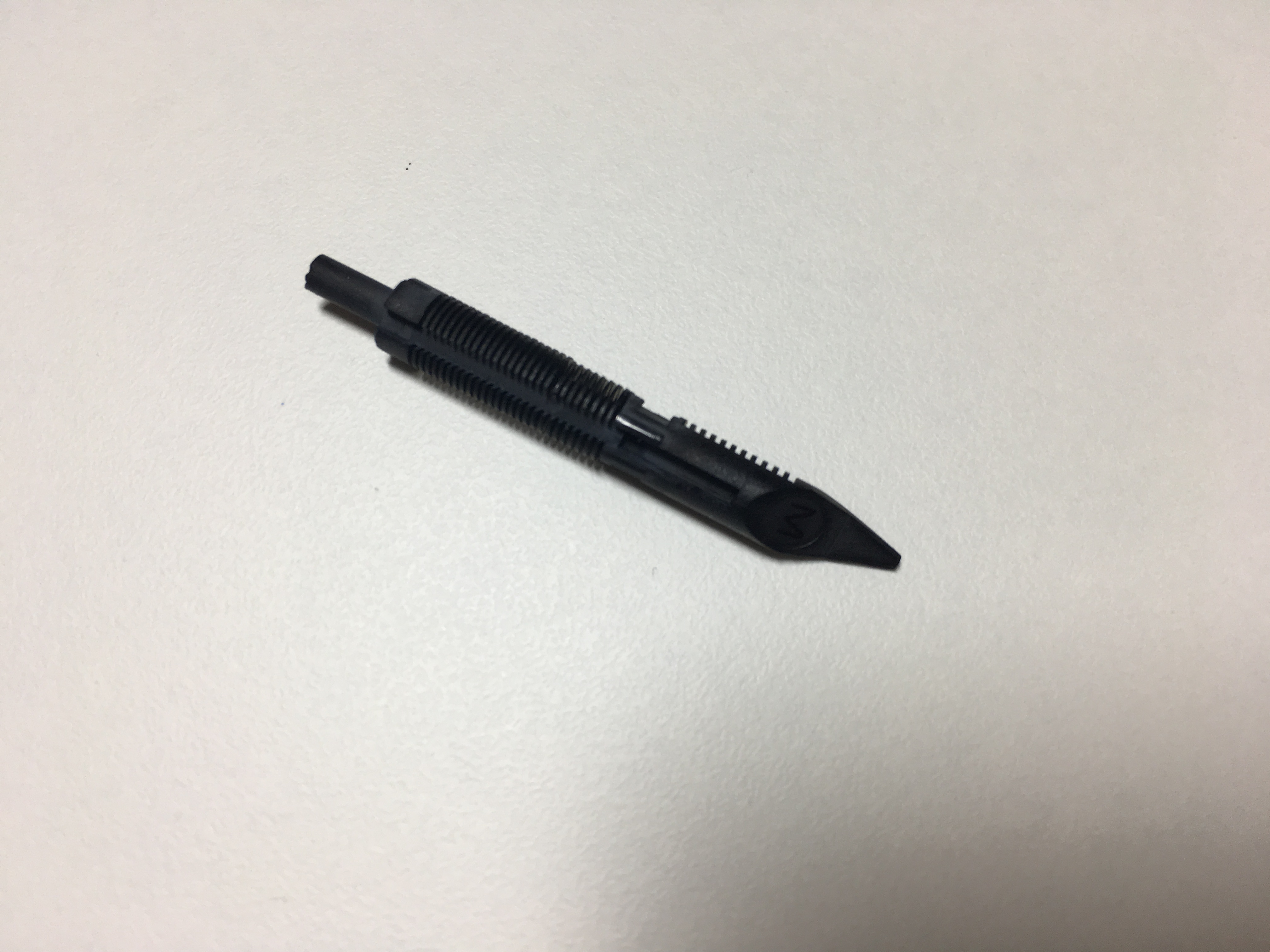 Non riesco a farti la foto perché il tubicino dove si incastra la cartuccia è dentro il corpo della penna. Comunque ho visto che è rotto a metà (in sezione). La cartuccia va in sede ma non essendoci metà del tubicino che la contiene perde inchiostro. A questo punto penso si debba sostituire non l’alimentatore ma il resto, giusto?