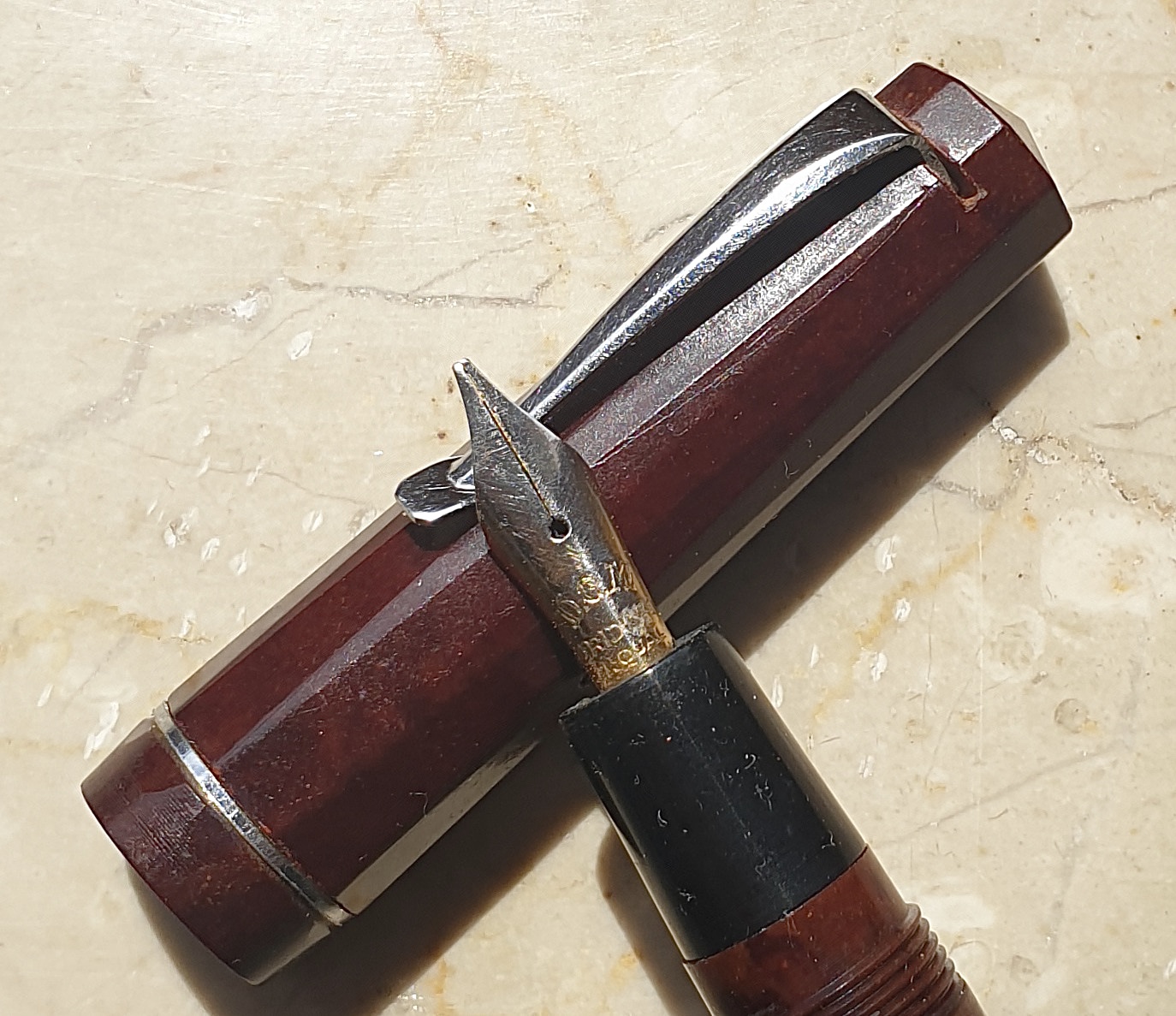 Particolare dell’ultima stilografica a destra, nella prima foto; bellissima penna a losanghe, codolo compreso.