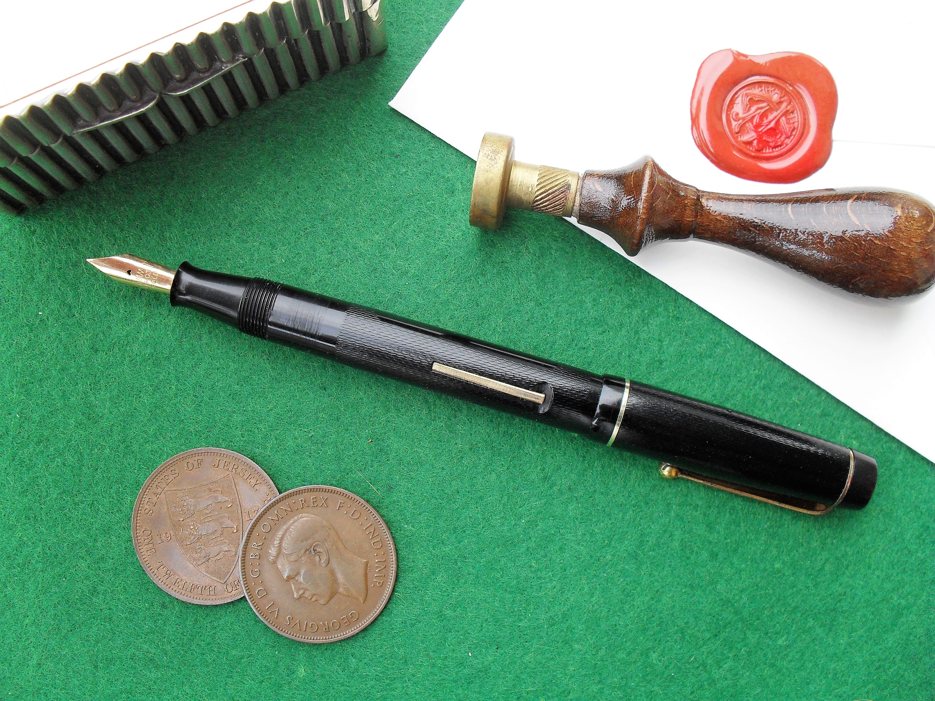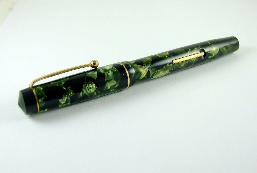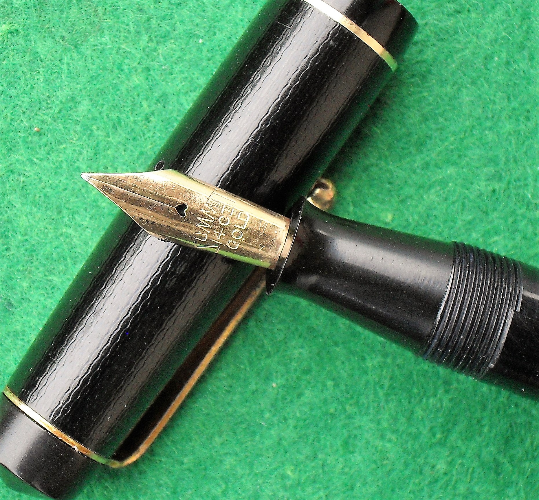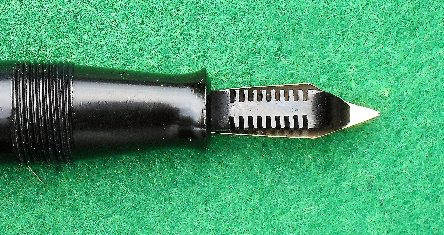 La scritta “unbreakable” (infrangibile) impressa sotto il marchio Summit caratterizzò le prime serie di stilografiche di quel marchio prodotte in celluloide (chiamata “Ethernite” dal produttore): l’abbiamo vista, nel corso delle varie presentazioni su questo forum, sia su penne della serie “H” sia su stilografiche della serie “S”. Introdotta nel 1930, l’Ethernite non era ovviamente più una novità qualche anno dopo e la scritta “unbreakable”, che in qualche modo rassicurava il cliente circa le qualità di robustezza del nuovo materiale, cessò d’avere senso e venne rimossa.