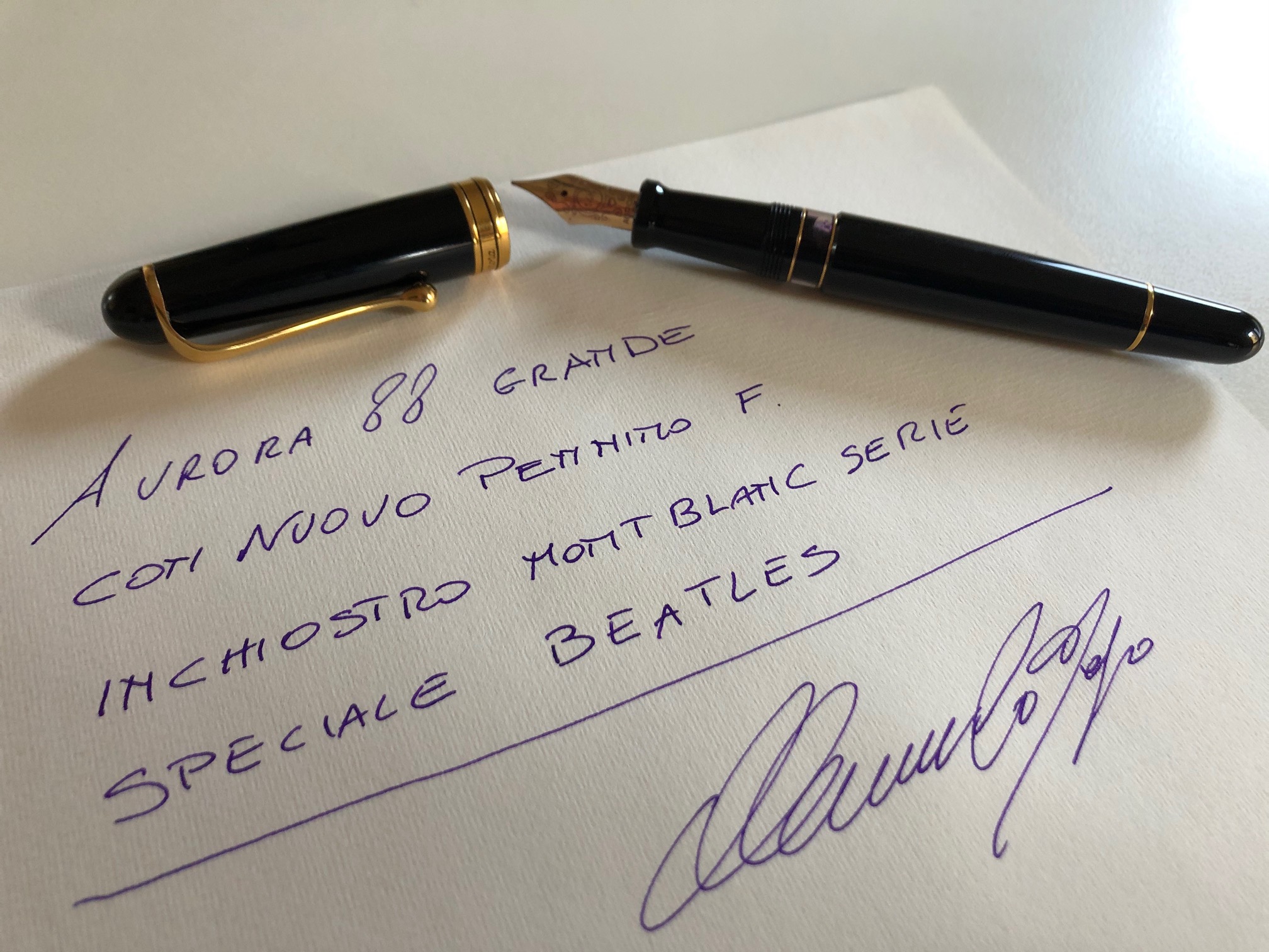 Spero di essere nella szione giusta, ovvero quella dedicata alla presentazione di delle proprie penne e di discussione generale. La mia Aurora 88, bellissima penna, con pennino appena sostituito nuovo F, avevo un M prima. Ha una ottia scorrevolezza. Per come scrivo io forse dalla prossima prenderò un EF.. Anzi parto da questa constatazione per addentrarmi nel mondo dei flessibili..... qualcuno sa darmi qualche consiglio per le prime prove, con cosa potrei iniziare senza spendere troppo?