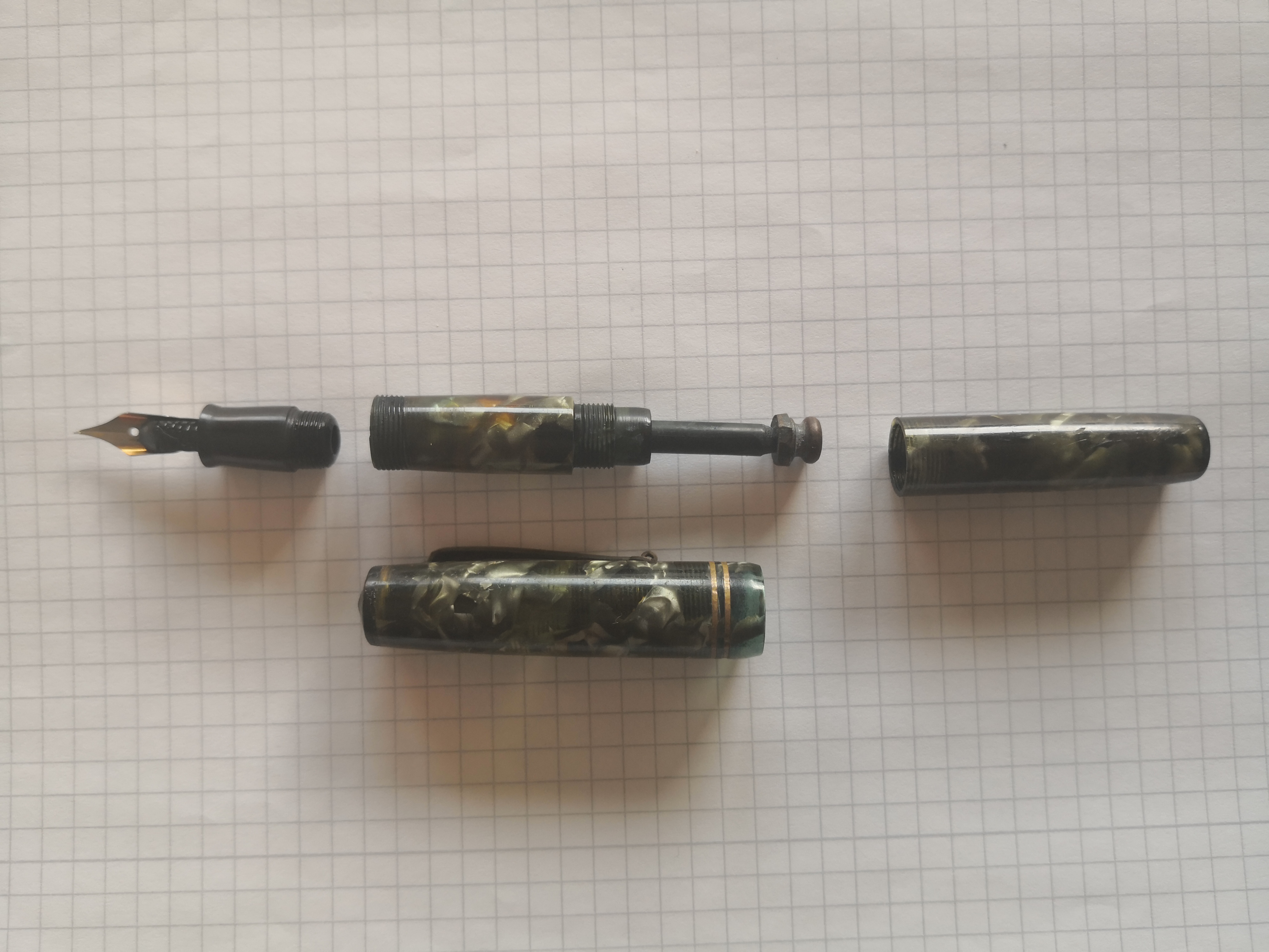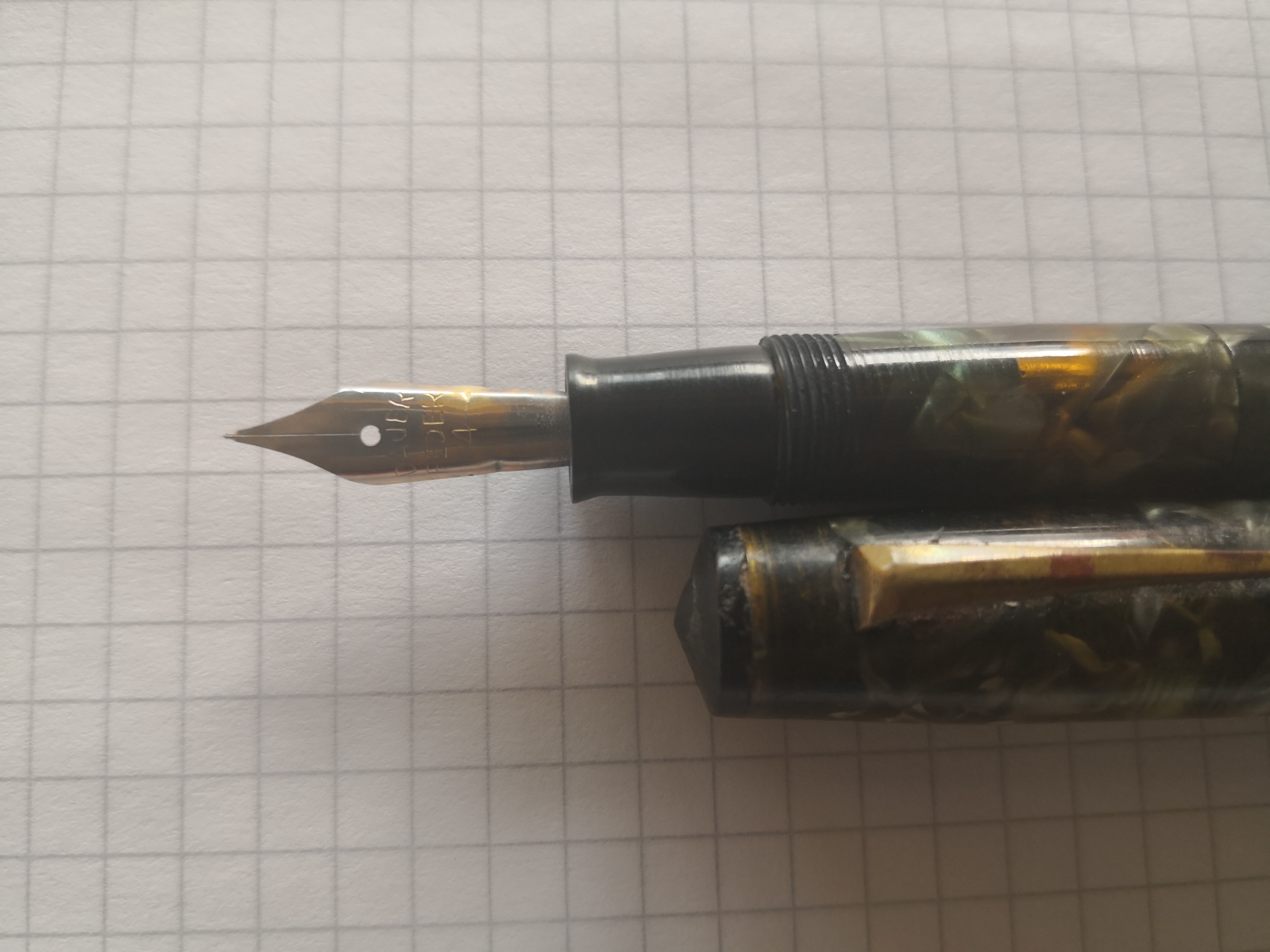 Noto però che il pennino è molto sfilato rispetto all'alimentatore (o, viceversa, l'alimentatore è rincagnato). In queste condizioni sarà difficile che possa scrivere.