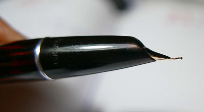 Il pennino non è bellissimo ed è ancora un pò deformato ma, inaspettatamente, scrive benissimo, morbido con un leggerissimo e piacevole feedback.