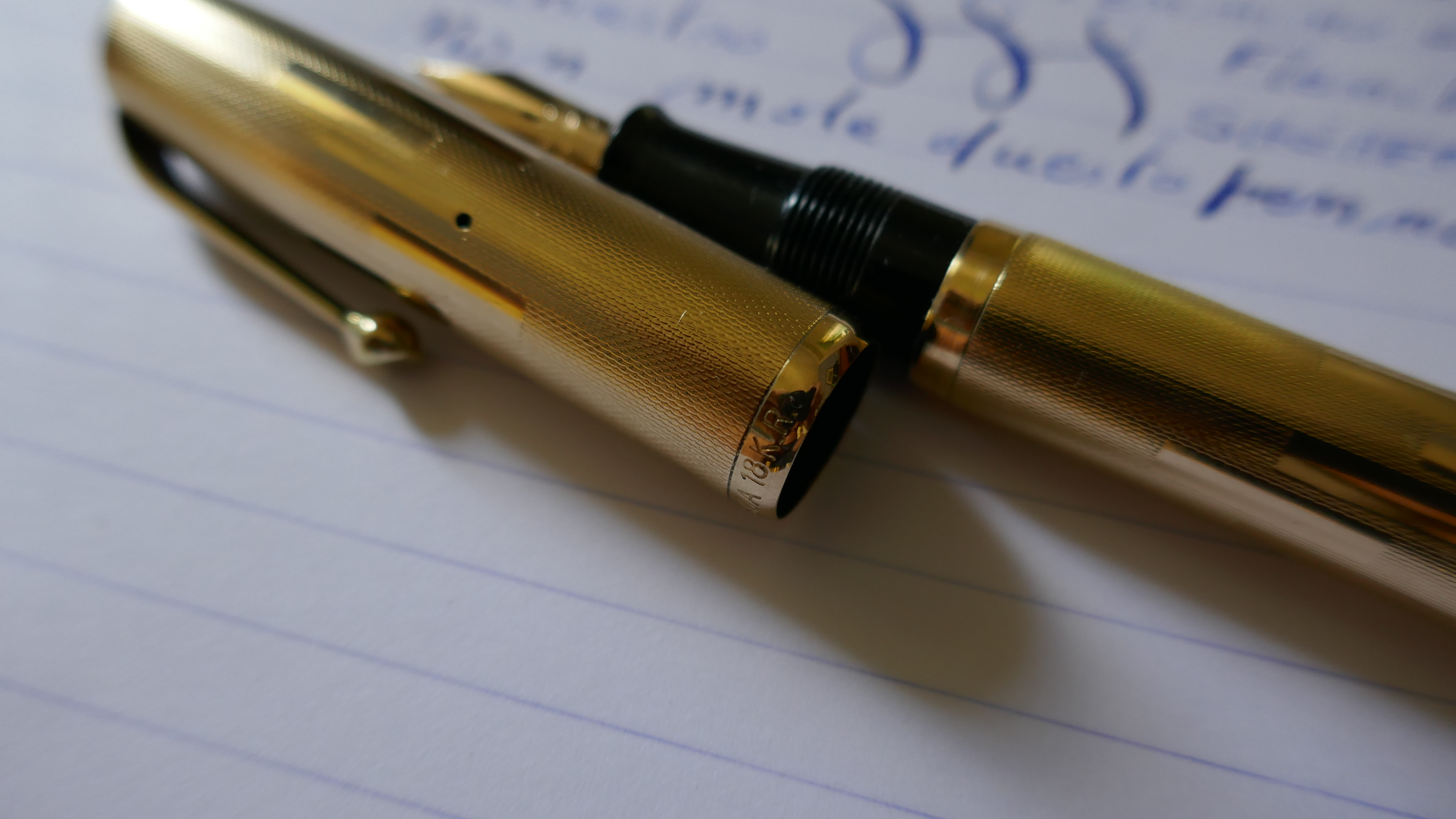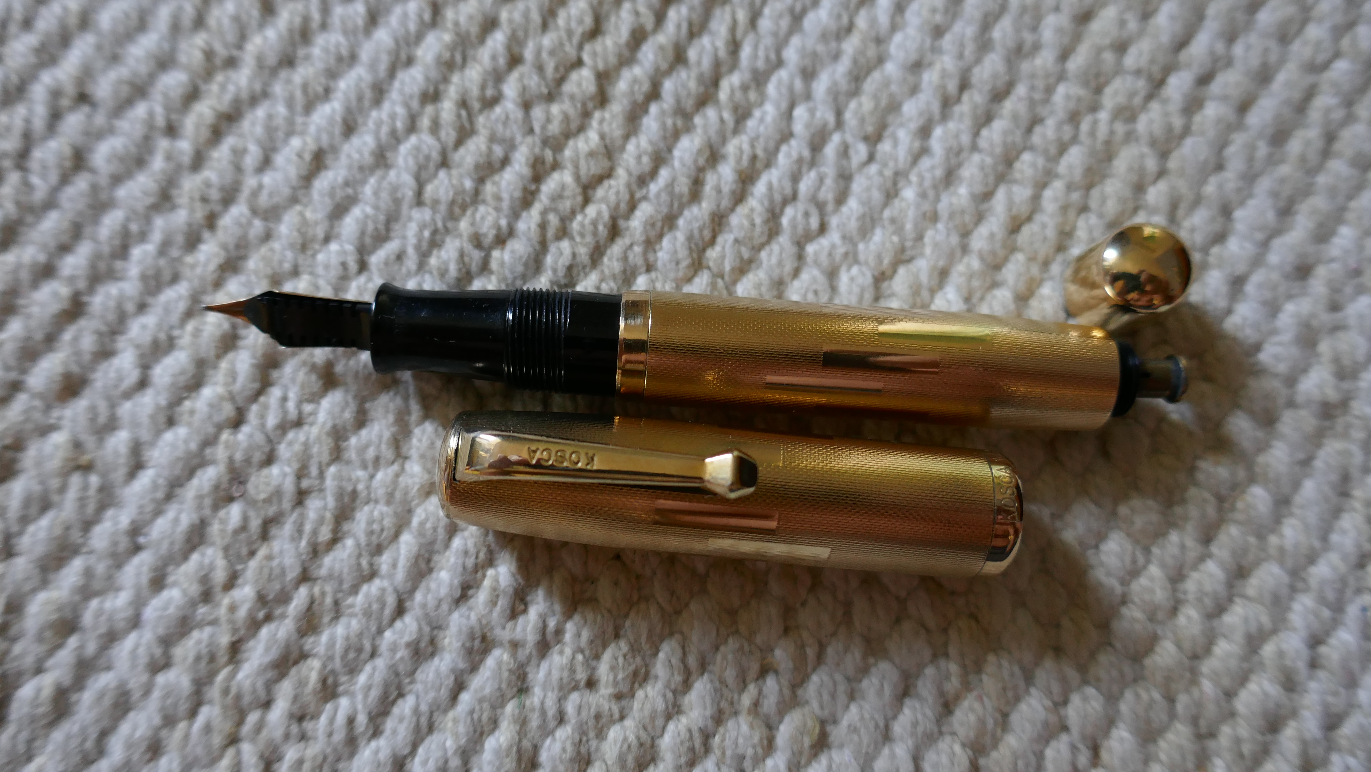 A parte le notizie fornite dal Wiki, una miniera, io ne ho due , una comprata da Fabio è molto simile a quella presentata , identitca la clip, identiche le dimensioni , a pulsante di fondo , leggermente diversa la trama della laminatura d'oro, ma...è una Parker duofold anellata marrone rivestita da Kosca. Scrive splendidamente. Mi pare che identica sia fotografata sul libro di Letizia Jacopini L'altra è una Kosca datata dal venditore croato presente al pen show di Milano al 1930 circa, un po' più piccola ,10,8 cm. chiusa , 11,4 cm , aperta , 15 cm col cappuccio calzato, anch'essa a pulsante di fondo. Pennino fine flessibile come il tuo mi pare . Se vuoi vedere le foto posso cercare di inserirle , anche se non sono molto bravo . umberto.