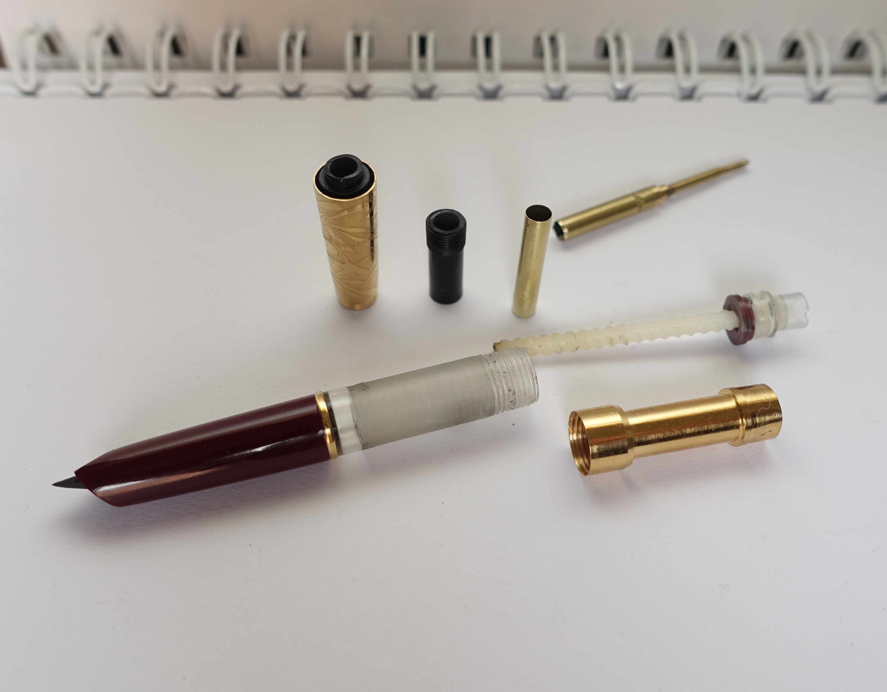 Devo smontare il pistone a questa Artus e non capisco come si smonta, la sezione non si muove, deve essere incollata tipo Pelikan, sul retro non c'è niente che si possa svitare, la manopola a vite funziona regolarmente e quando arriva a fine corsa sui due estremi gira a vuoto, sapete come si smonta?