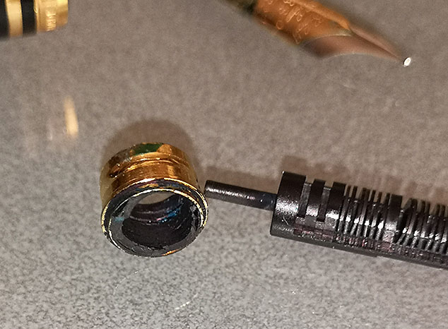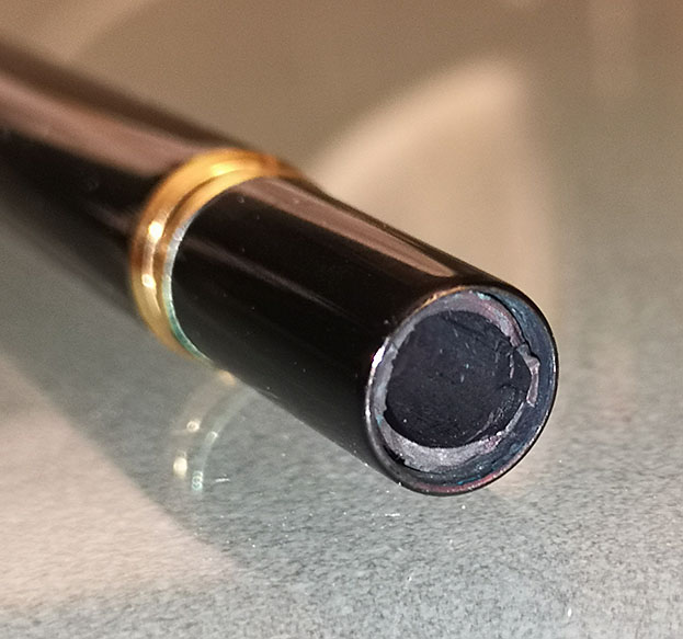 Doveva essere lesionato per spaccarsi così mentre lo svitavi, potrebbero essere i residui d'inchiostro secco che lo bloccavano o/e una minima deformazione della sezione, un lieve segno ed ecco il patatrac.