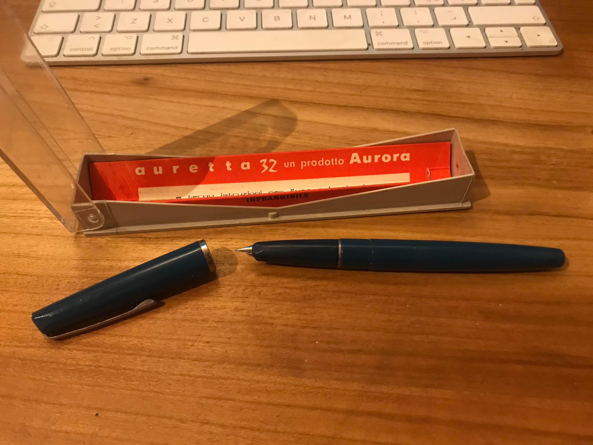 Domenica oltre all'inchiostro vintage Pessi, ho comprato una Aurora Auretta 32 (con scatoletta in plastica, come la penna del resto)