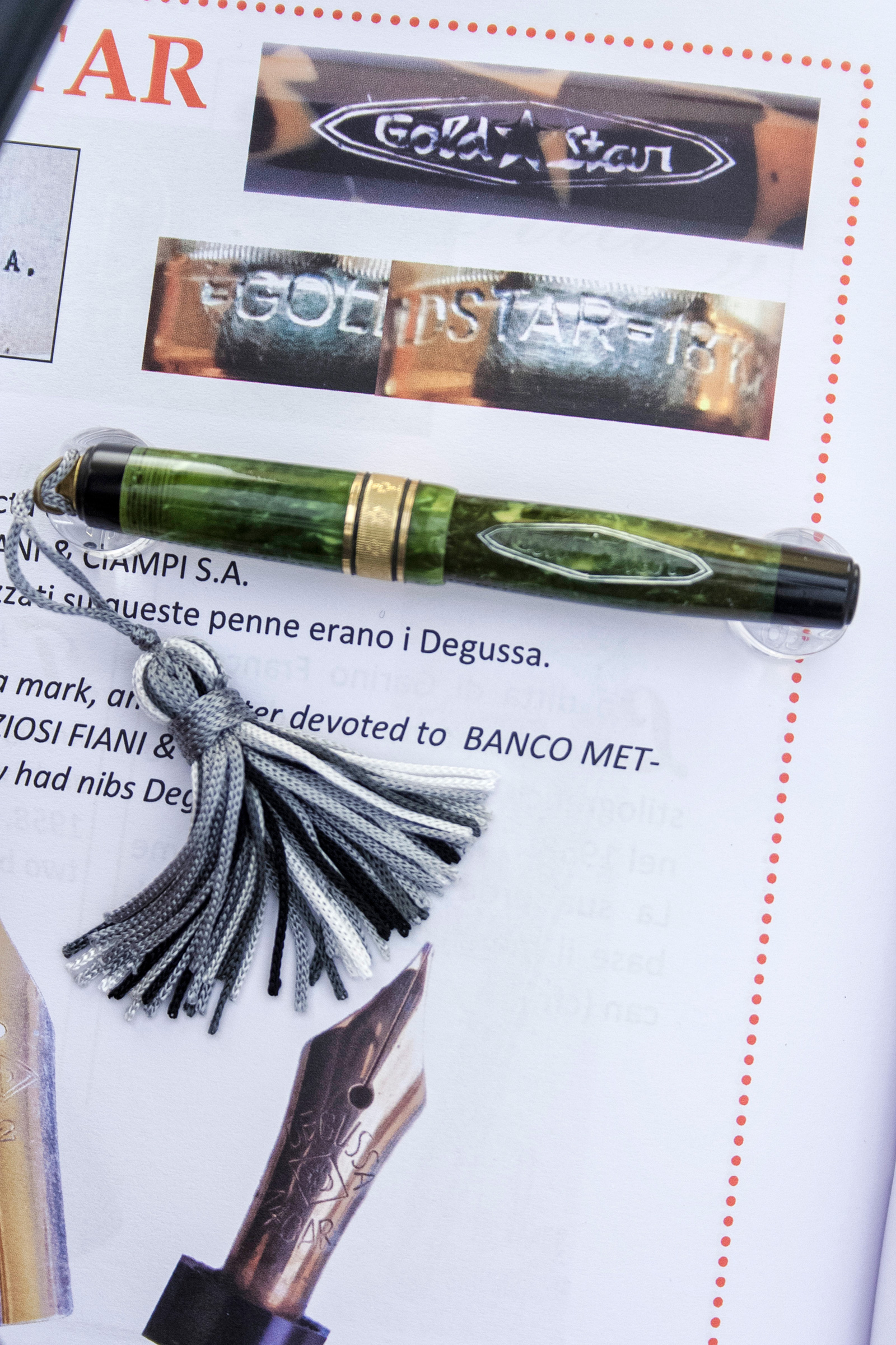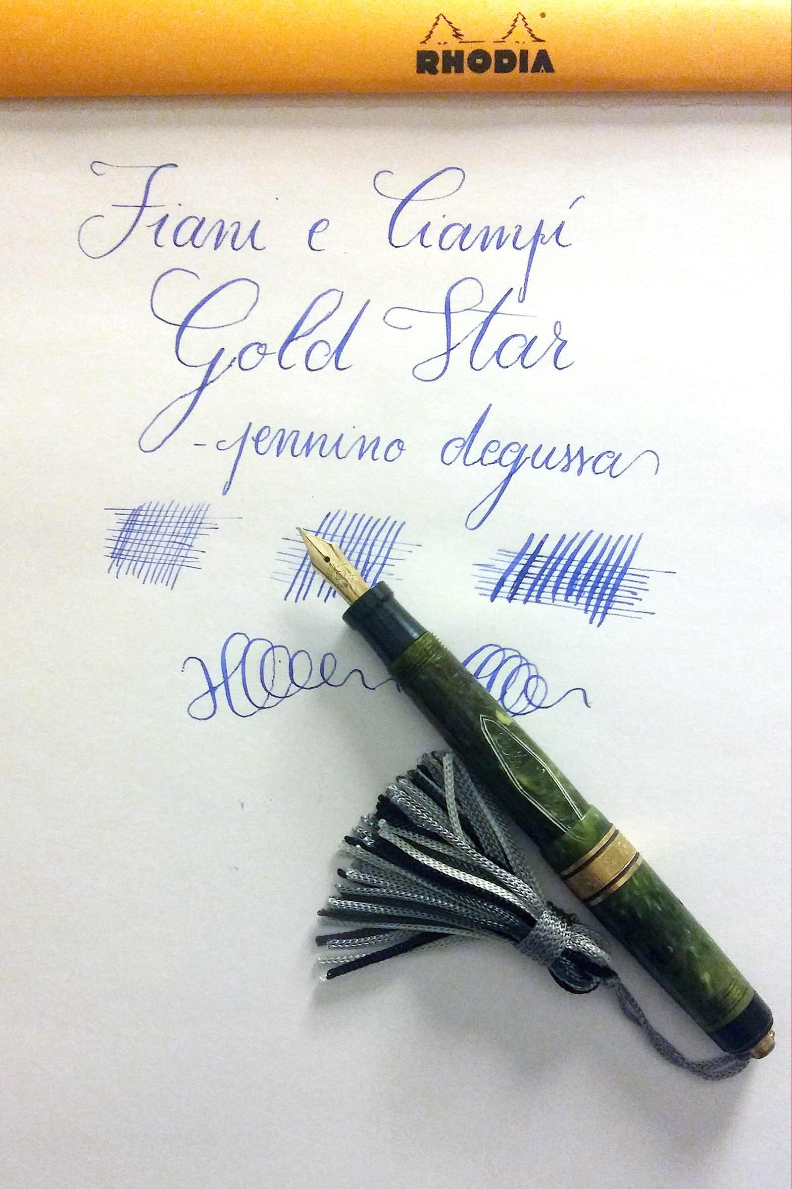 Dunque questo modello era presumibilmente prodotto da Tibaldi e usava pennini Degussa, in pratica Gold Star si limitava ad assemblarle solo le penne. A tal proposito sarebbe interessante sapere anche come scrive questo pennino.