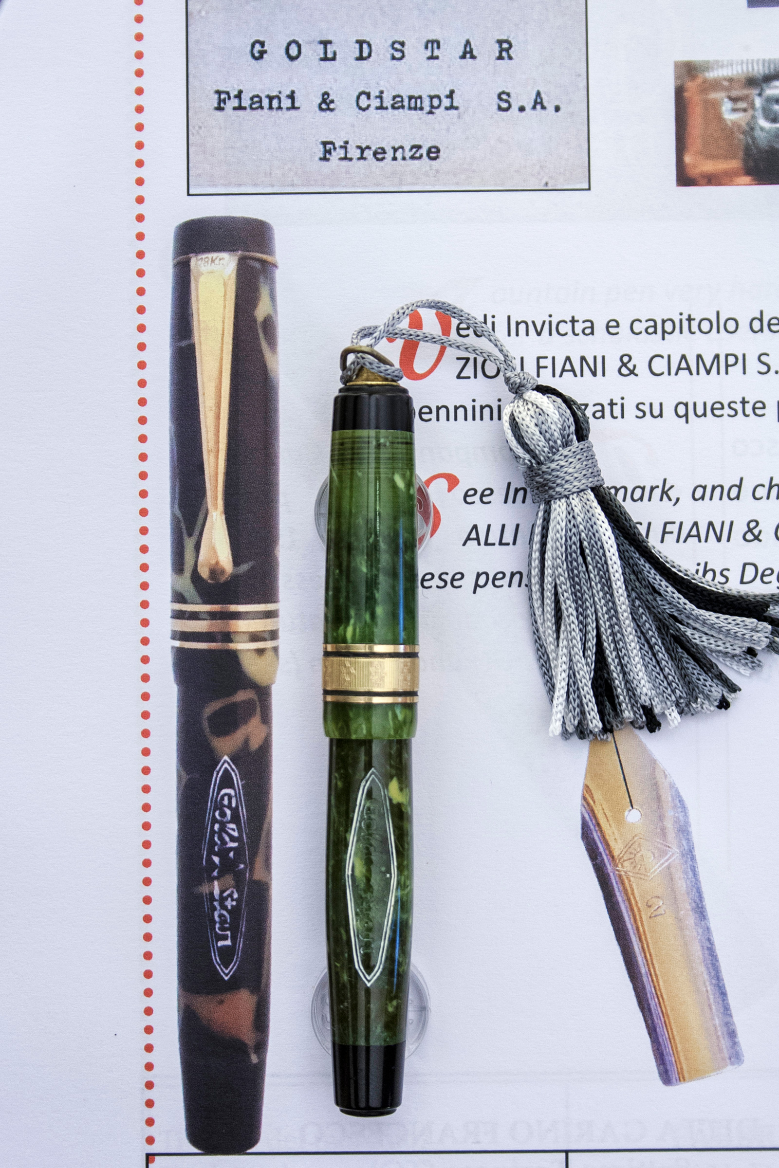 Inoltre siamo a conoscenza di stilografiche laminate Invicta (una è proprio la tua), Gold Star e Tibaldi. Chi si occupava della laminatura e della decorazione? Probabilmente proprio l'azienda di Fiani & Ciampi.