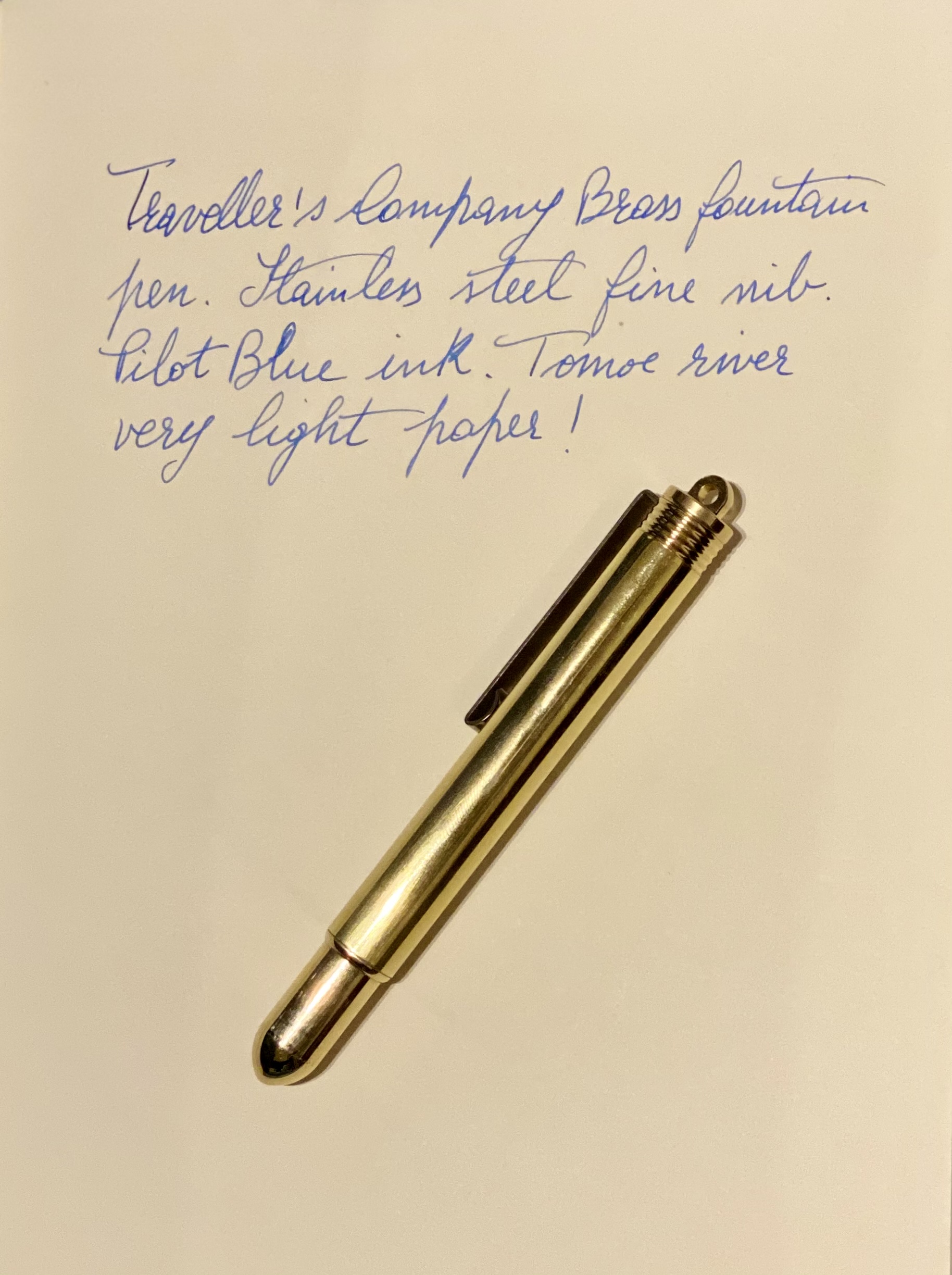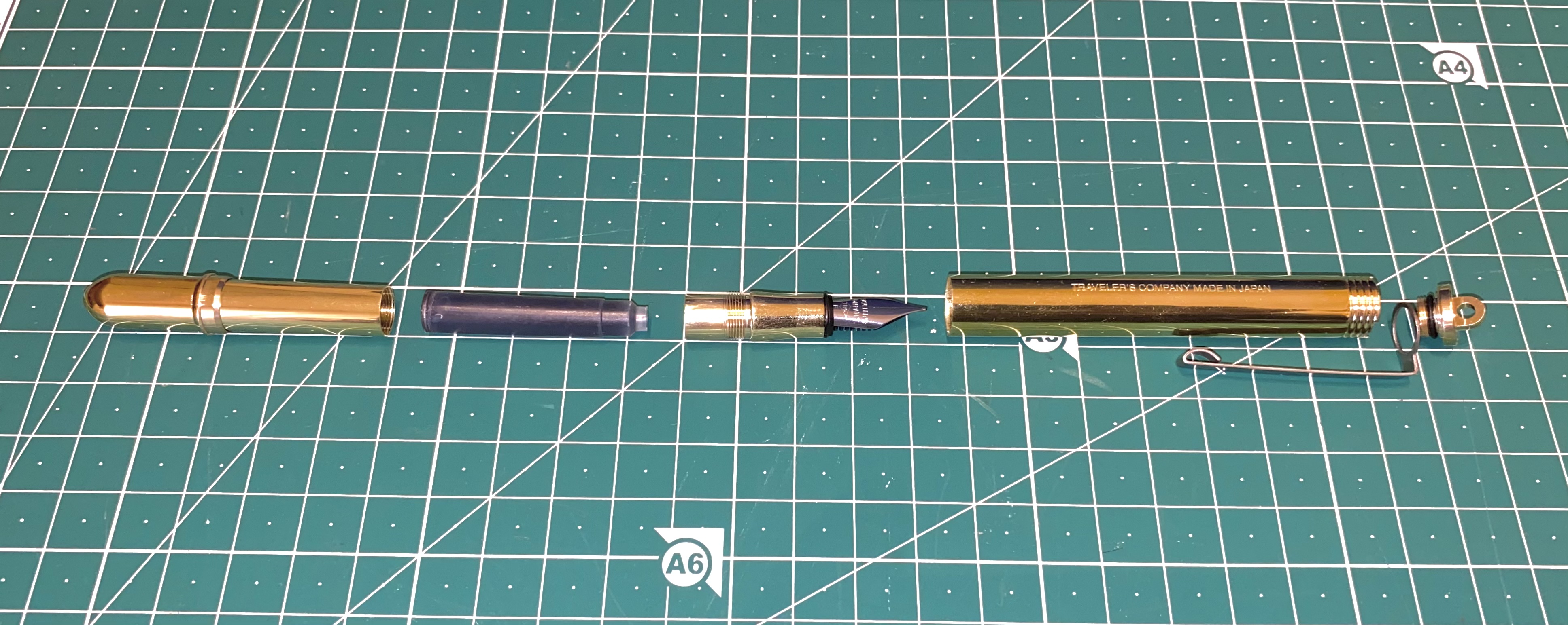 Ciao, ho preso da poco, per fare un regalo, una penna Traveler’s Company. Si tratta di una penna tascabile in ottone con pennino in acciaio unica misura (ovvero F).