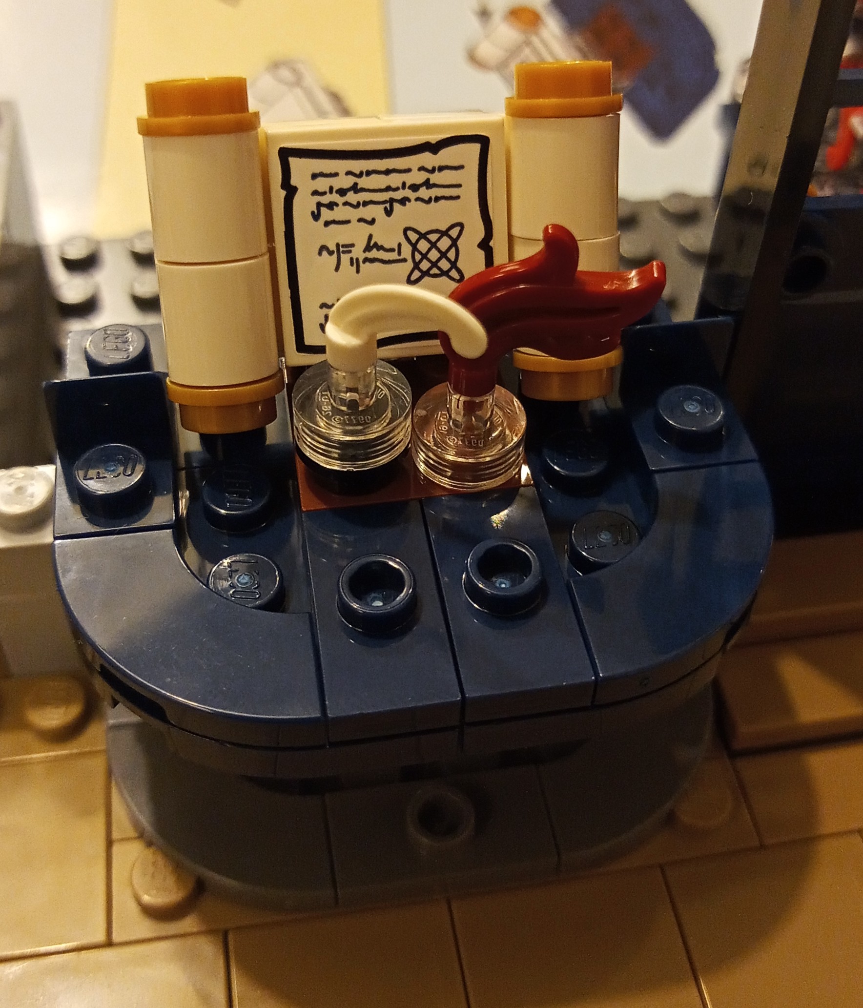 I mitici designer LEGO sono riusciti ad utilizzare i vecchi pennacchi dei cavalieri anni 80, un pezzo cilindrico trasparente ed uno nero per creare penna e calamaio...