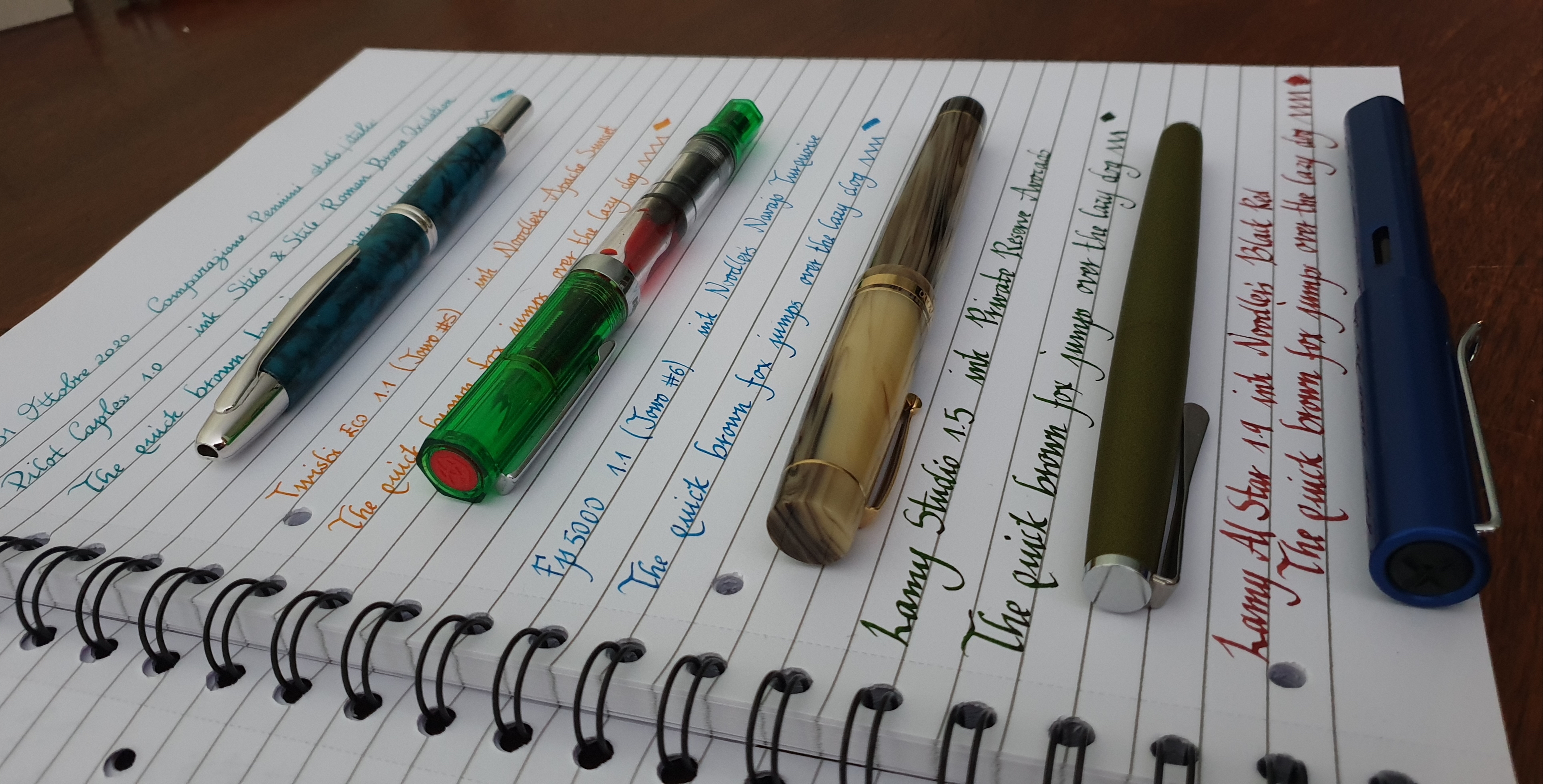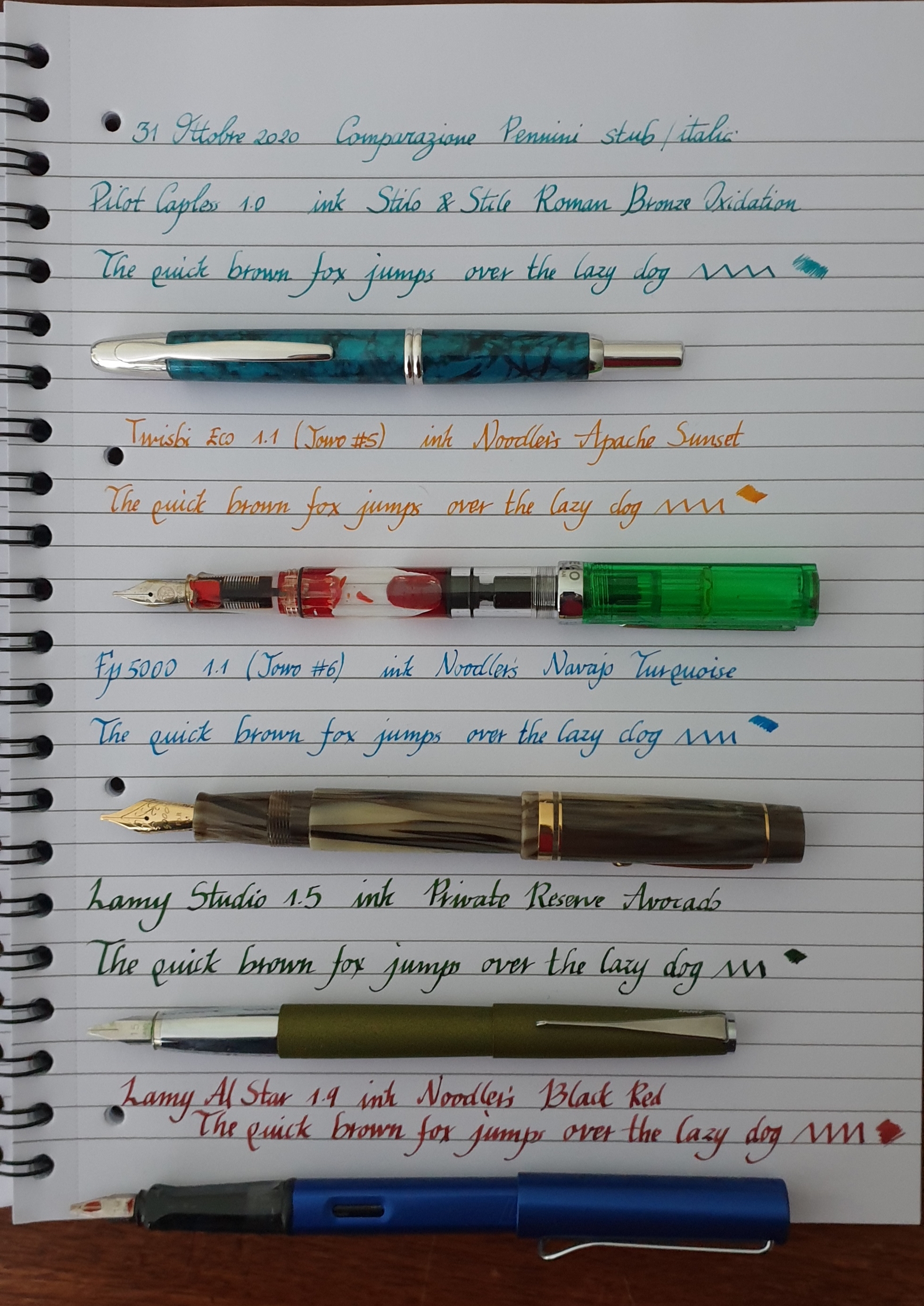Ho preso tutte le mie stilografiche con pennino stub o italico e le ho messe tutte vicine per una prova scrittura rapida.