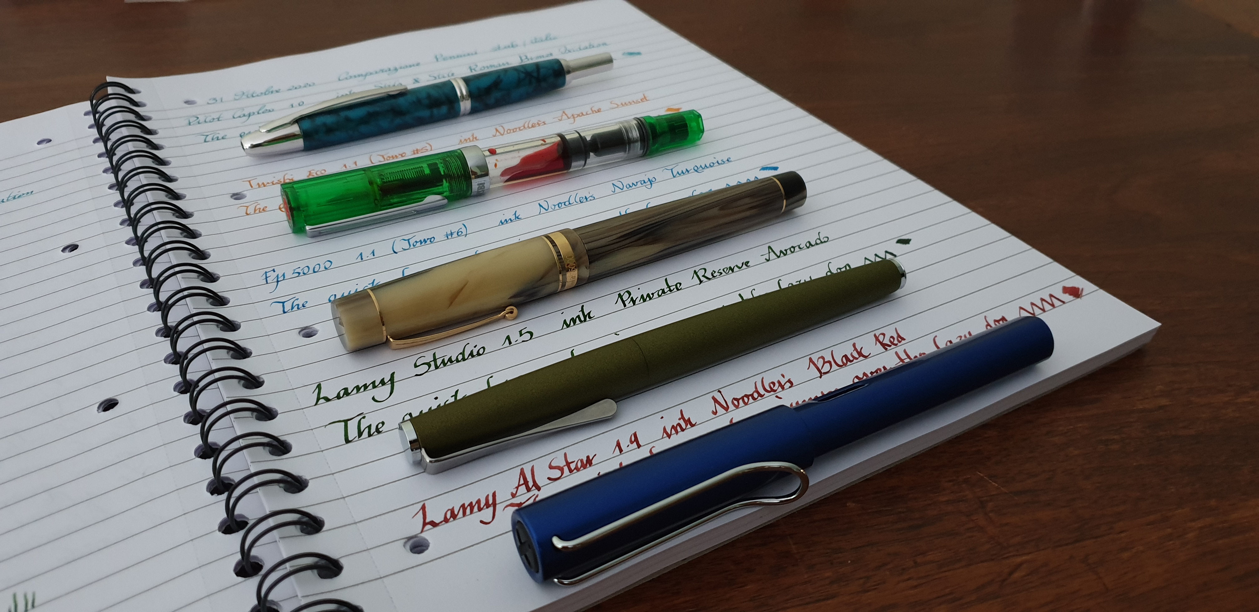 Gli inchiostri sono tutti diversi perché tutte le penne erano già cariche e non avevo voglia di buttare inchiostro/lavare tutto etc....Mi sono già sporcato le dita così :angel: