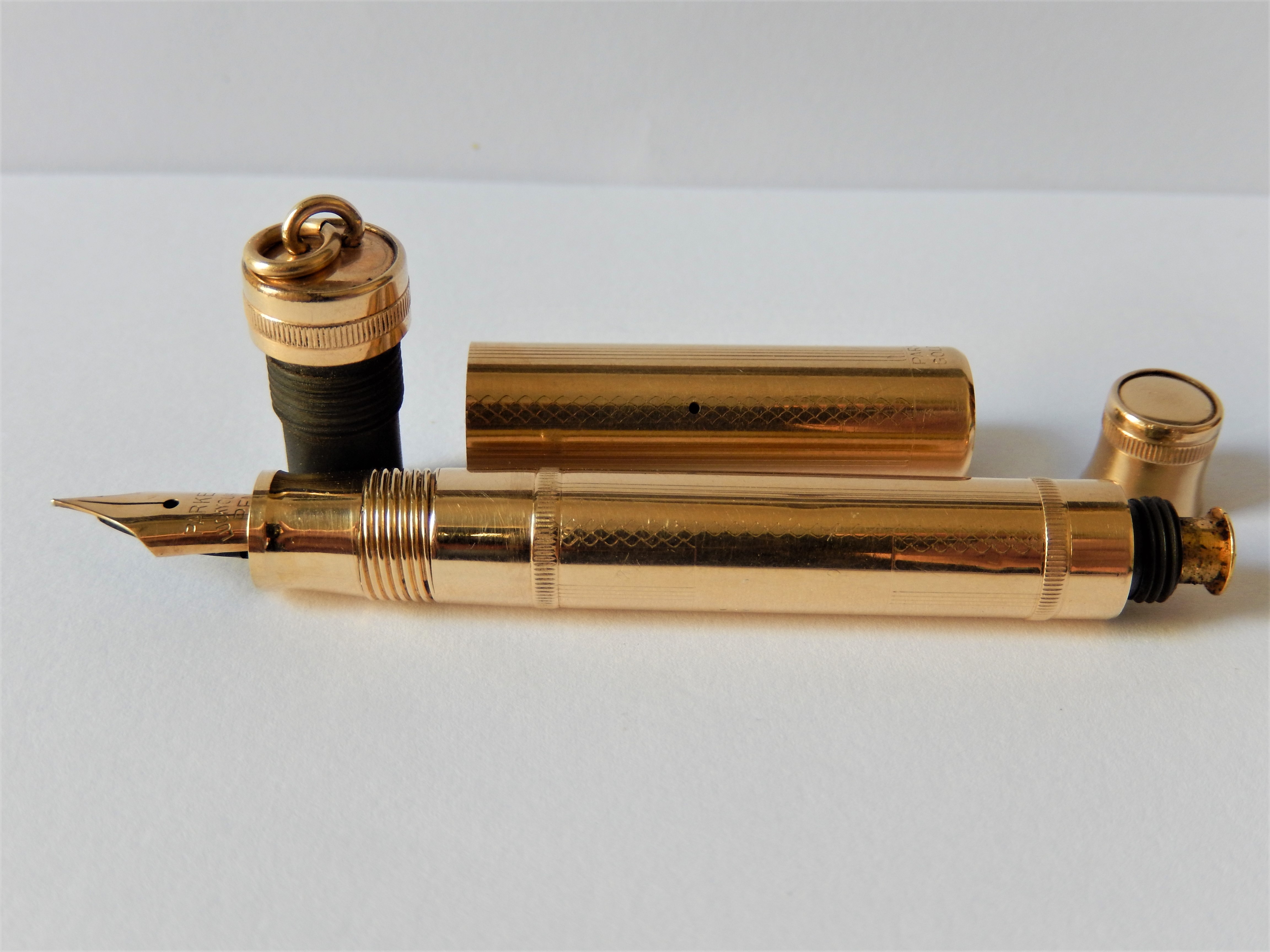 In Europa siamo abituati a classificare automaticamente questo tipo di penne come penne per bambini o per le borse delle signore, magari decorate da vezzosi fiocchi, mentre negli USA venivano vendute spesso con lunghi lacci e destinate ai taschini dei panciotti o al collo di impiegati, ferrovieri o avvocati, che avessero bisogno di prendere un appunto o una veloce annotazione. La penna è a tutti gli effetti una piccola duofold, ma non viene classificata in tal modo e sul pennino, di una piacevole flessibilità, riporta ancora la scritta " Parker/ Lucky Curve/ Pen " [